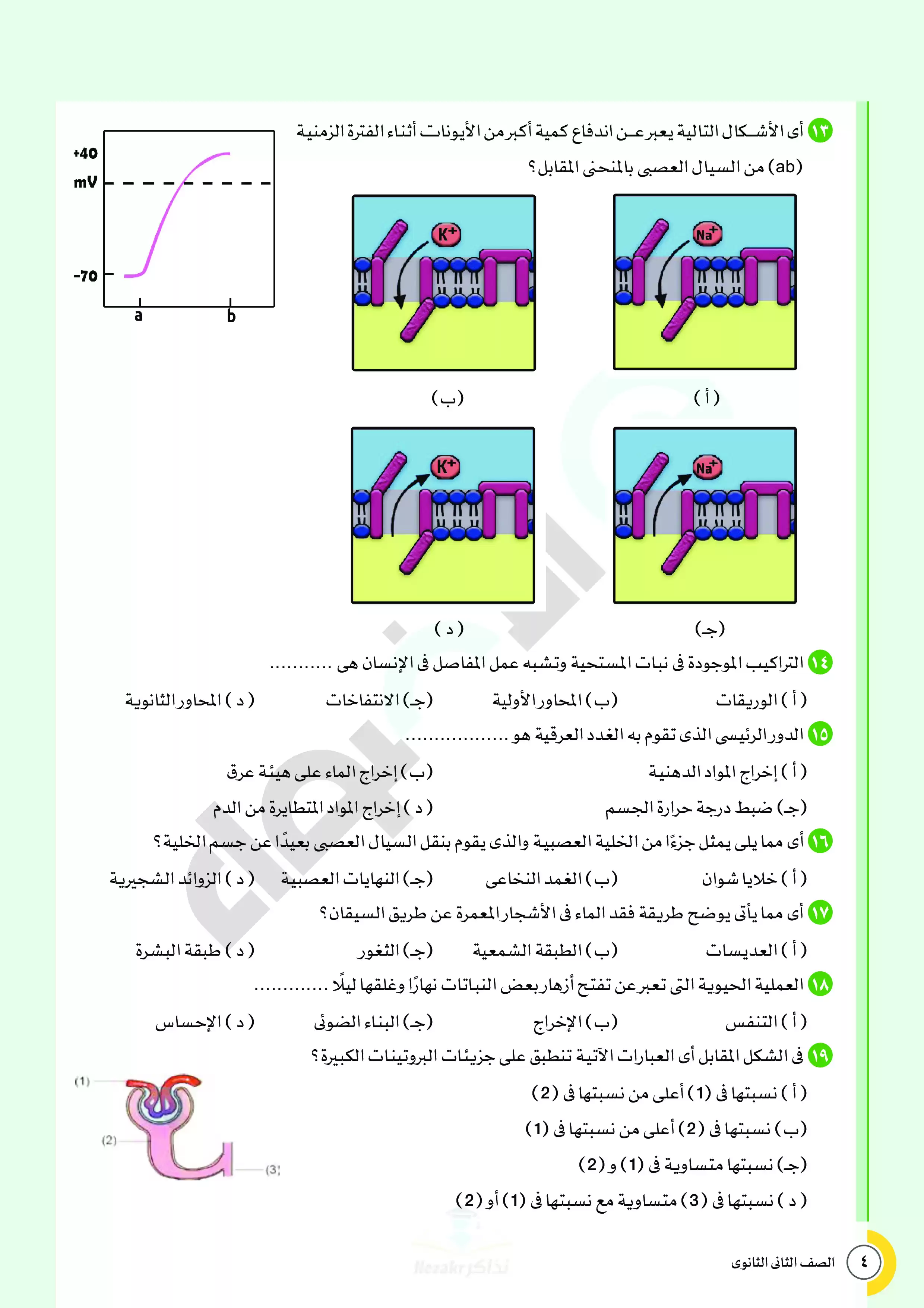 صفحة 4 من 34 صفحة من ملف: نماذج اختبارات ومراجعة الأضواء النهائية في مادة الأحياء للصف الثاني الثانوي الترم الثاني 2025 - Nezakr