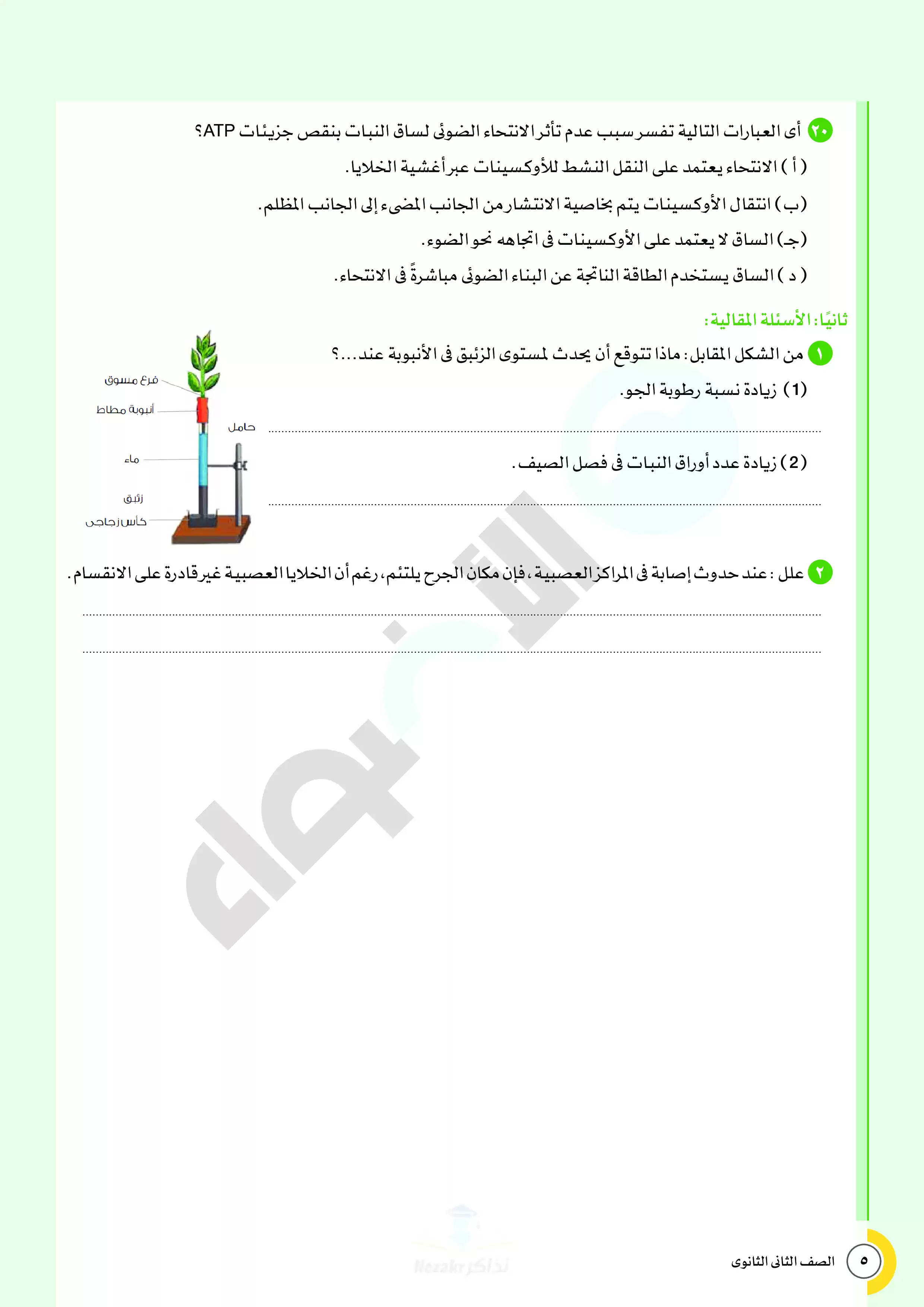 صفحة 5 من 34 صفحة من ملف: نماذج اختبارات ومراجعة الأضواء النهائية في مادة الأحياء للصف الثاني الثانوي الترم الثاني 2025 - Nezakr
