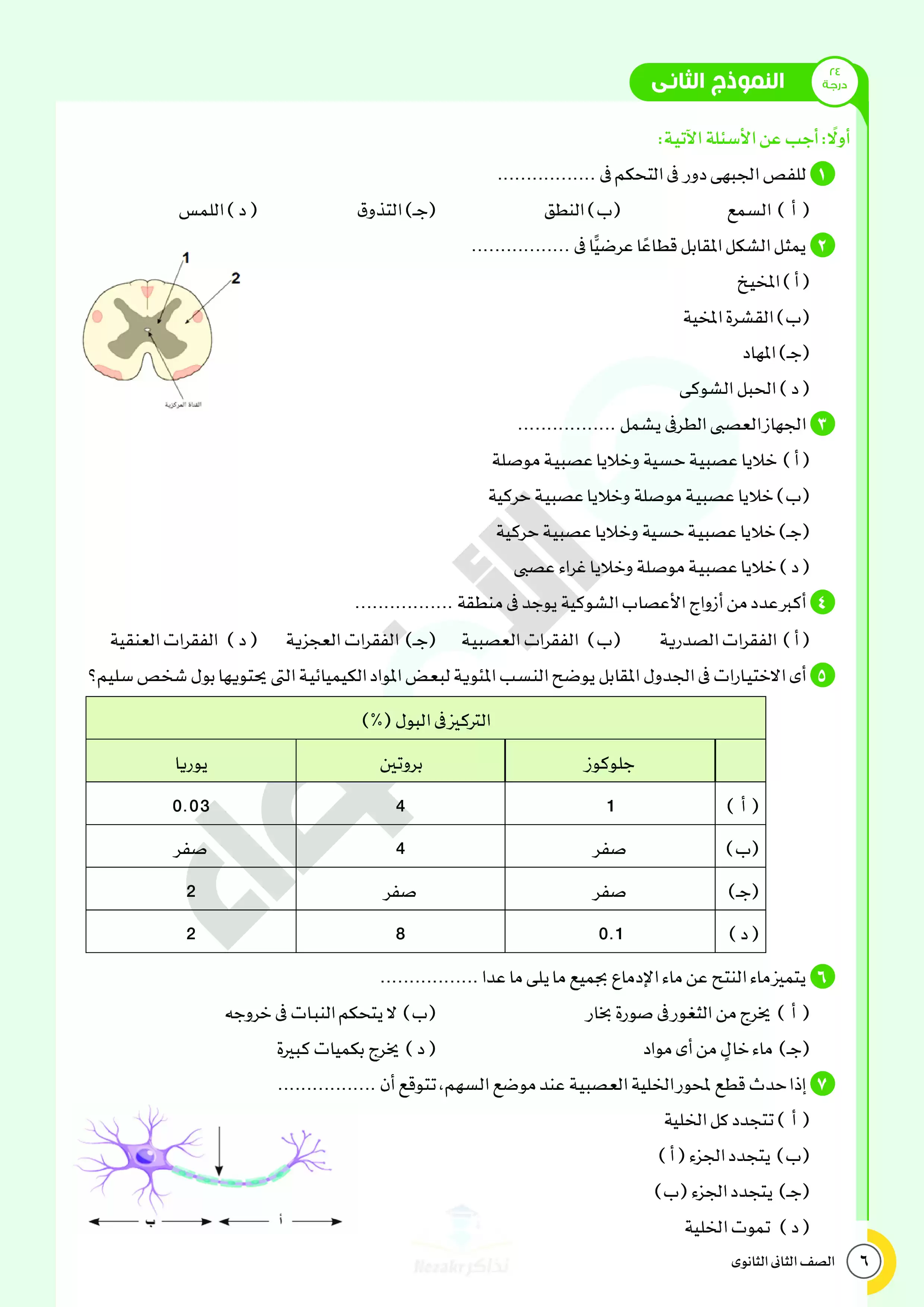 صفحة 6 من 34 صفحة من ملف: نماذج اختبارات ومراجعة الأضواء النهائية في مادة الأحياء للصف الثاني الثانوي الترم الثاني 2025 - Nezakr