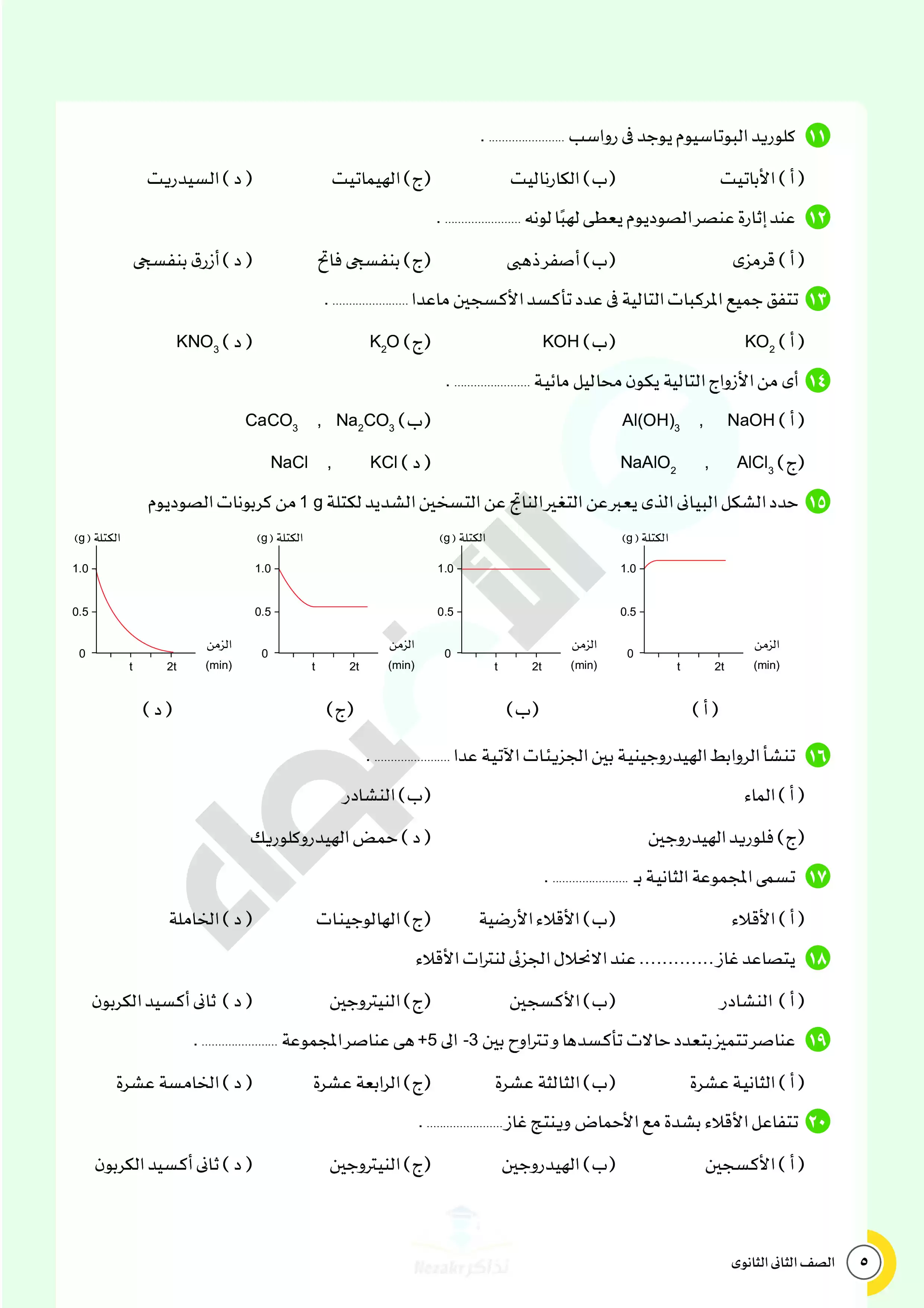 صفحة 5 من 28 صفحة من ملف: نماذج اختبارات ومراجعة الأضواء النهائية في مادة الكيمياء للصف الثاني الثانوي الترم الثاني 2025 - Nezakr