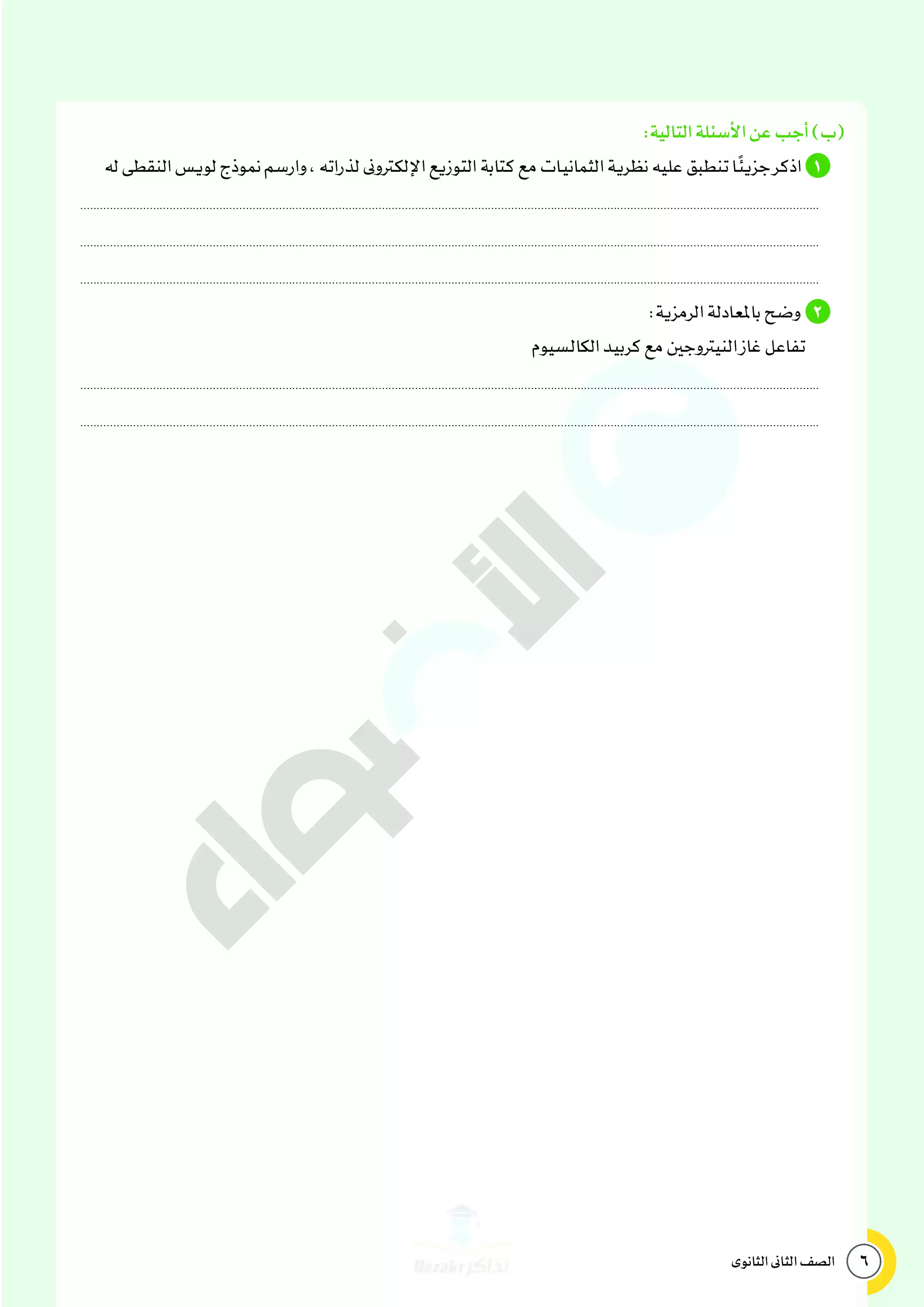 صفحة 6 من 28 صفحة من ملف: نماذج اختبارات ومراجعة الأضواء النهائية في مادة الكيمياء للصف الثاني الثانوي الترم الثاني 2025 - Nezakr