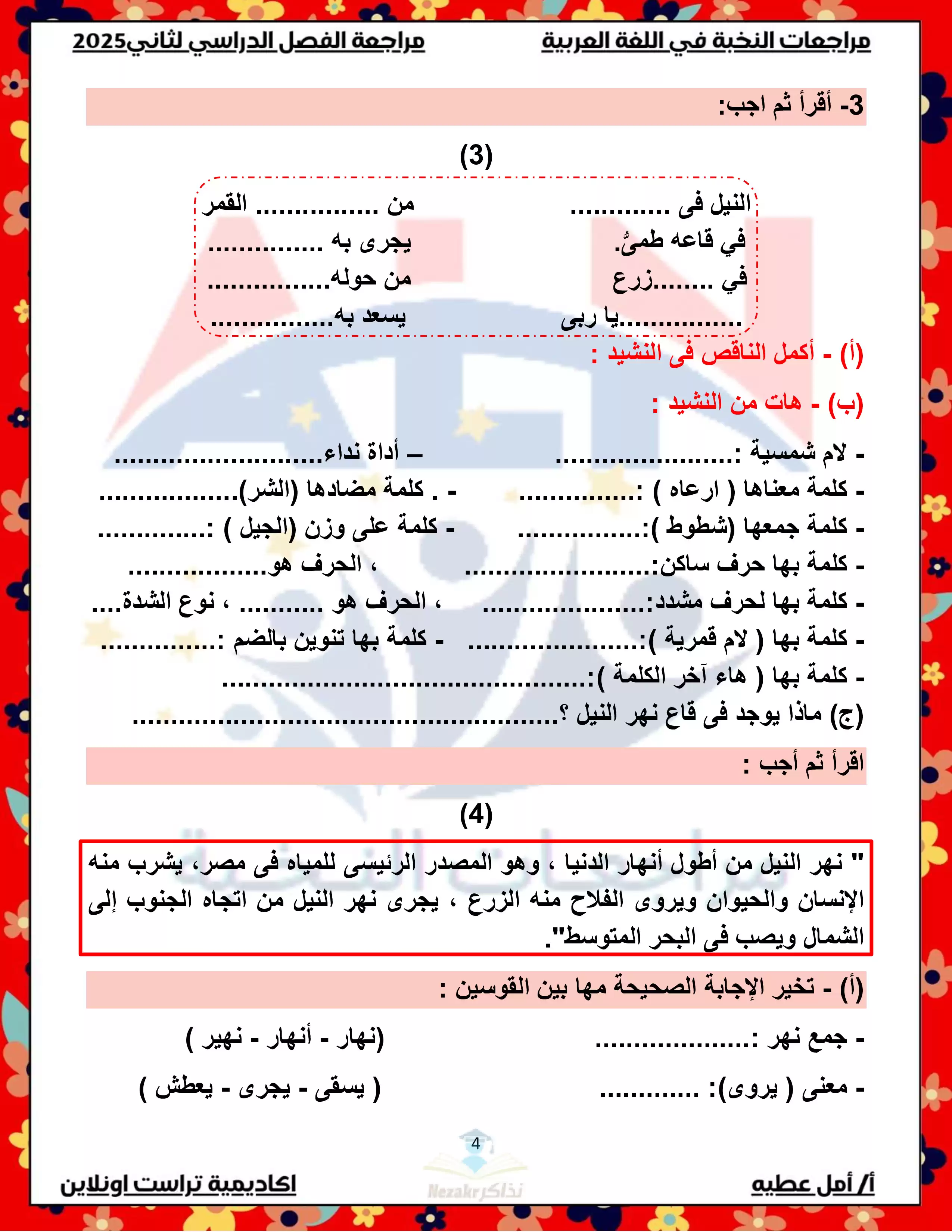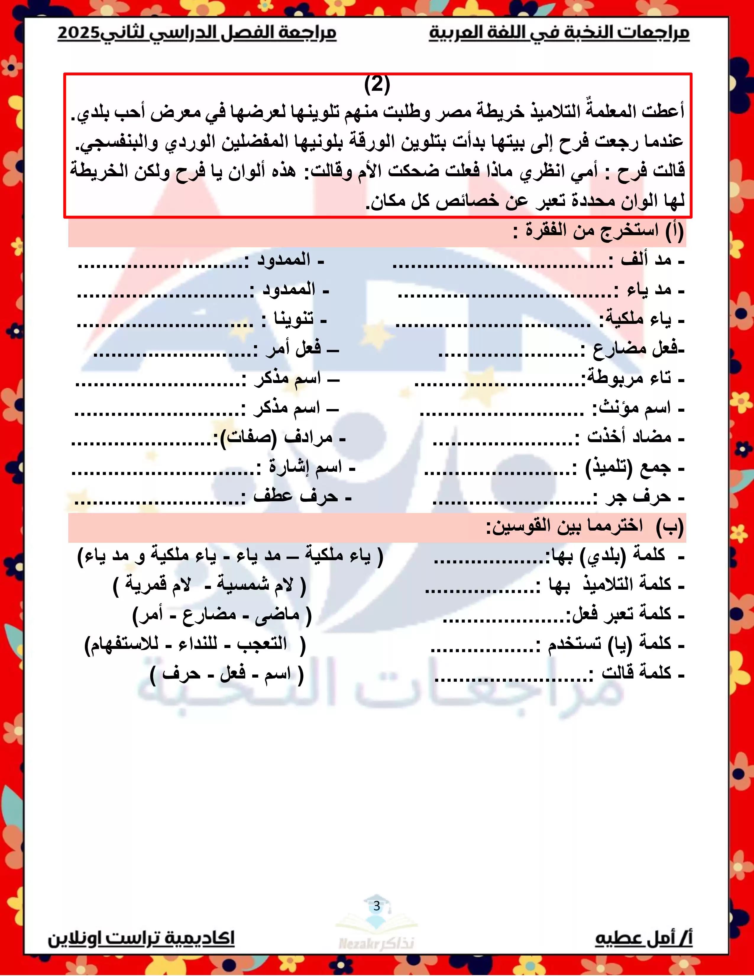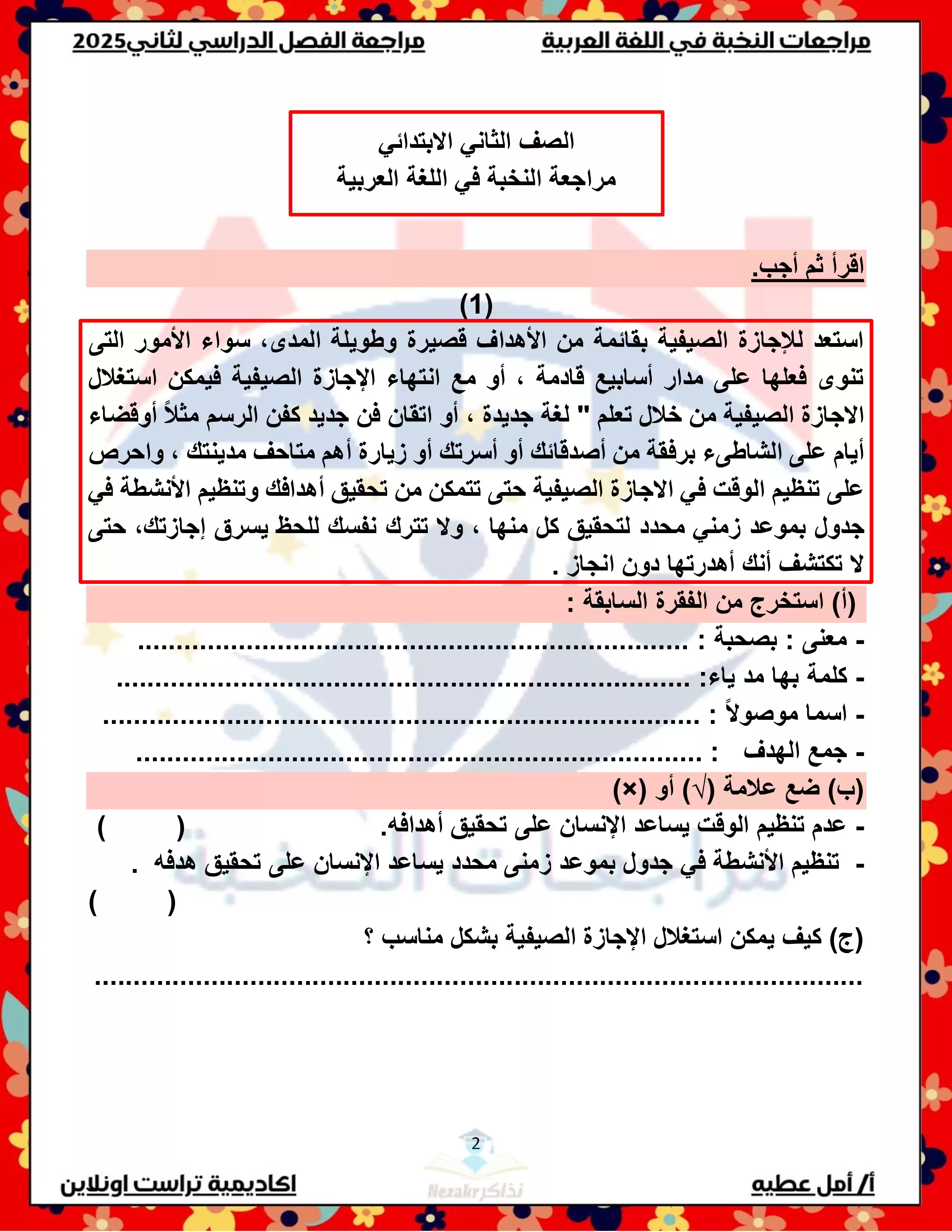 | بيانات الملف: (مراجعة النخبة الشاملة في مادة اللغة العربية للصف الثاني الابتدائي الترم الثاني - Nezakr) | |