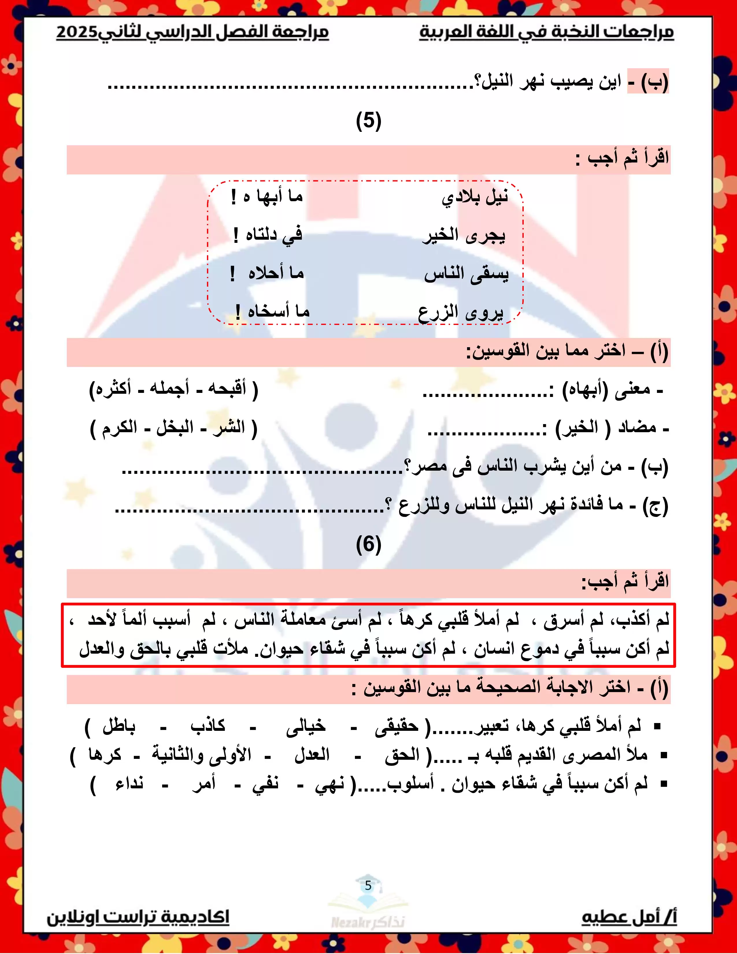 ومن هنا فإننا ننشر لكم ملف مراجعة النخبة في اللغة العربية، الذي يضم تدريبات مميزة ومتدرجة كما يتضمن مراجعة مركزة لدروس الترم الثاني في مقرر اللغة العربية.