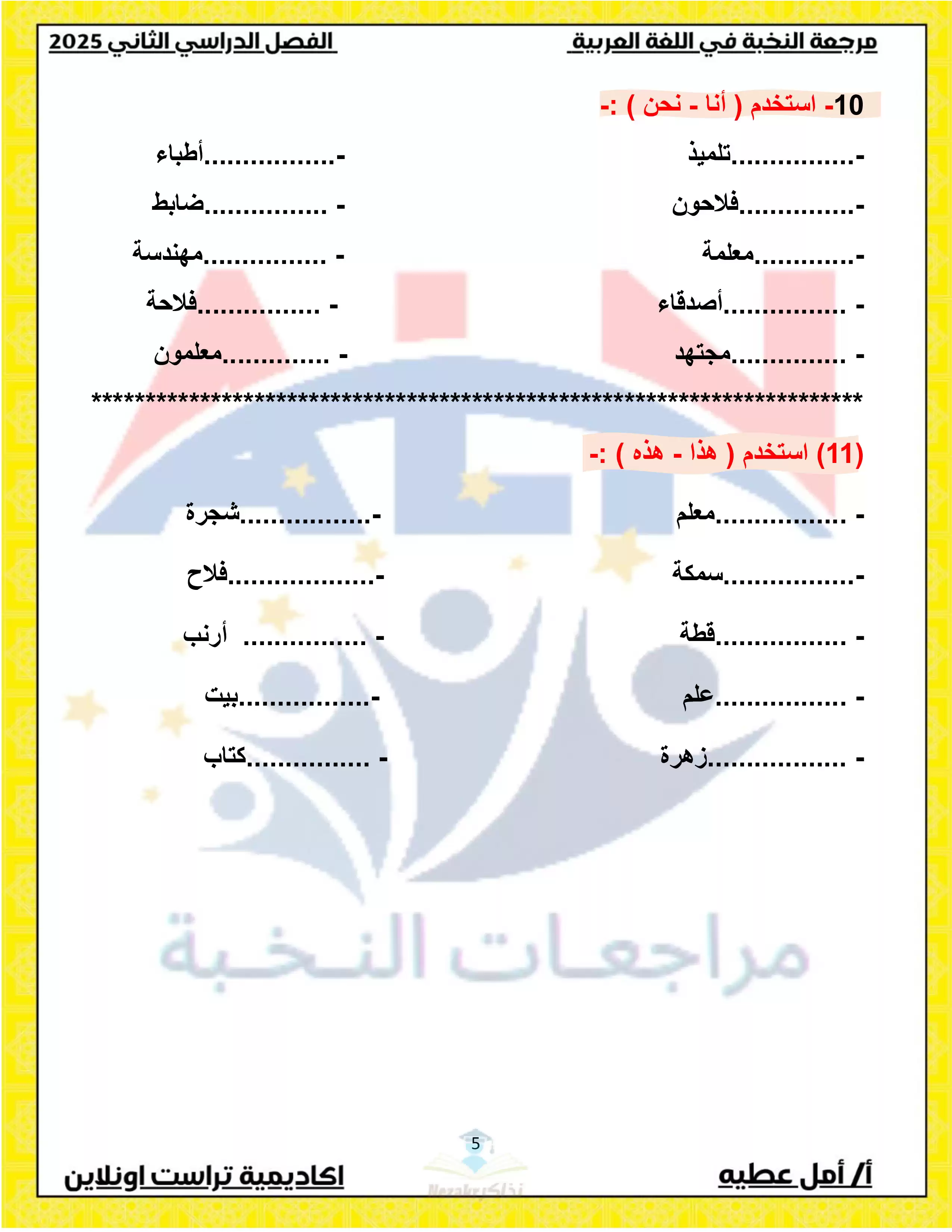 | بيانات الملف: (مراجعة النخبة في مادة اللغة العربية للصف الاول الابتدائي الترم الثاني 2025 - Nezakr) | |