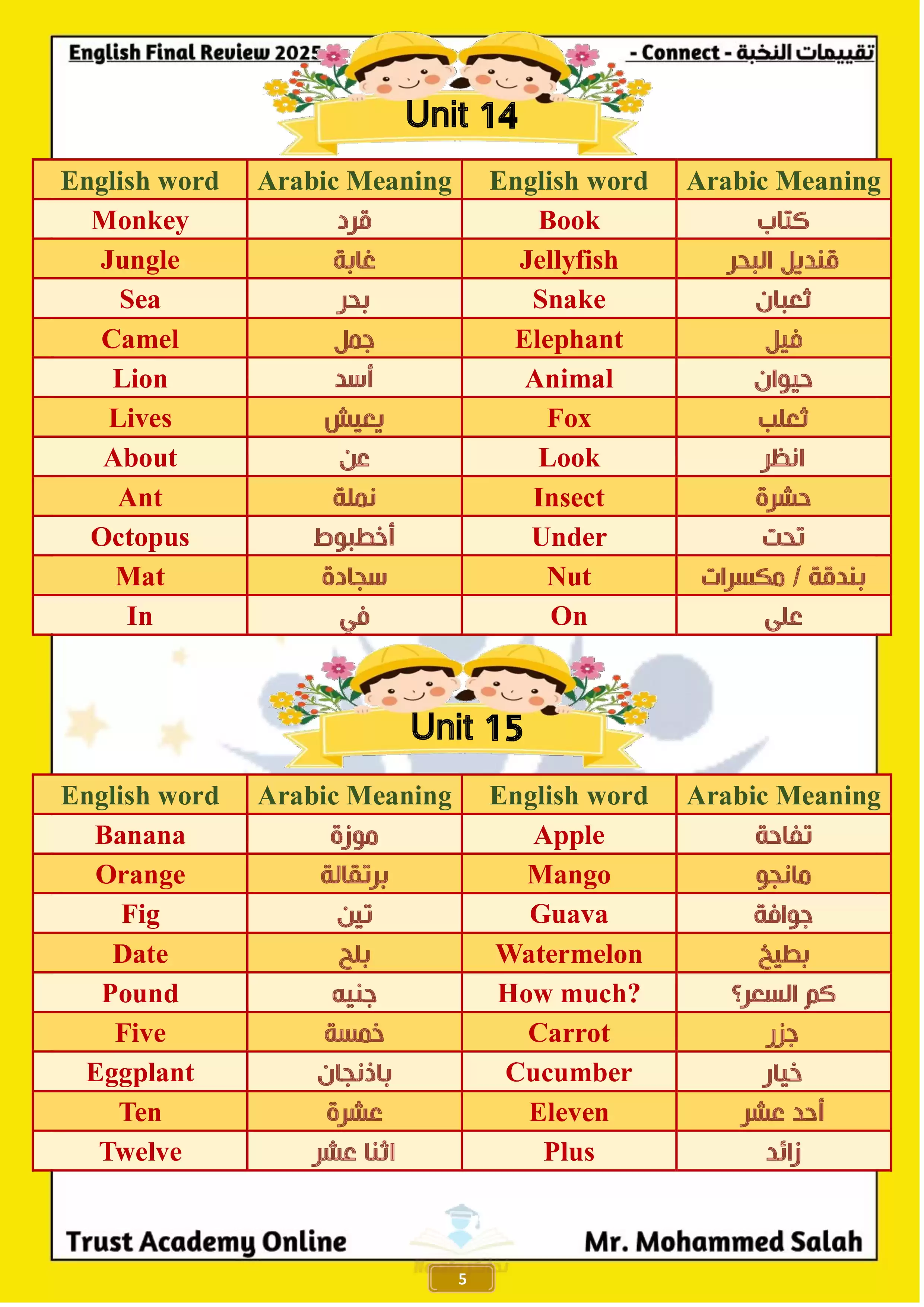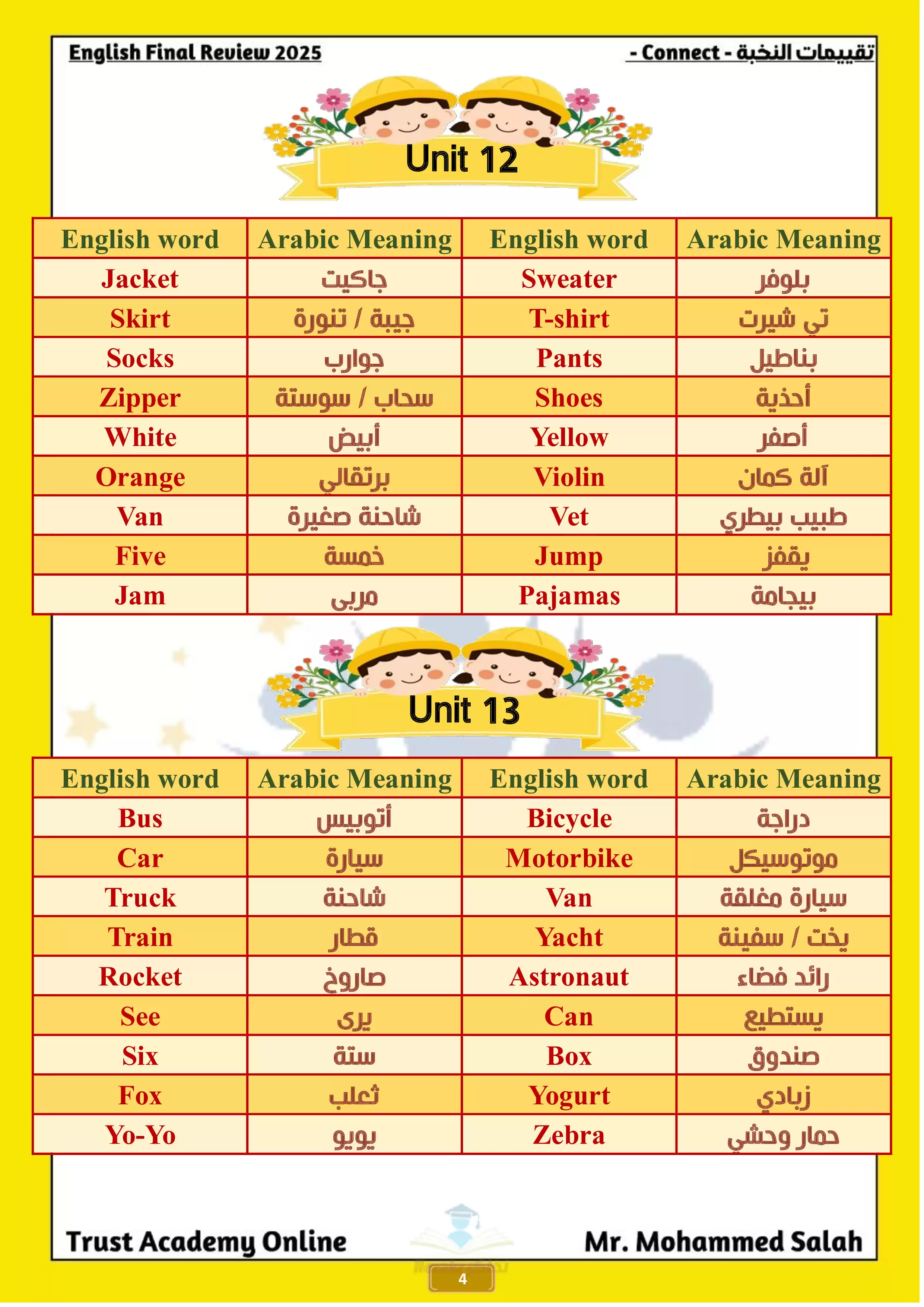نقدم لكم لكم ملف مراجعة مميز بصيغة PDF، يمكن تحميله بسهولة وطباعته بجودة ممتازة بكل بساطة، وذلك في المراجعة النهائية لمنهج اللغة الانجليزية للصف الاول الابتدائي Connect 1 الترم الثاني.