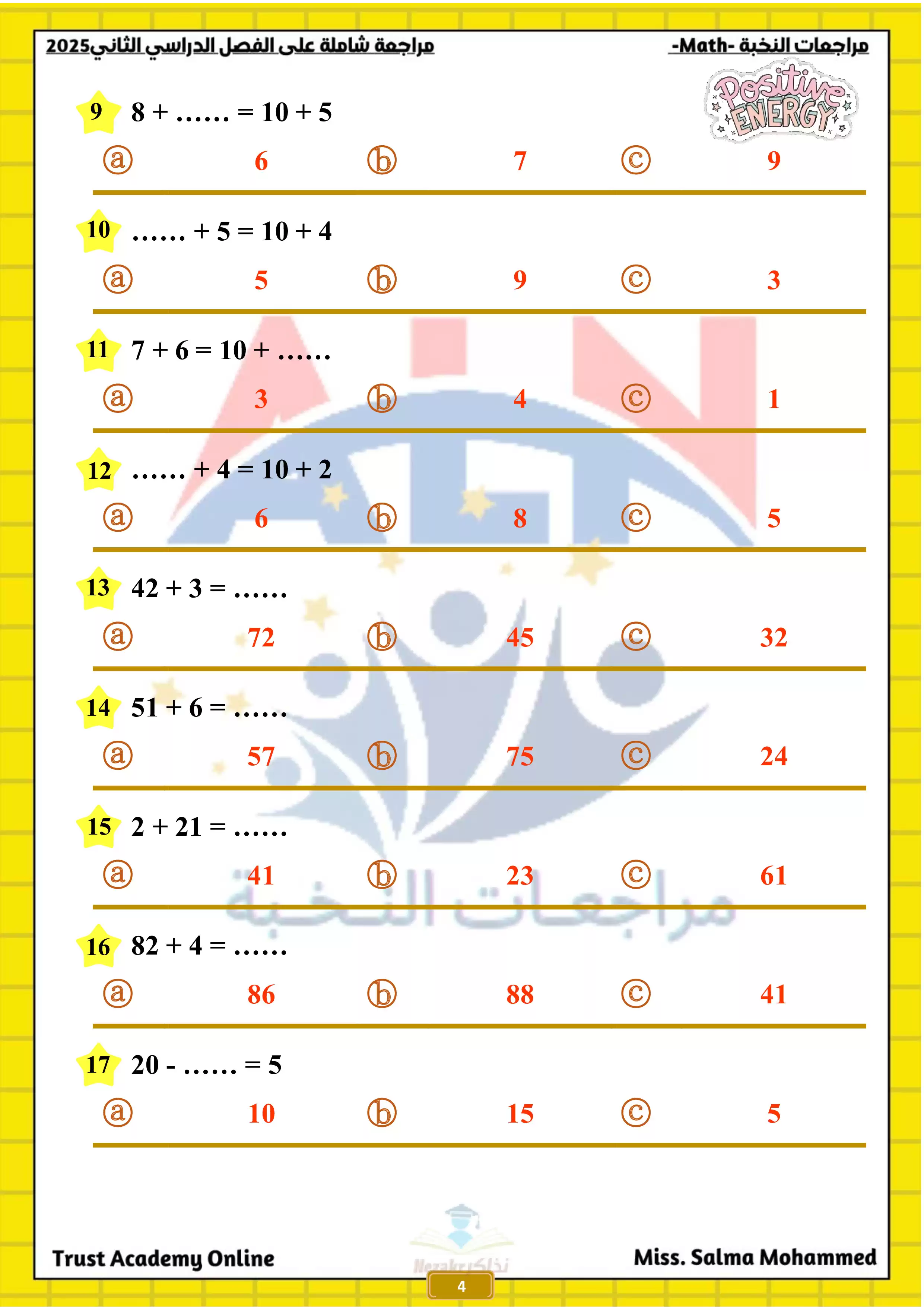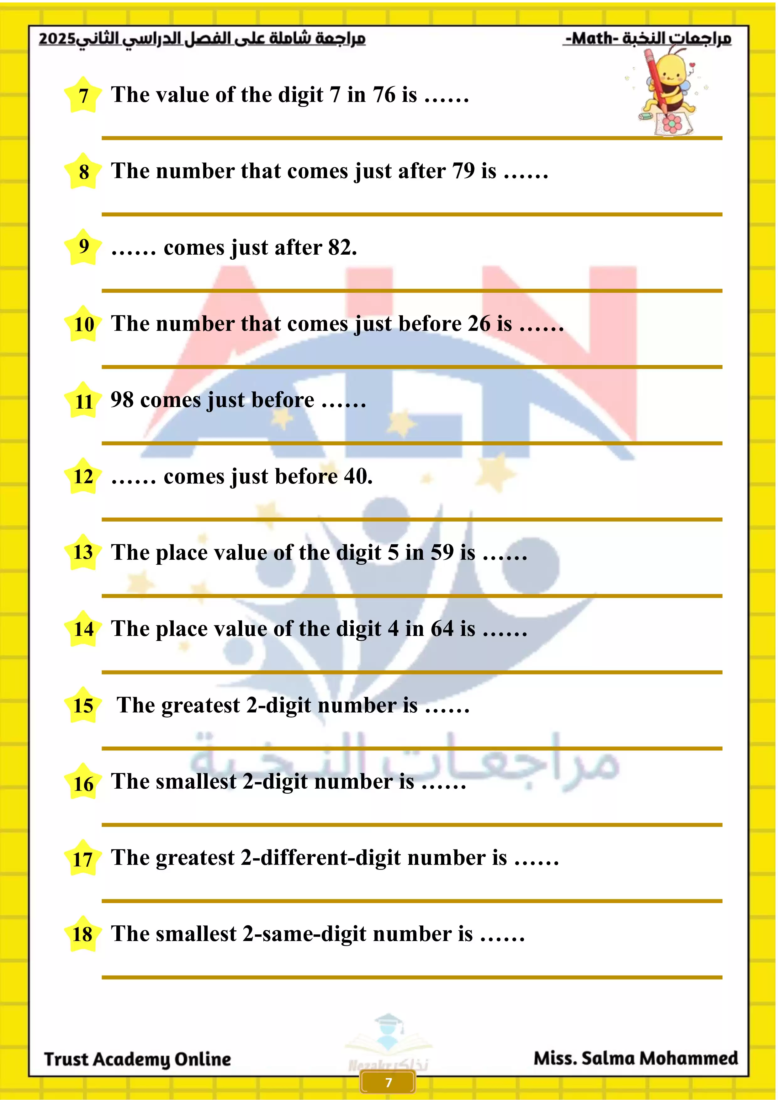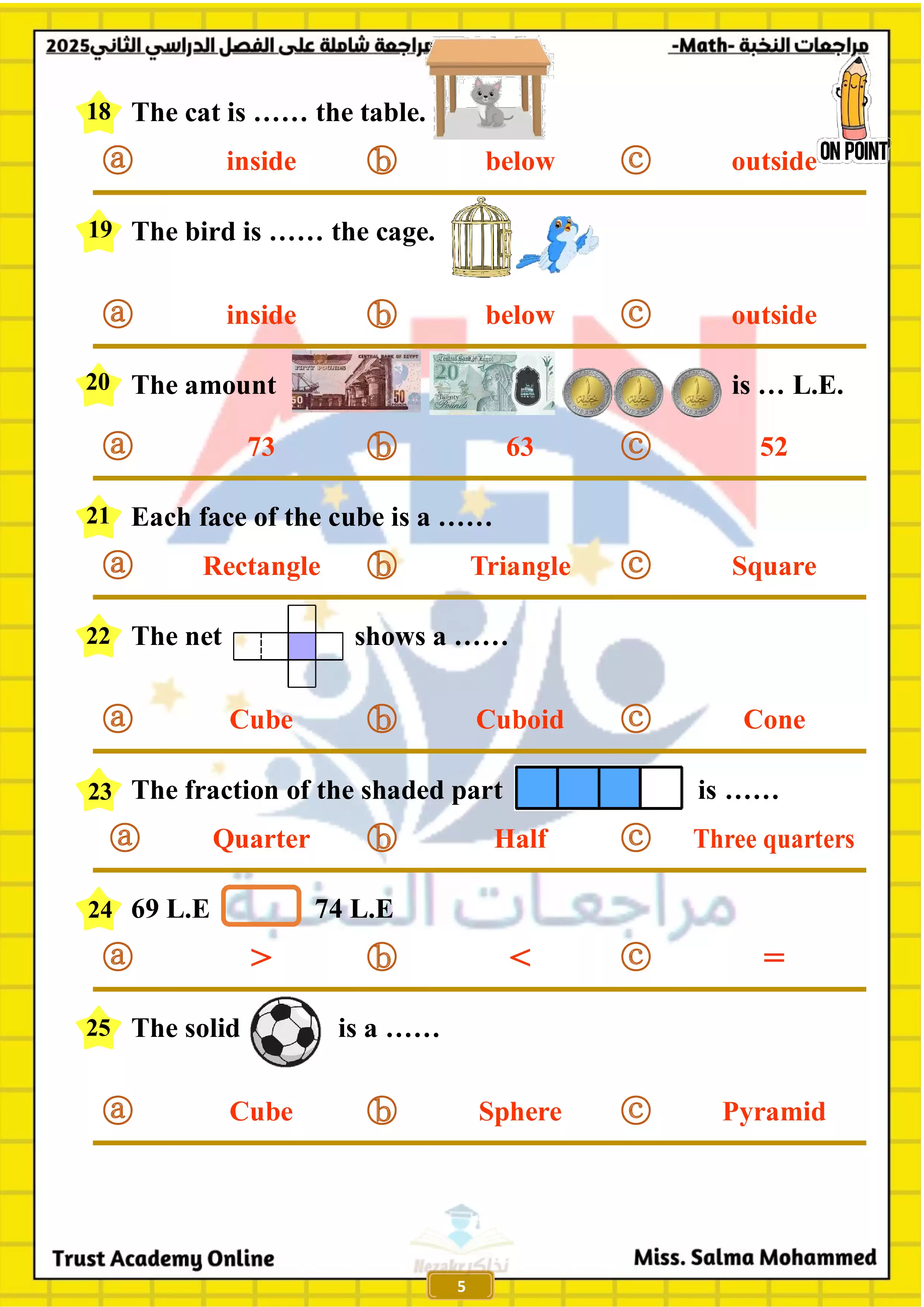 | بيانات الملف: (مراجعة النخبة في الماث Math للصف الاول الابتدائي الترم الثاني 2025 - Nezakr) | |