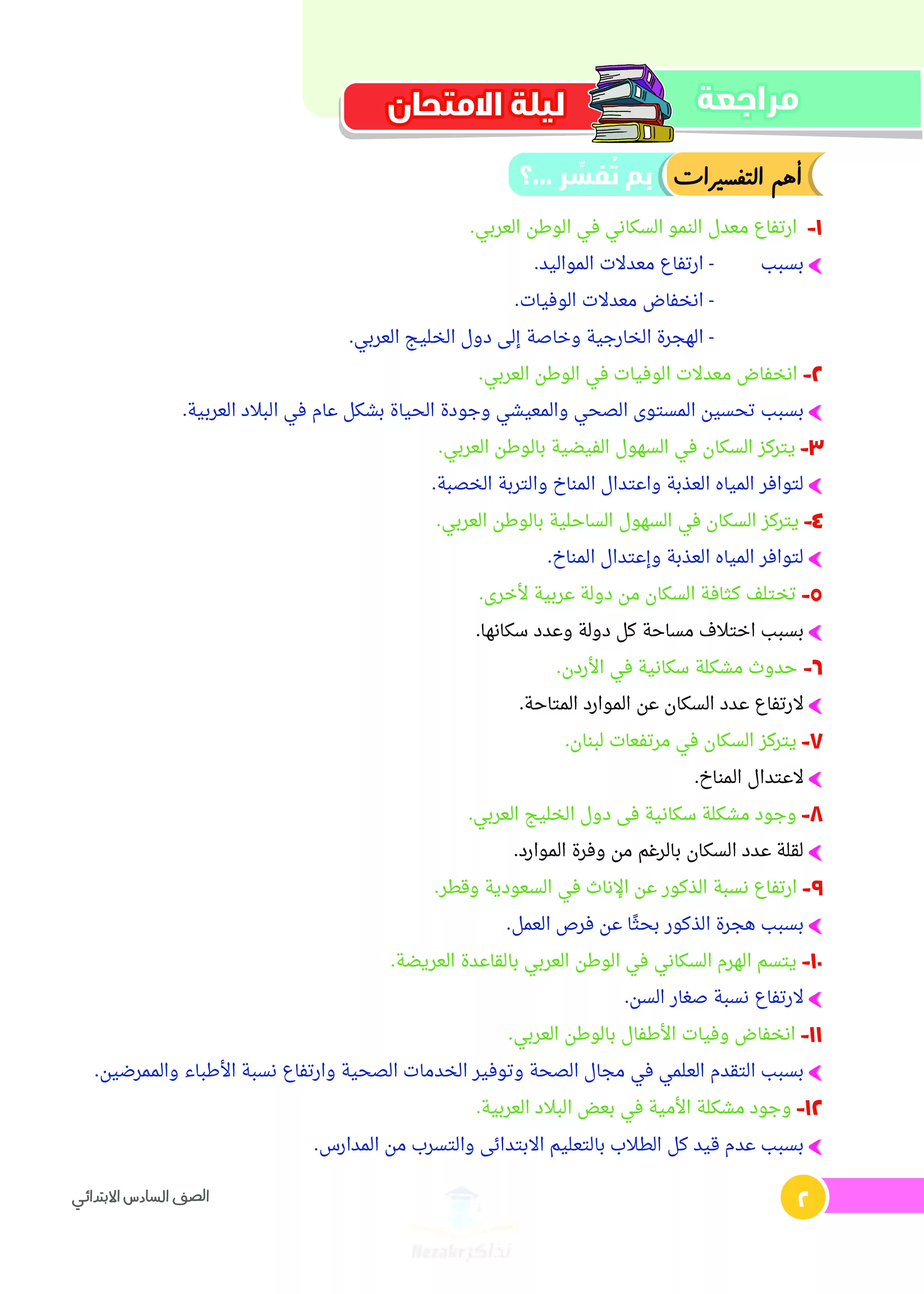نقدم لكم في هذا المقال ومن خلال الملف المرفق مراجعة ليلة الامتحان في مادة الدراسات الاجتماعية للصف السادس الابتدائي، من كتاب السندباد، ويضم الملف المرفق مجموعة مختارة من الأسئلة المقالية التي تغطي منهج الفصل الدراسي الثاني بالكامل، وقد تم إعداد هذه الأسئلة بشكل يساعد التلاميذ على فهم الموضوعات الأساسية وربط المعلومات ببعضها البعض، كما قام كتاب السندباد بتوفير إجابات وافية تشرح النقاط المهمة بطريقة مبسطة وسهلة الاستيعاب.