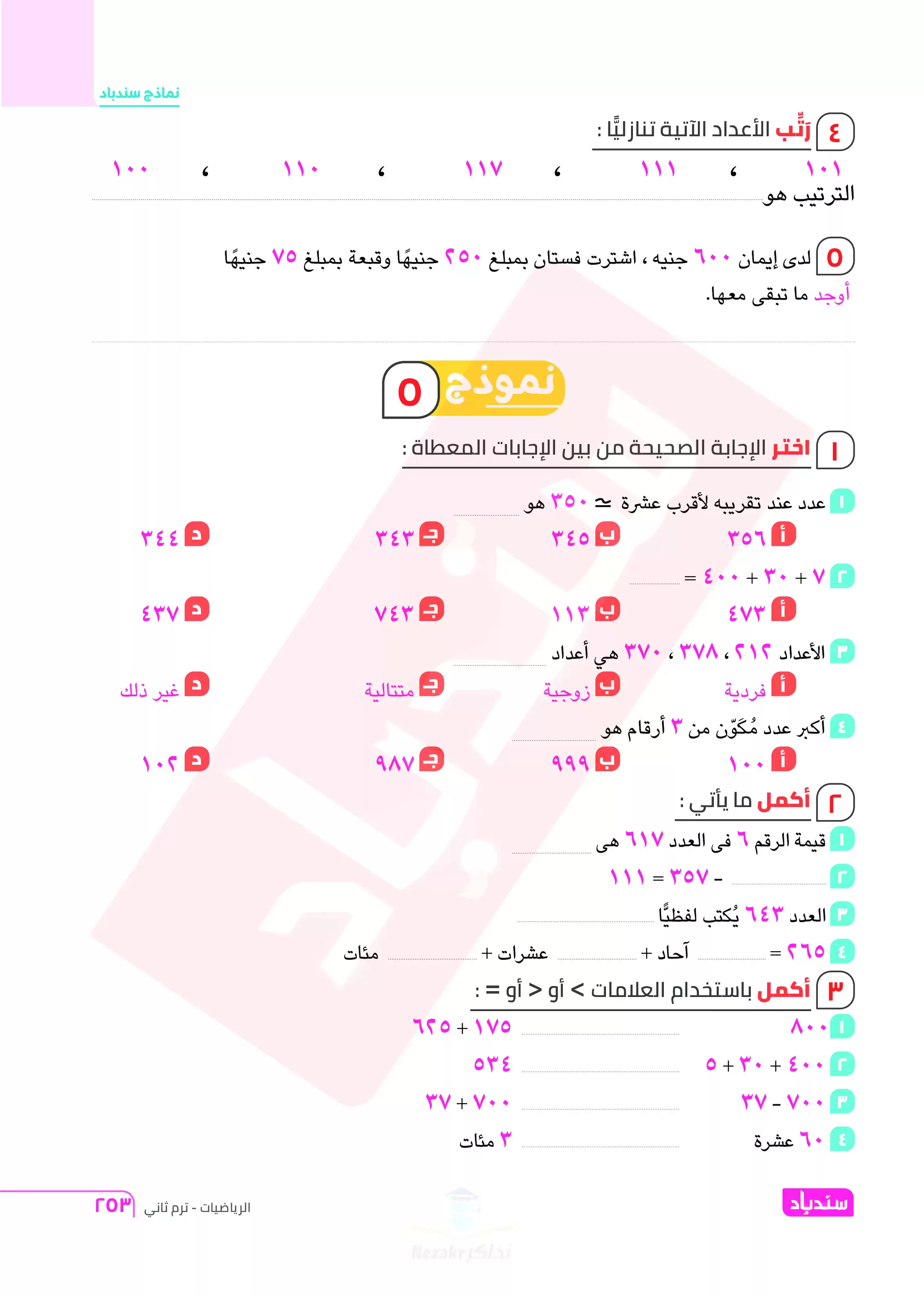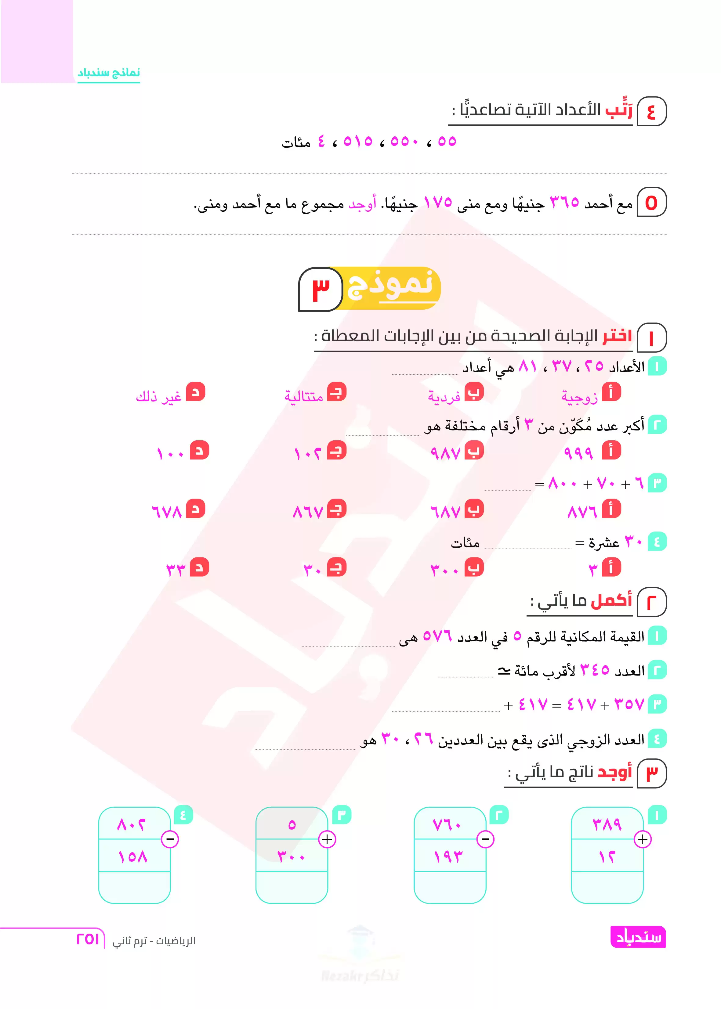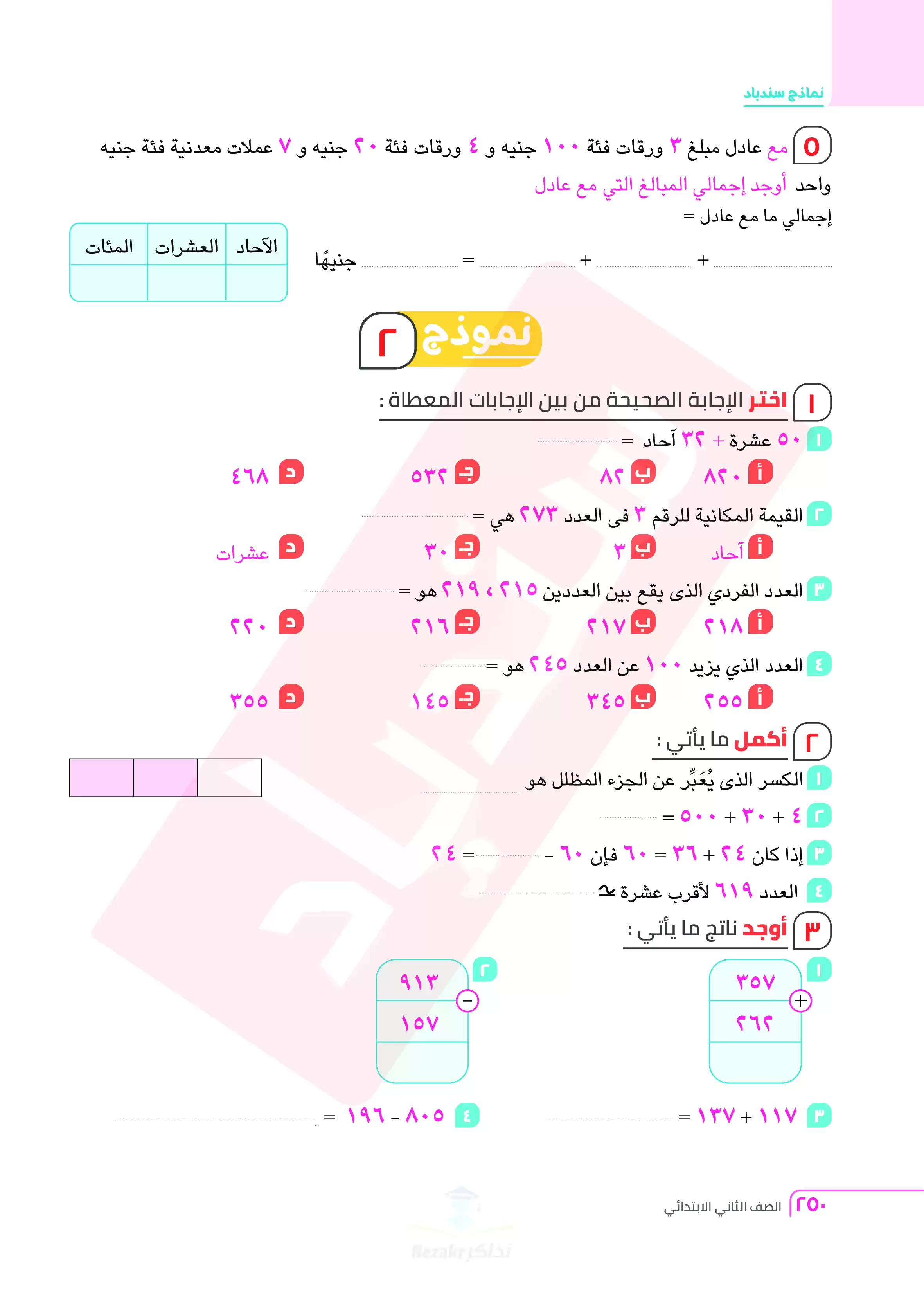 | بيانات الملف: (نماذج اختبارات السندباد في الرياضيات للصف الثاني الابتدائي الترم الثاني - Nezakr) | |