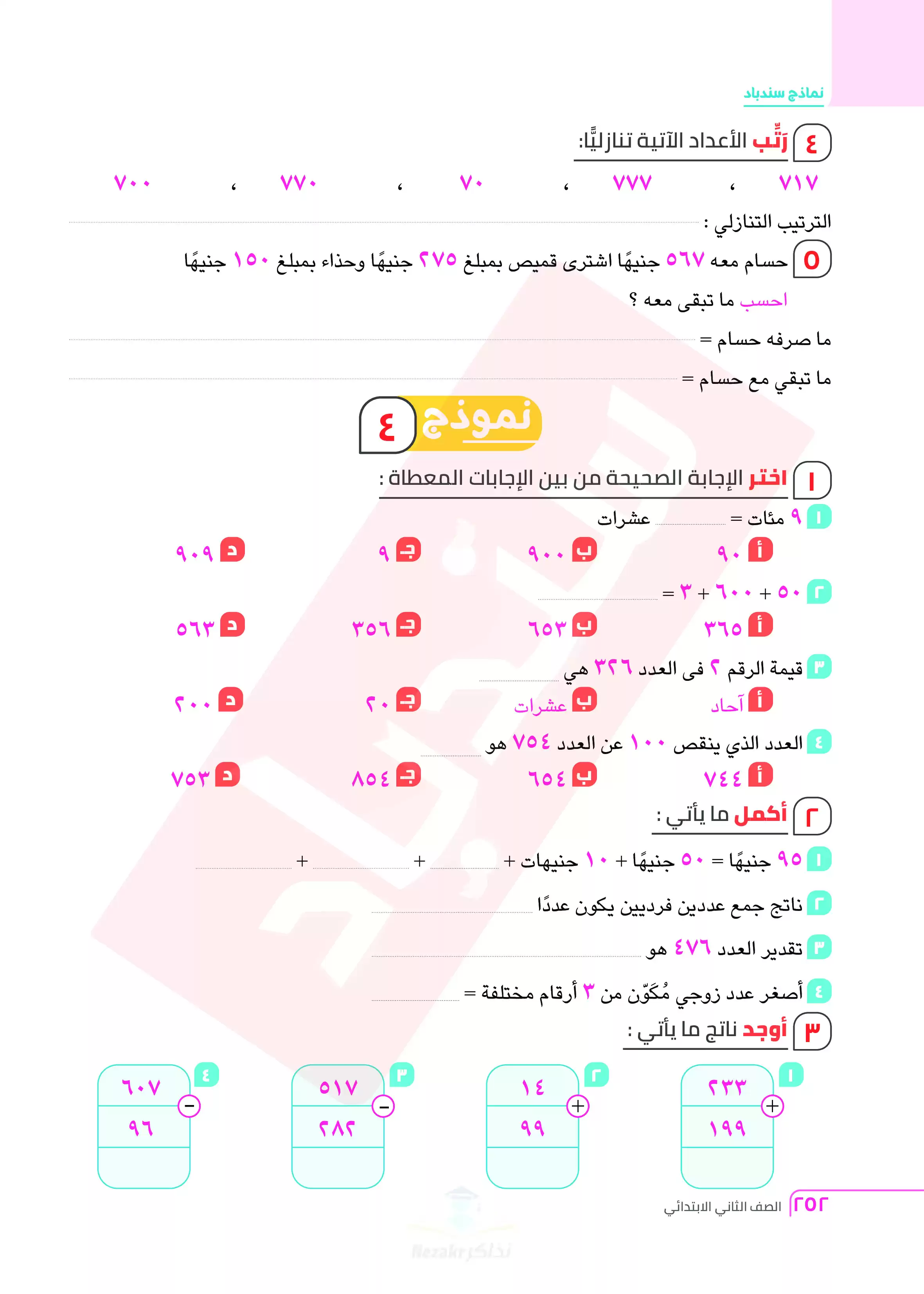 يقدم لكم كتاب السندباد من خلال هذا الملف 10 نماذج اختبار شاملة على منهج الرياضيات للصف الثاني الابتدائي الترم الثاني، وهذه الاختبارات الشاملة المميزة تغطي جميع أجزاء الوحدات الدراسية ومهارات الحساب الأساسية التي تم تناولها خلال الفصل الدراسي الثاني لتلاميذ ثانية ابتدائي.