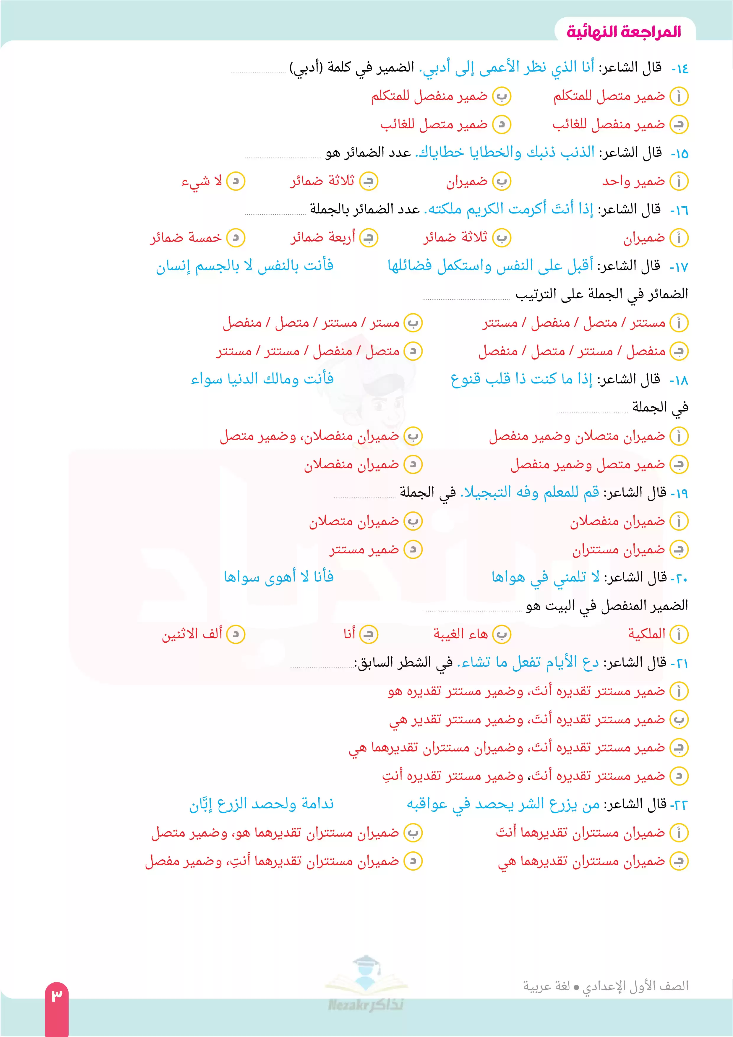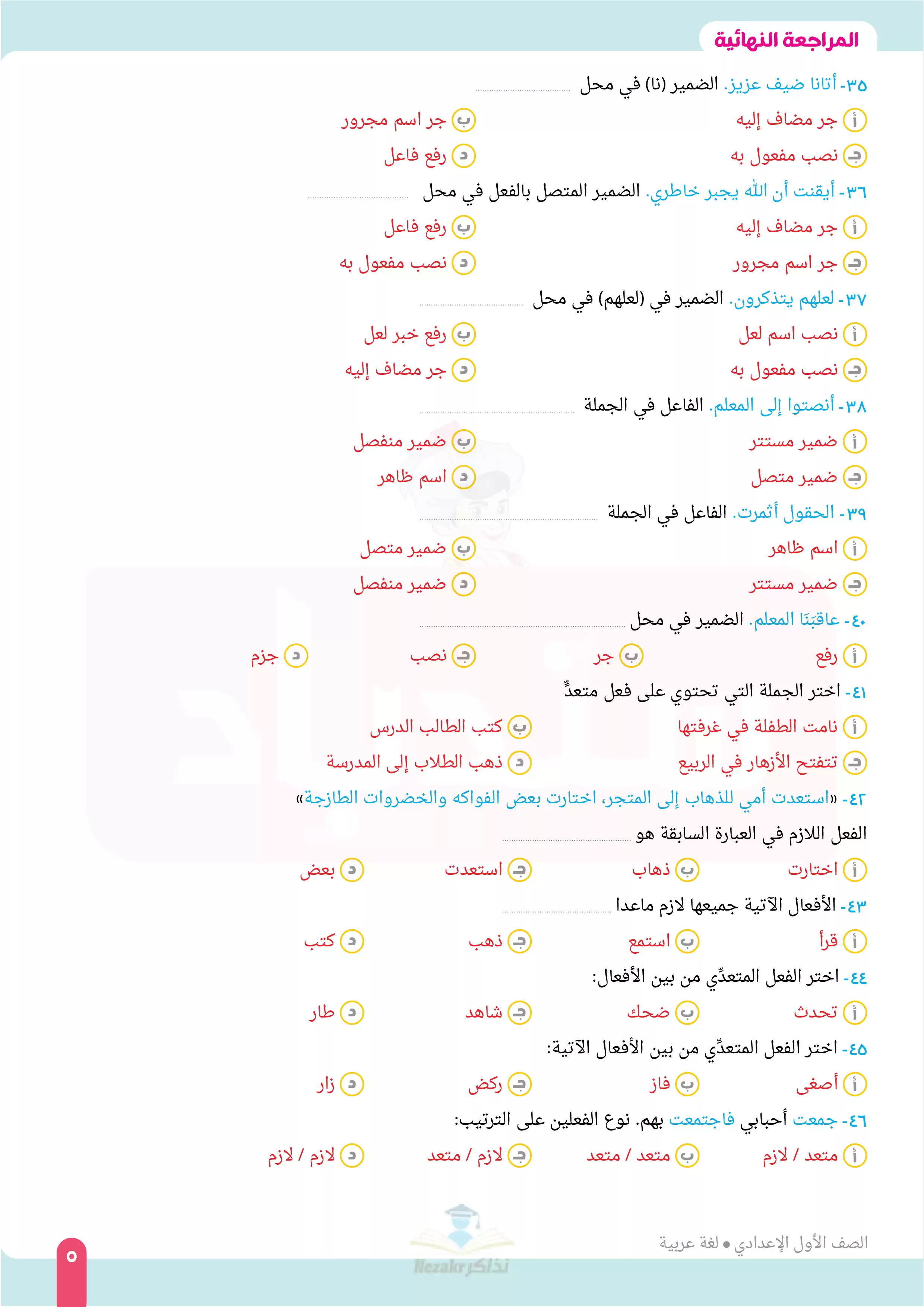 | بيانات الملف: (المراجعة النهائية من السندباد فى اللغة العربية للصف الاول الإعدادي آخر العام - Nezakr) | |