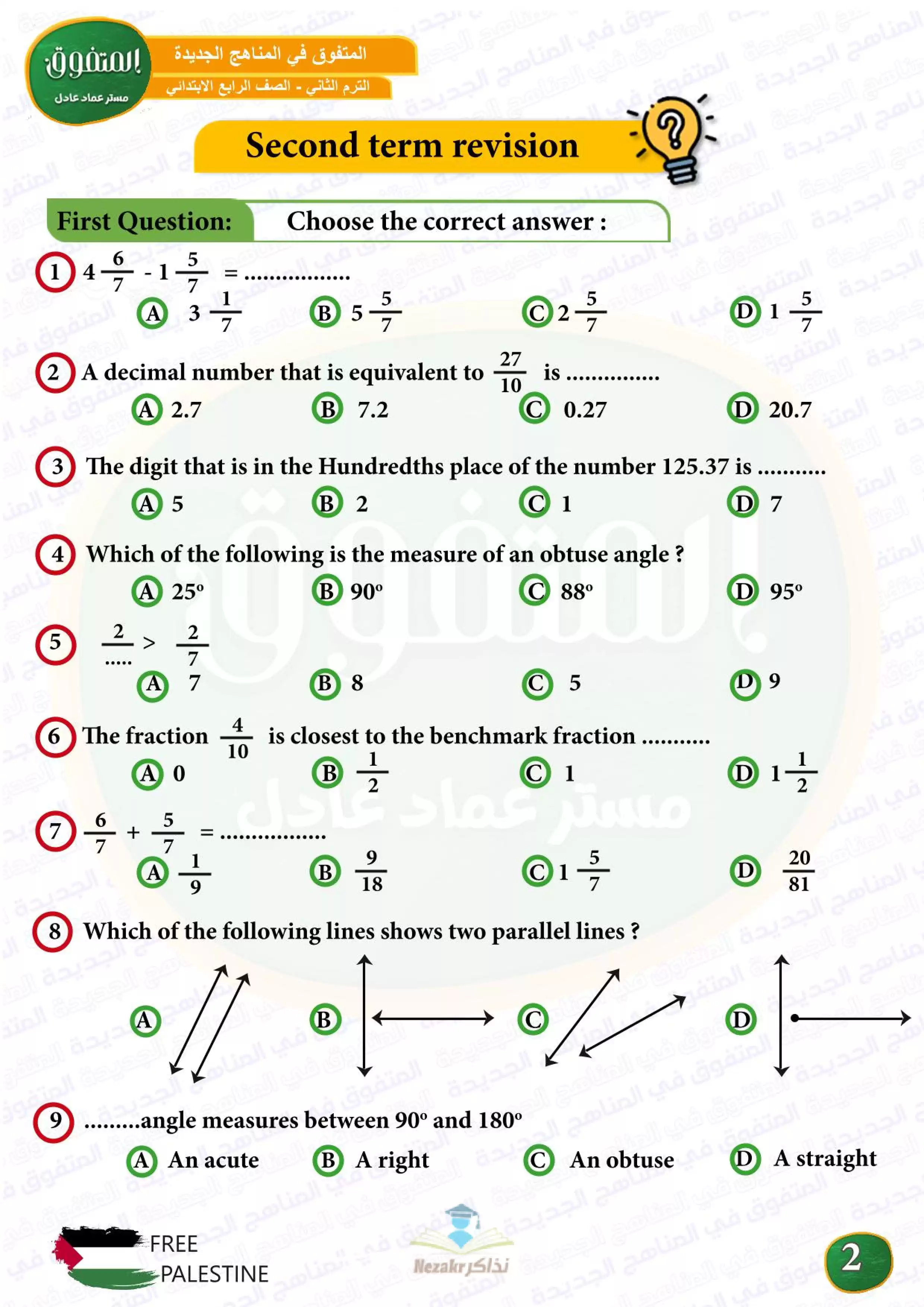 ملف المراجعة النهائية رياضيات بالانجليزي Math للصف الرابع الابتدائي ترم 2 من المتفوق من إعداد: أ. عماد عادل