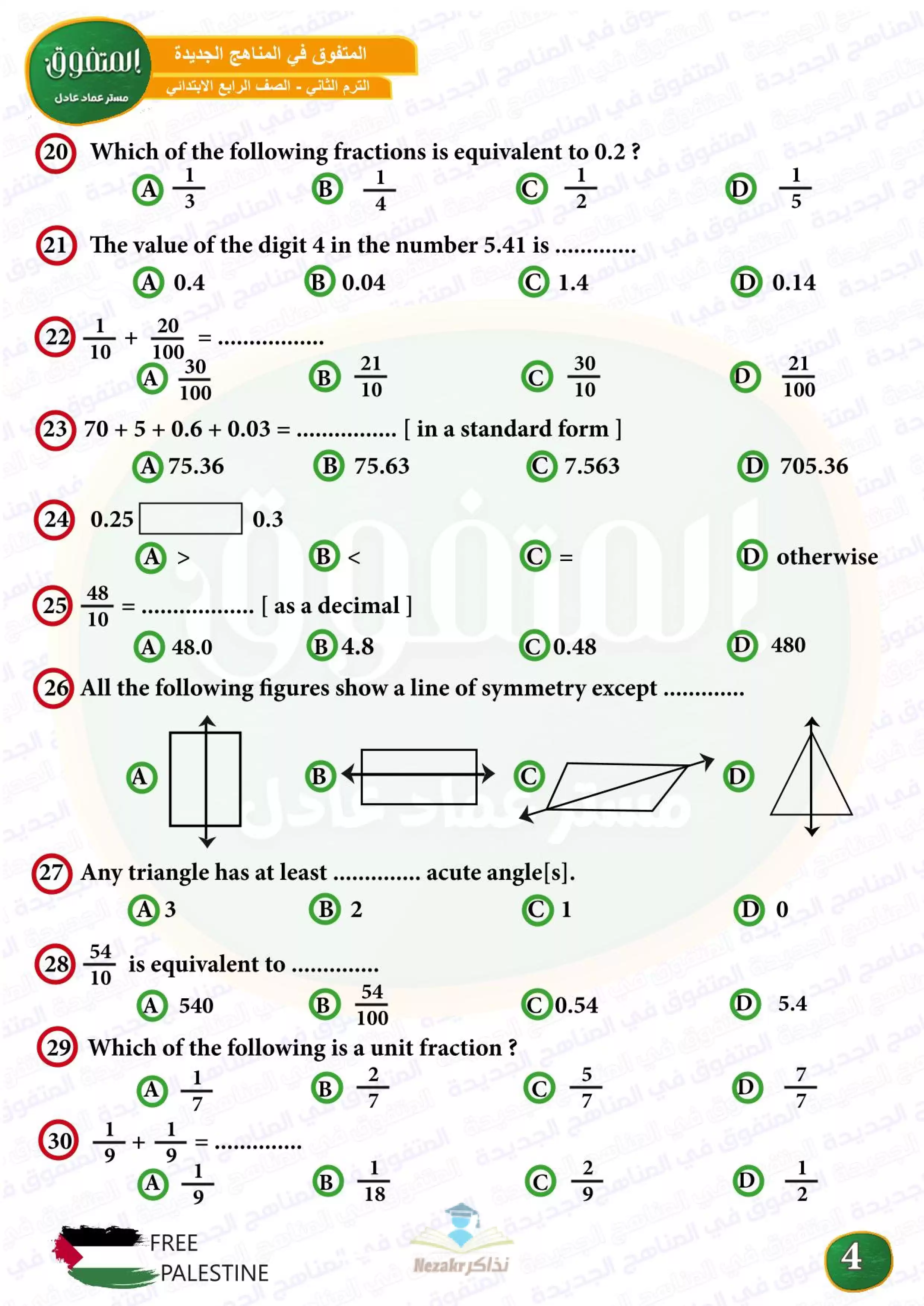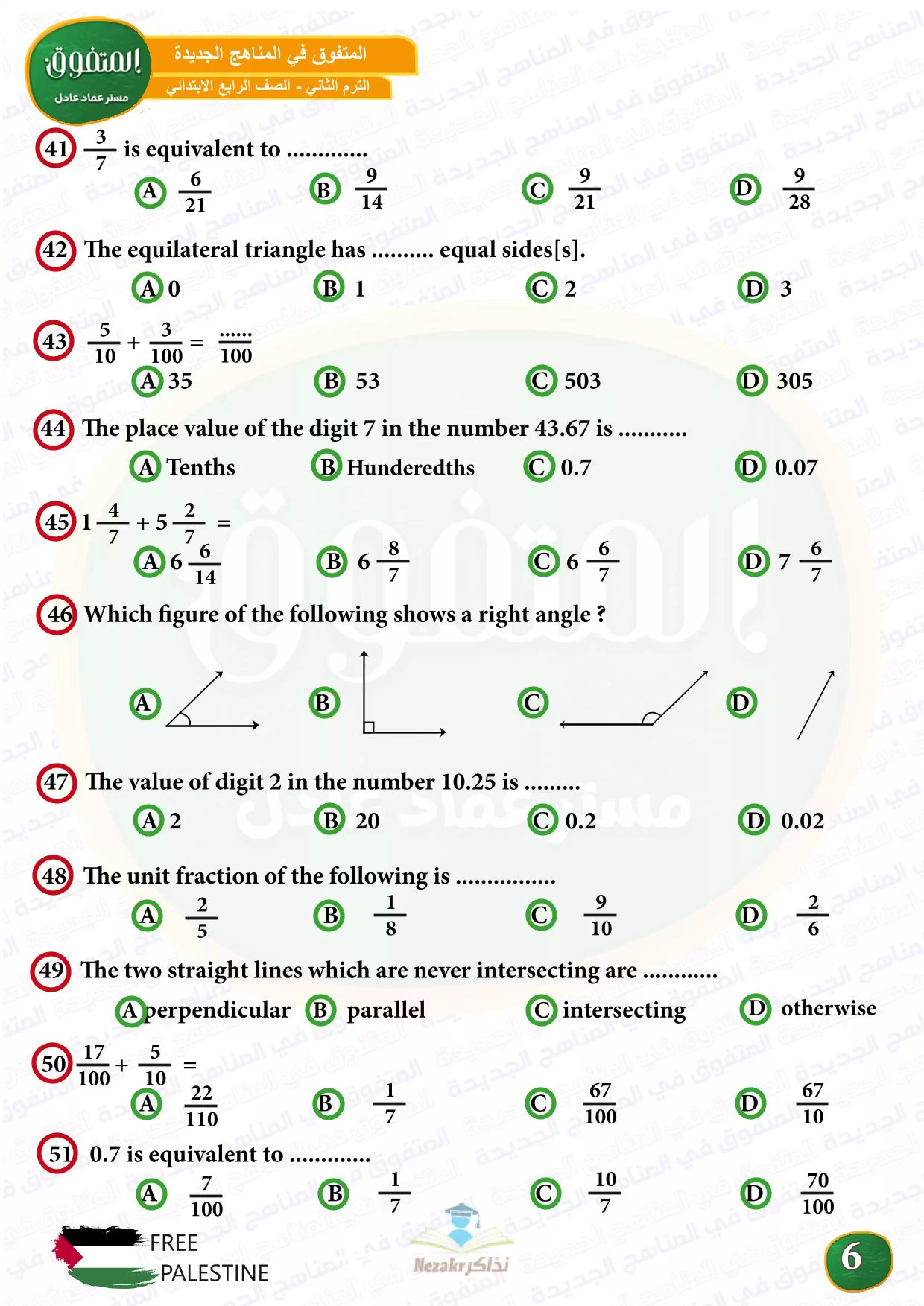 | بيانات الملف: (مراجعة المتفوق النهائية في الرياضيات باللغة الإنجليزية Math للصف الرابع الابتدائي الترم الثاني - Nezakr) | |