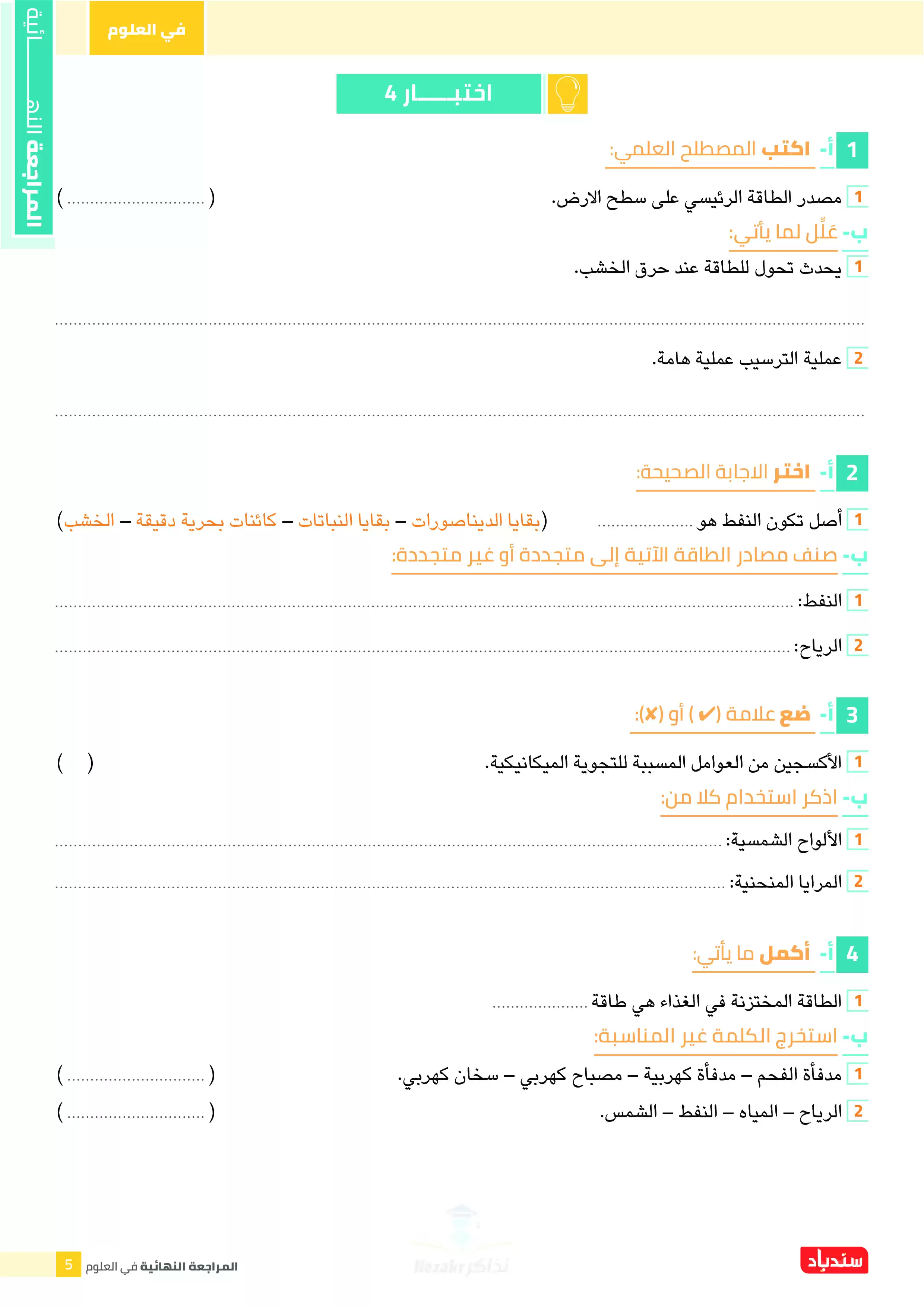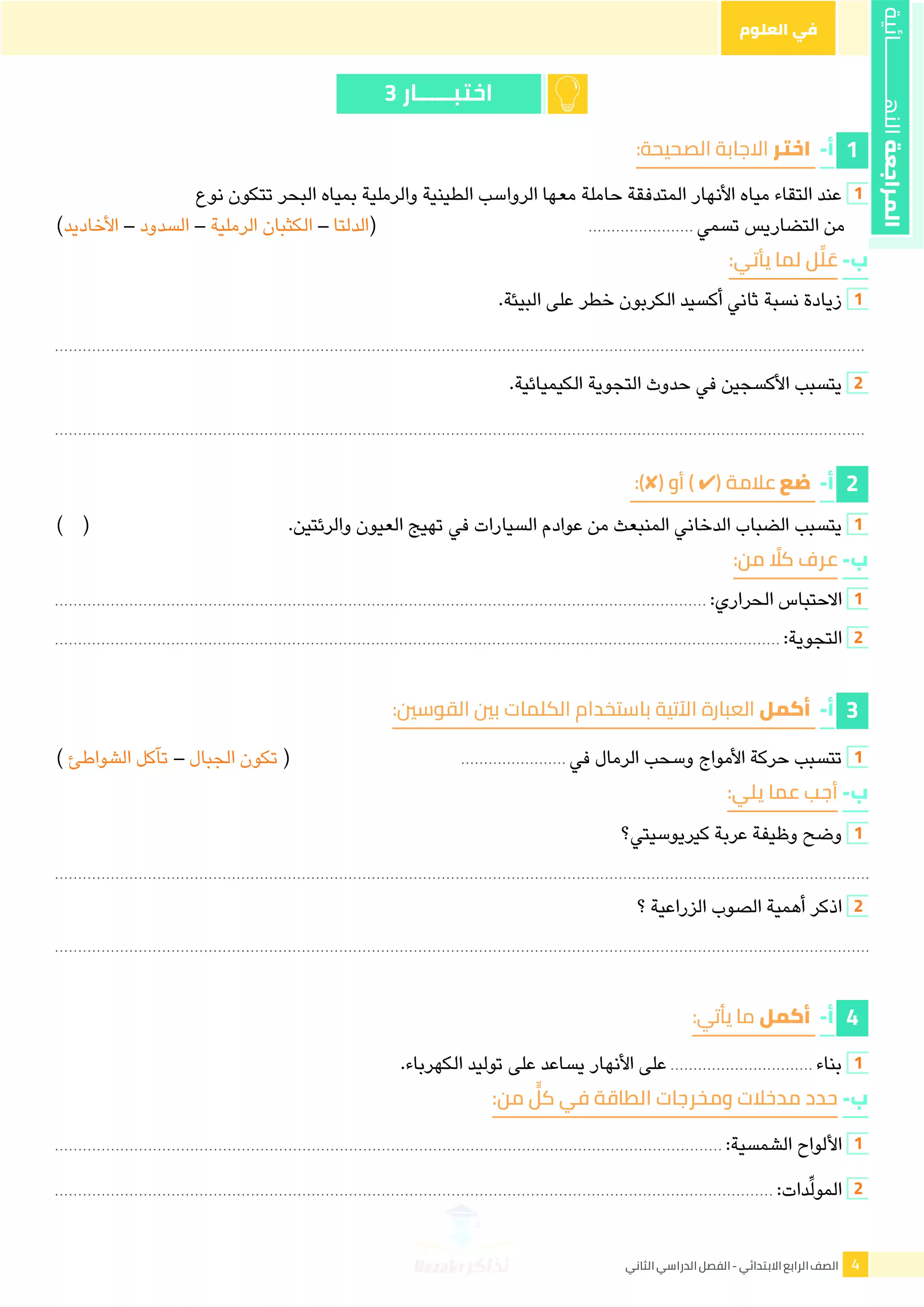 لأولياء الأمور وتلاميذ الصف الرابع الابتدائي، نوفر لكم أداة مثالية للاستعداد لامتحانات نهاية العام في مادة العلوم، وذلك من خلال 6 اختبارات استرشادية شاملة على منهج العلوم للترم الثاني رابعة ابتدائي، والتي تُغطي جميع دروس المقرر بشكل منظم ووفق أحدث المواصفات الامتحانية من وزارة التربية والتعليم.