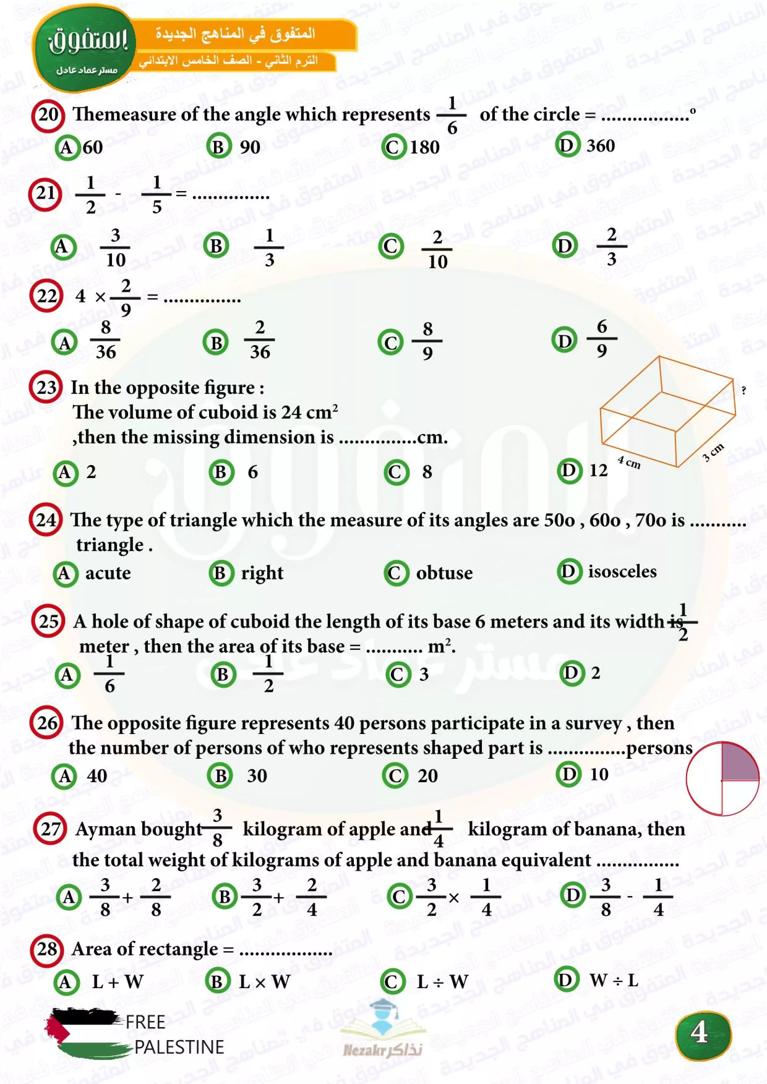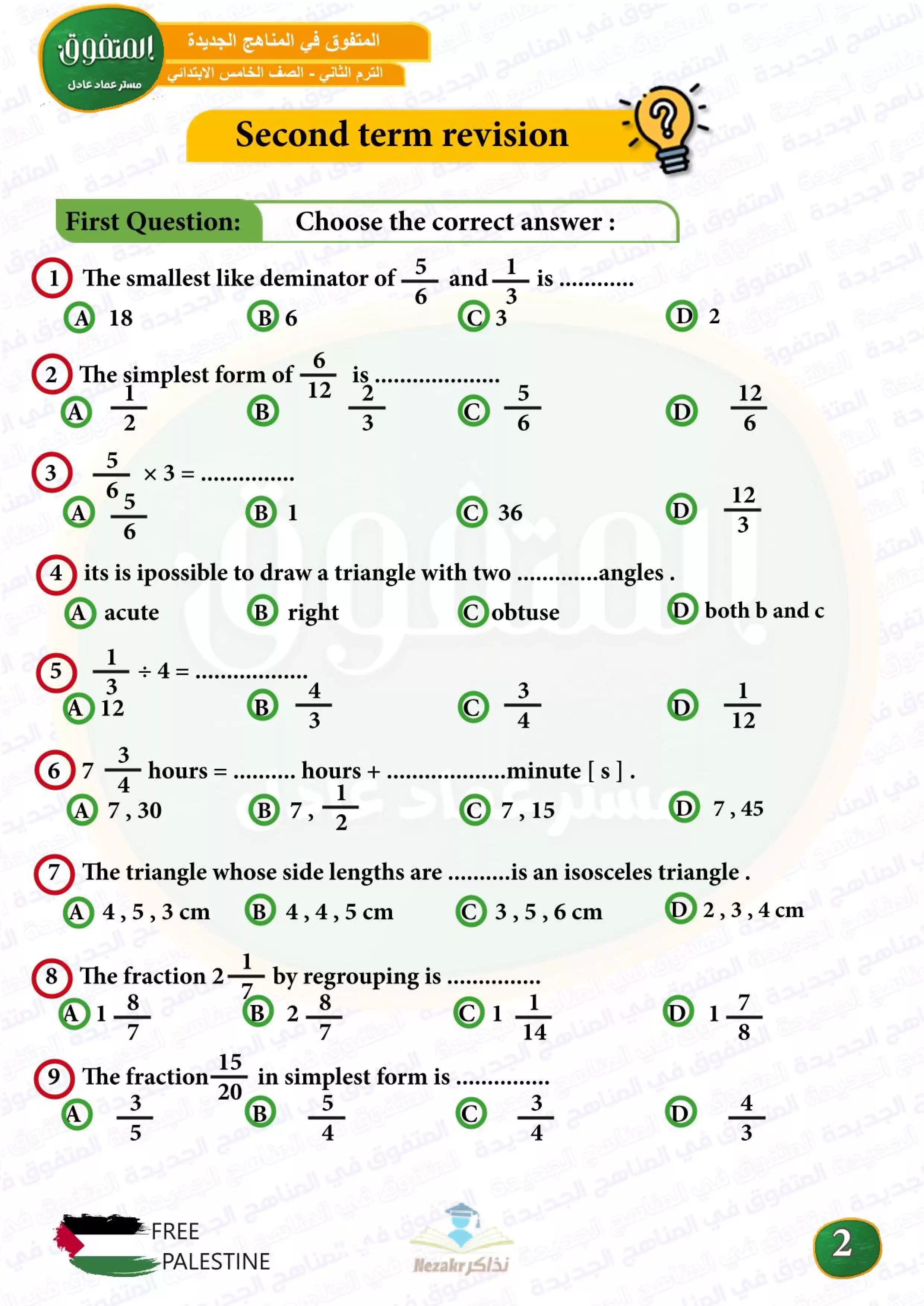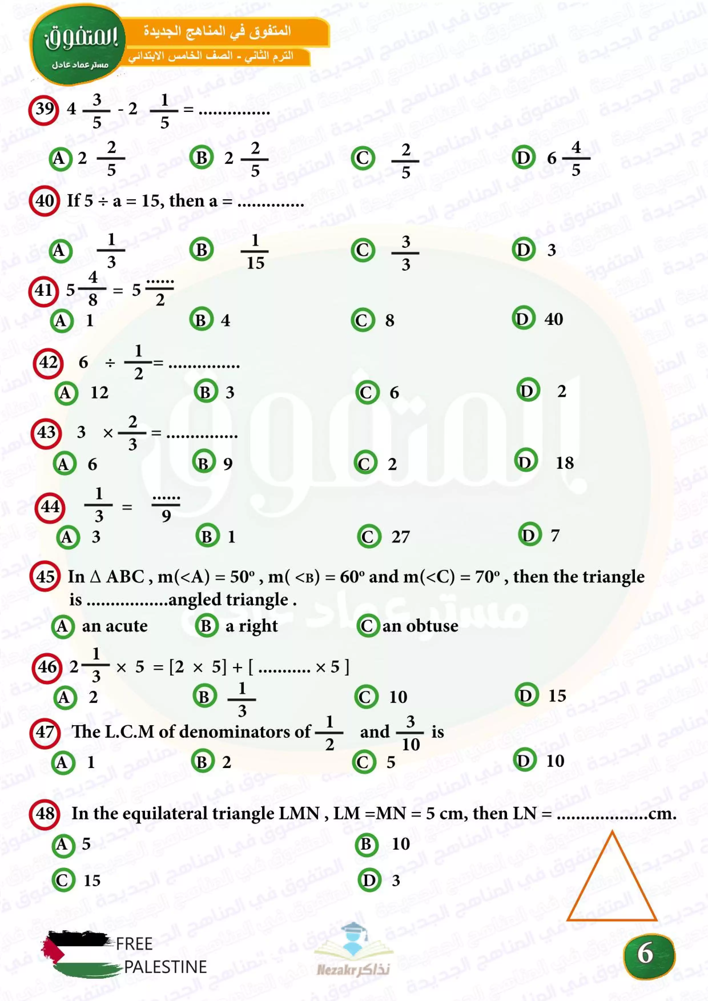 يحتوى الملف المرفق في المقال على ملف مراجعة المتفوق النهائية في الماث Math للصف الخامس الابتدائي الفصل الدراسي الثاني, وذلك لتتمكن من تشغيله على جهاز الموبايل أو من خلال جهاز الكمبيوتر أو عبر اللابتوب أو التابلت لضمان سهولة الوصول الى الكتاب والمذاكرة عليه.