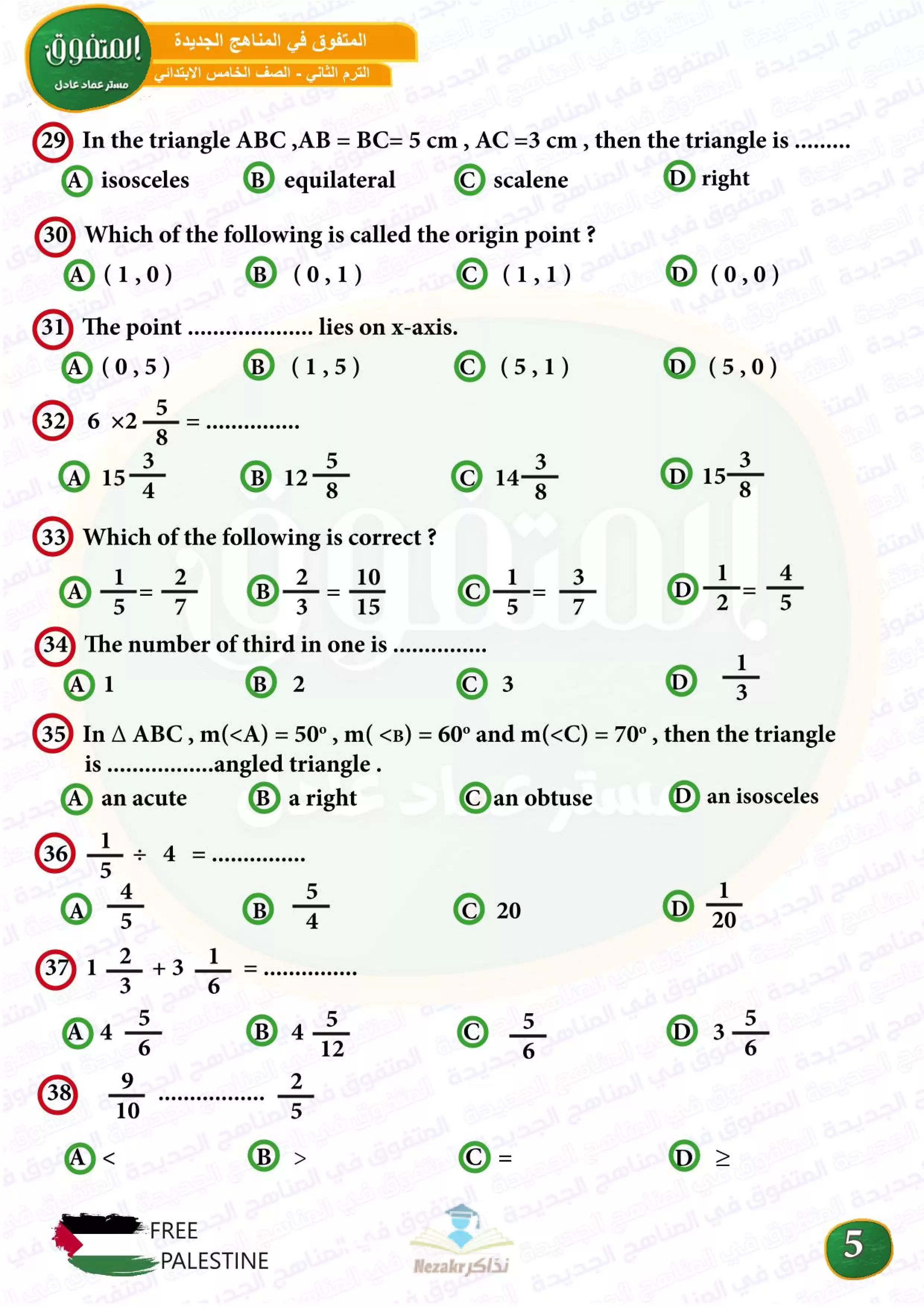 | بيانات الملف: (مراجعة المتفوق النهائية في الرياضيات باللغة الإنجليزية Math للصف الخامس الابتدائي الترم الثاني - Nezakr) | |