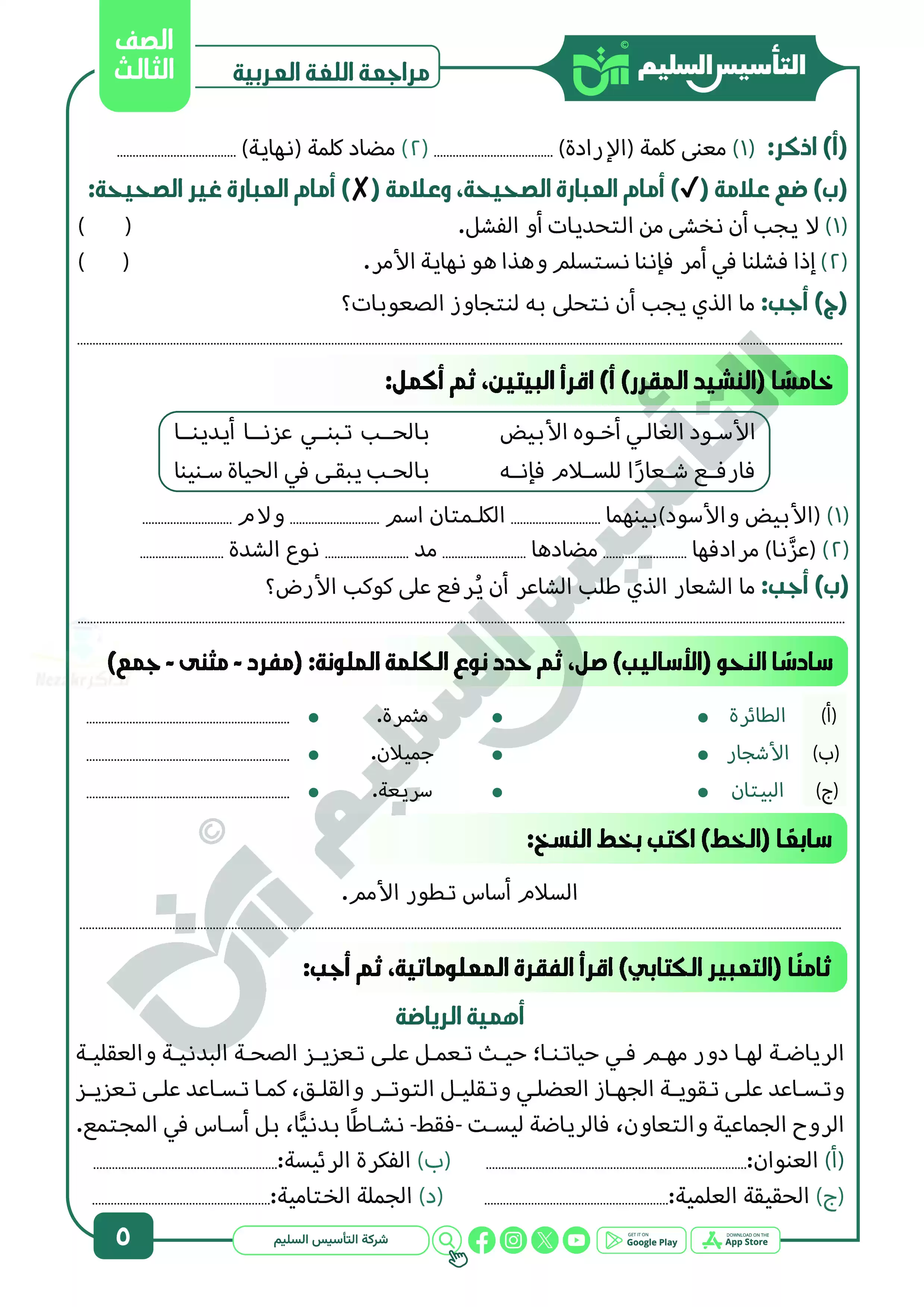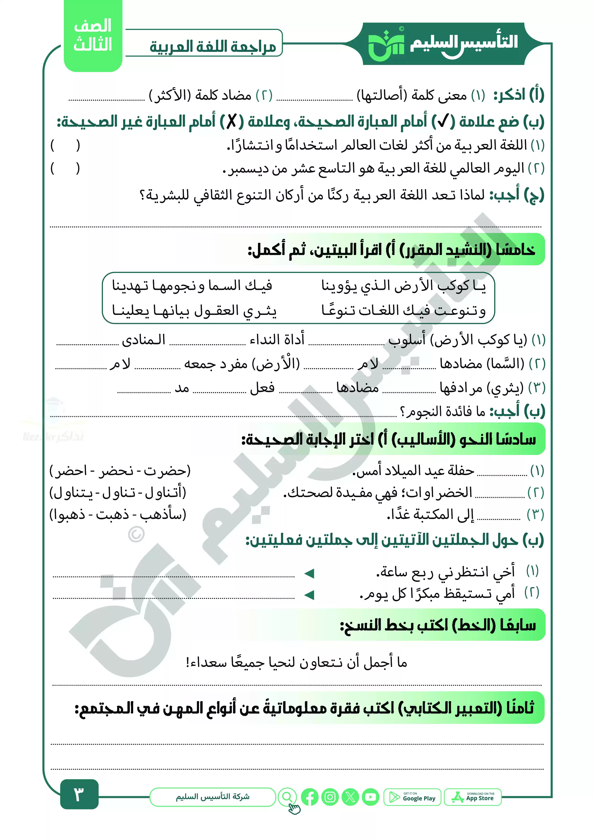 نقدم لكم المزيد من المحتوى من إعداد التأسيس السليم ومقدم إلى الصف الثالث الإبتدائي للإطلاع عليه أو تحميله.