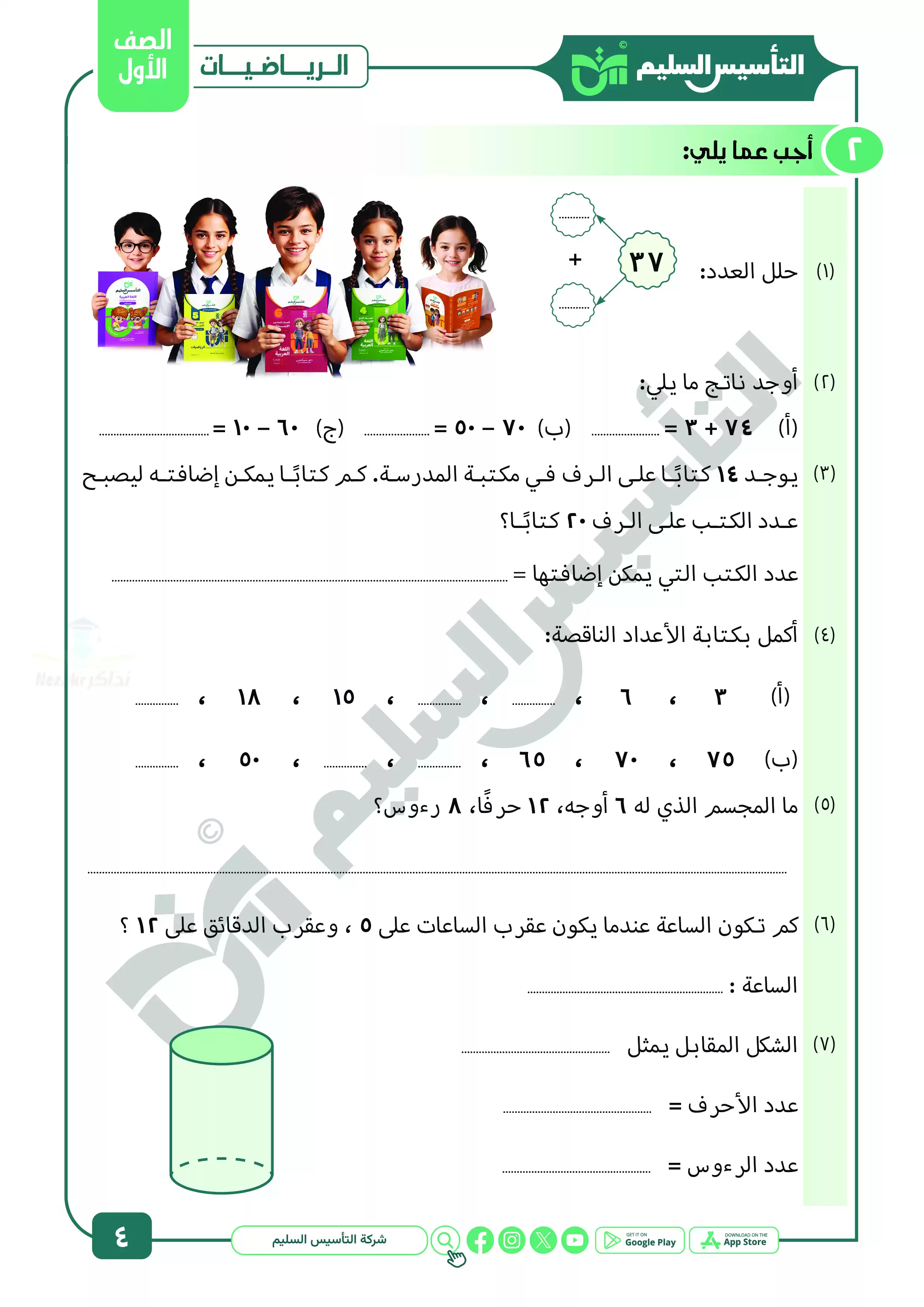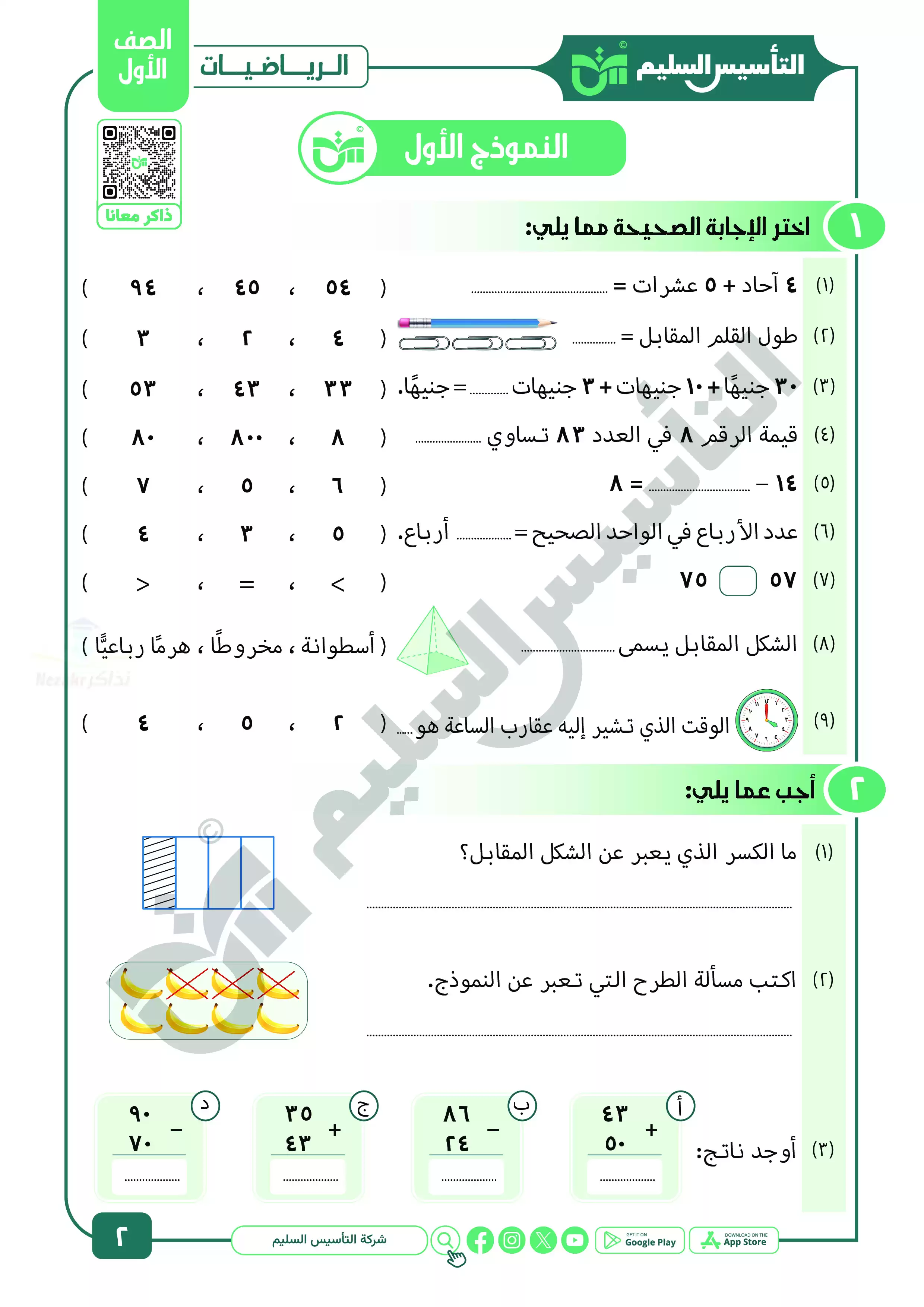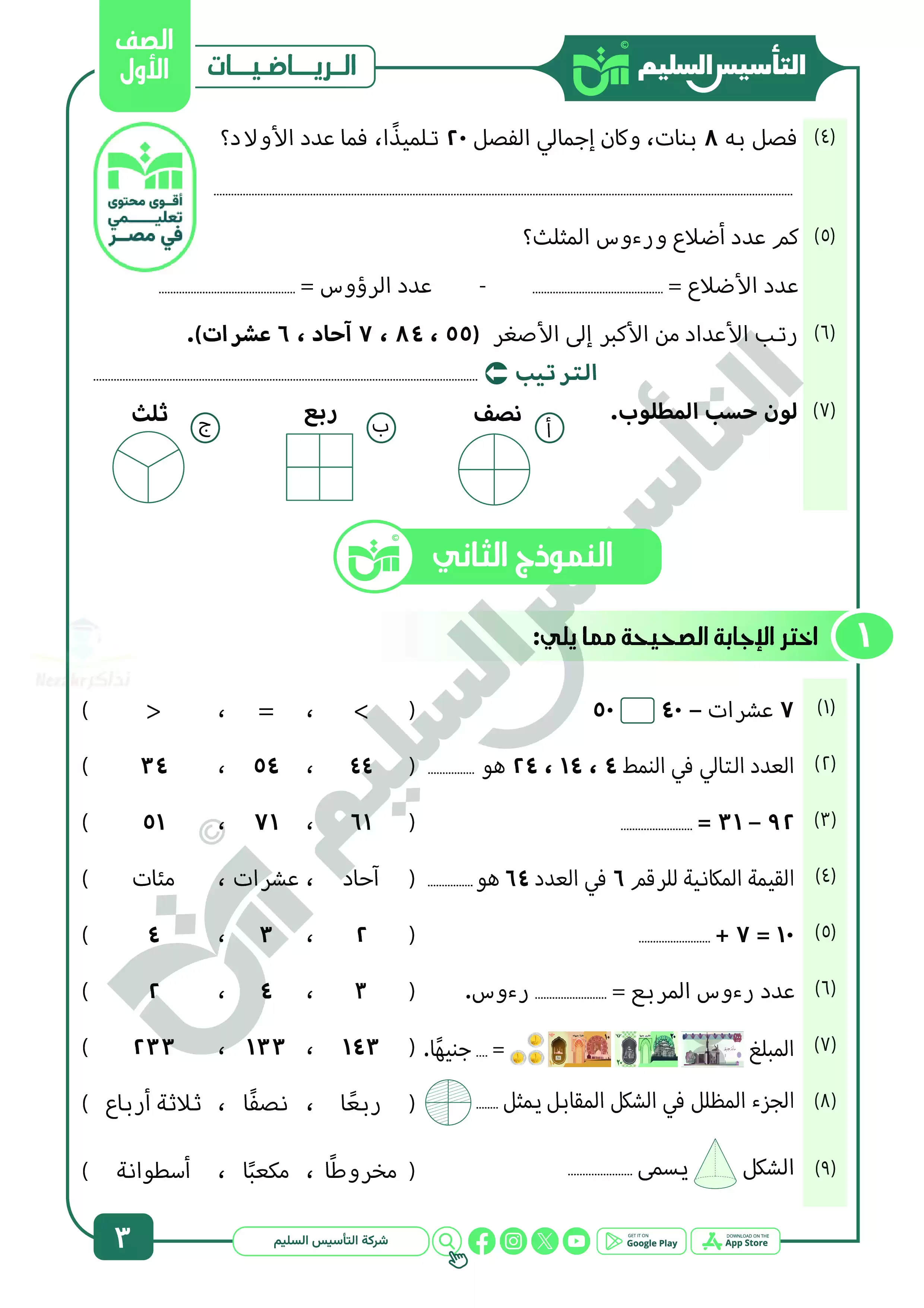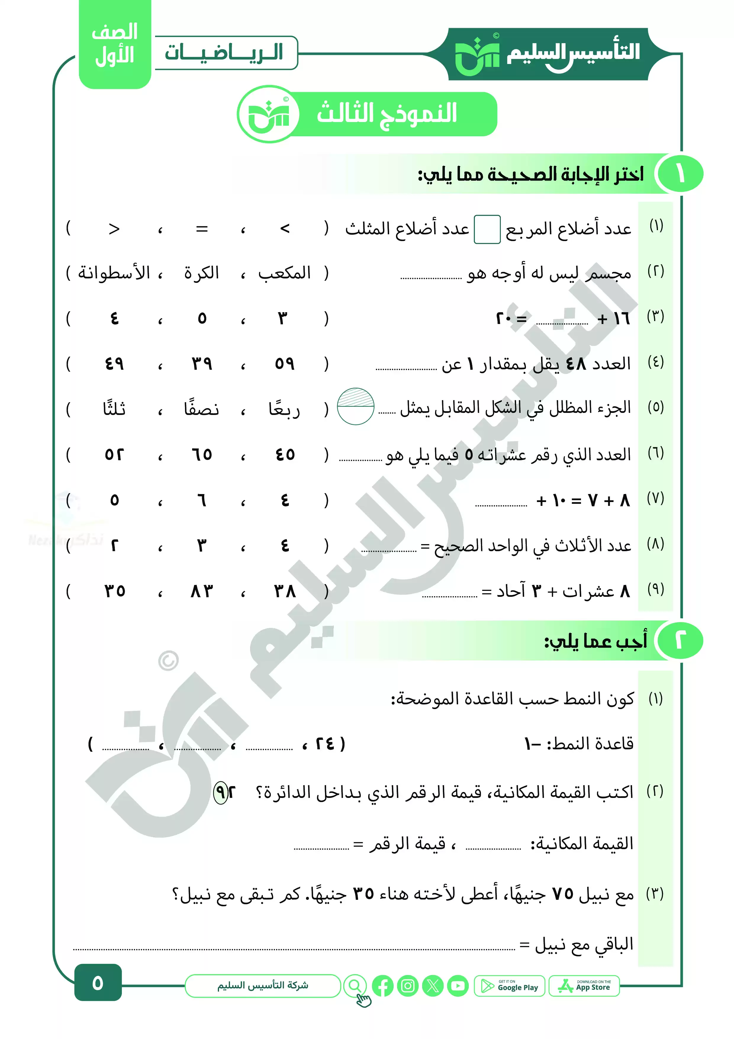 | بيانات الملف: (نماذج المراجعة النهائية في الحساب للصف الأول الابتدائي ترم ثاني بالاجابات - Nezakr) | |
