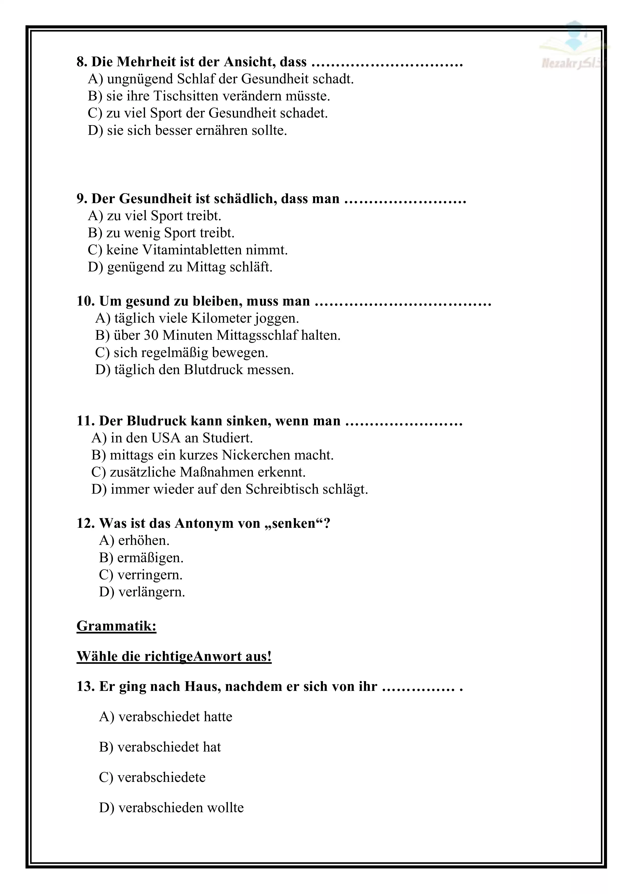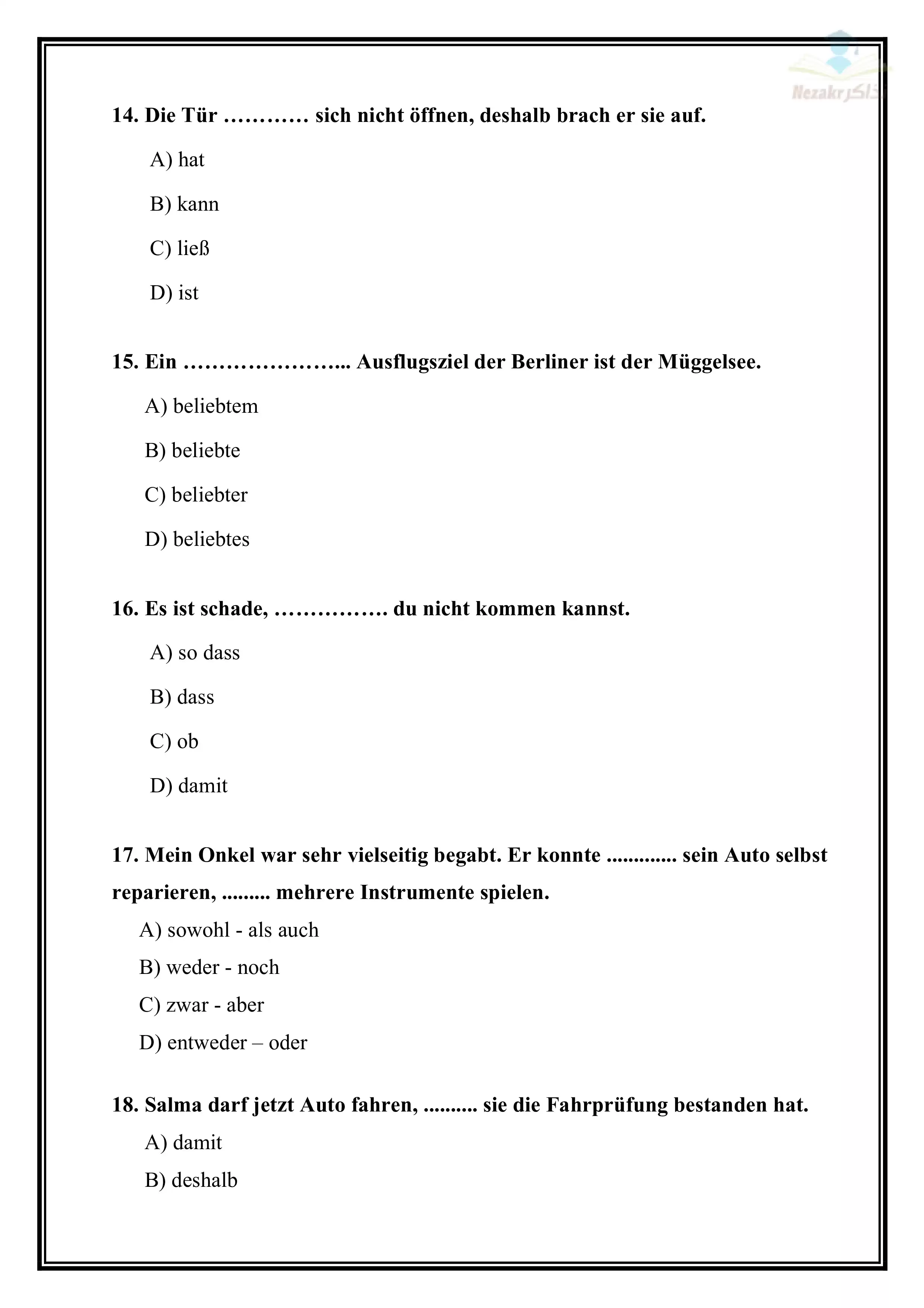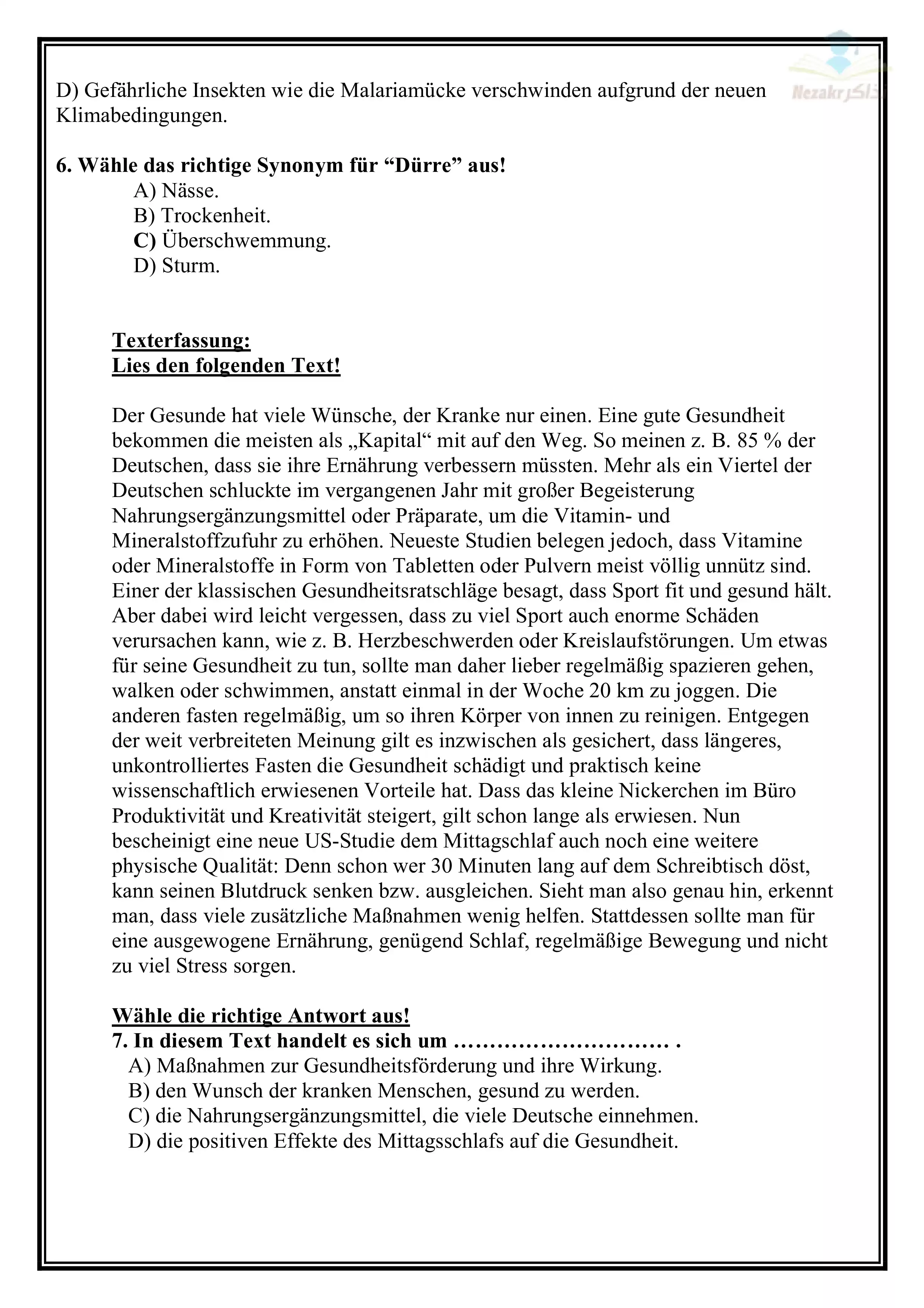| بيانات الملف: (تجميع نماذج امتحانات الوزارة الاسترشادية في اللغة الألمانية للثانوية العامة ٢٠٢٥ (7 نماذج) - Nezakr) | |