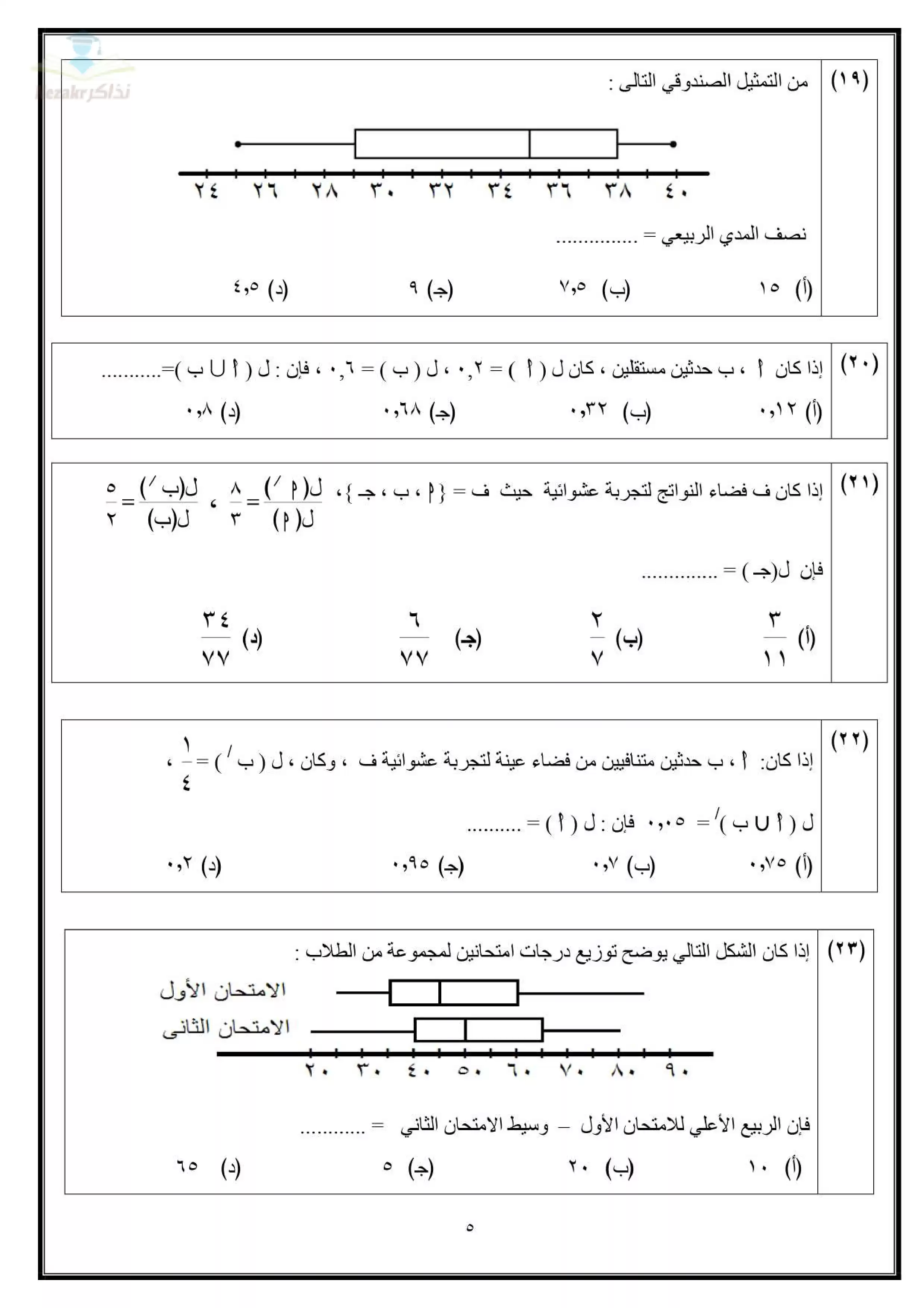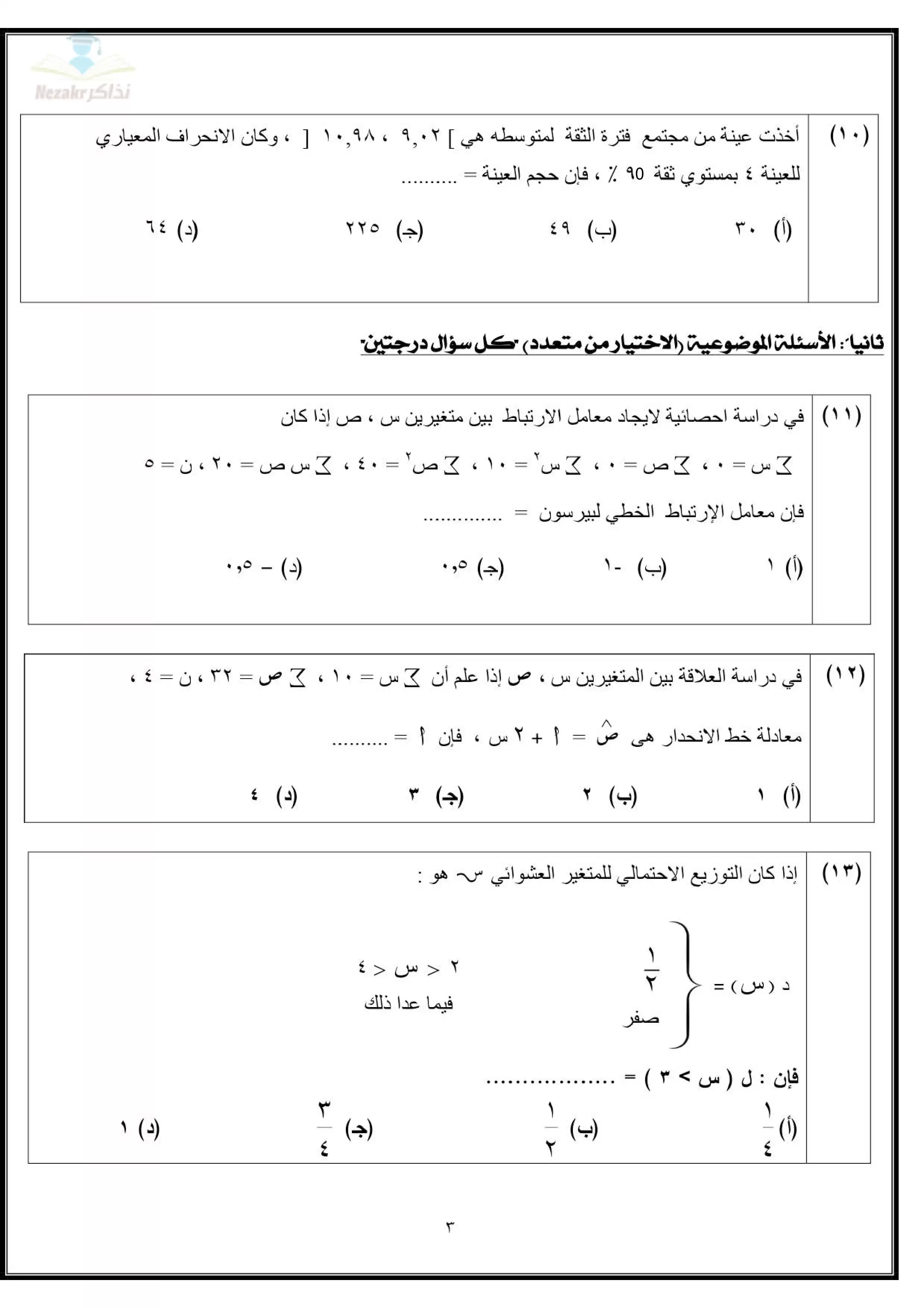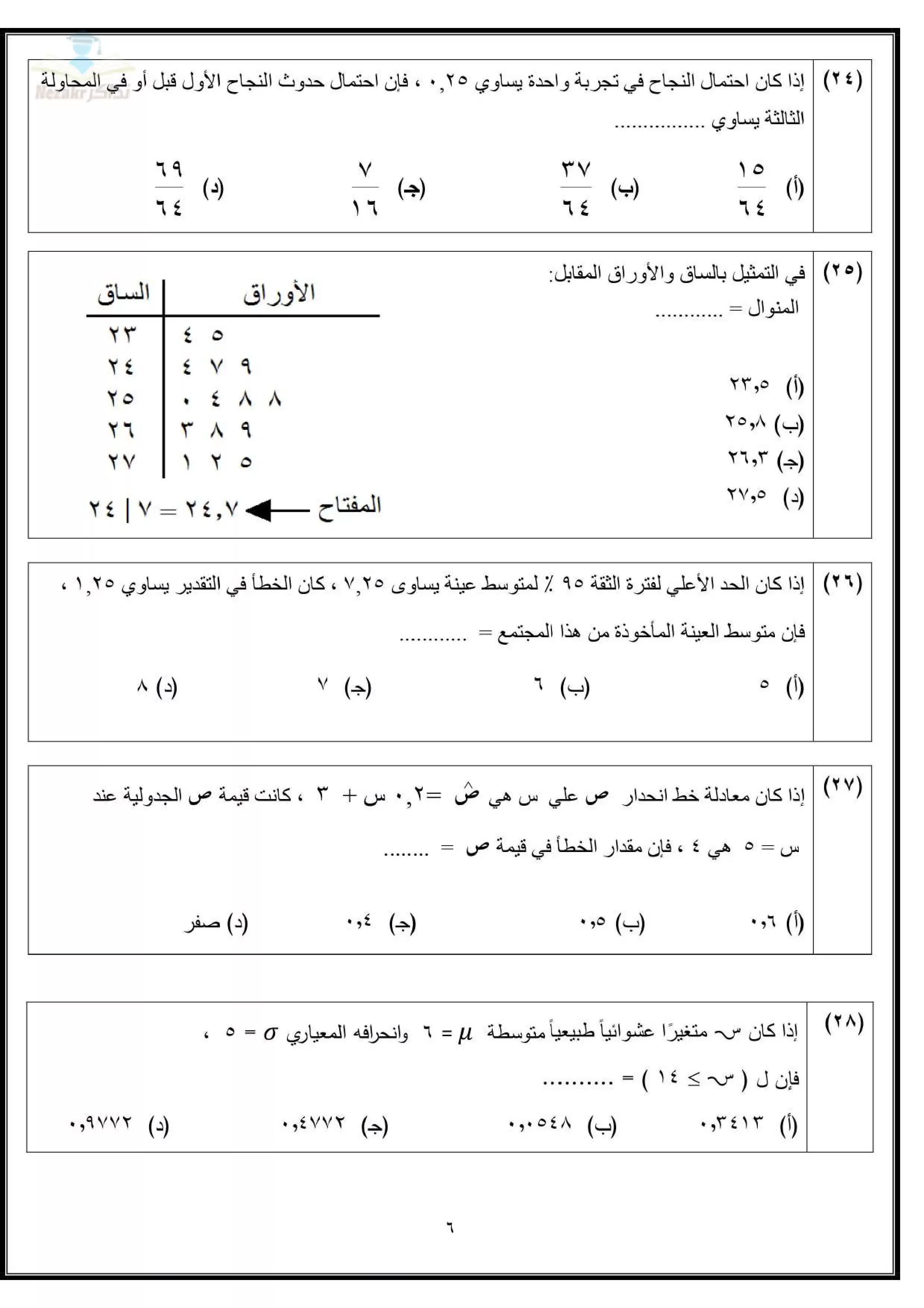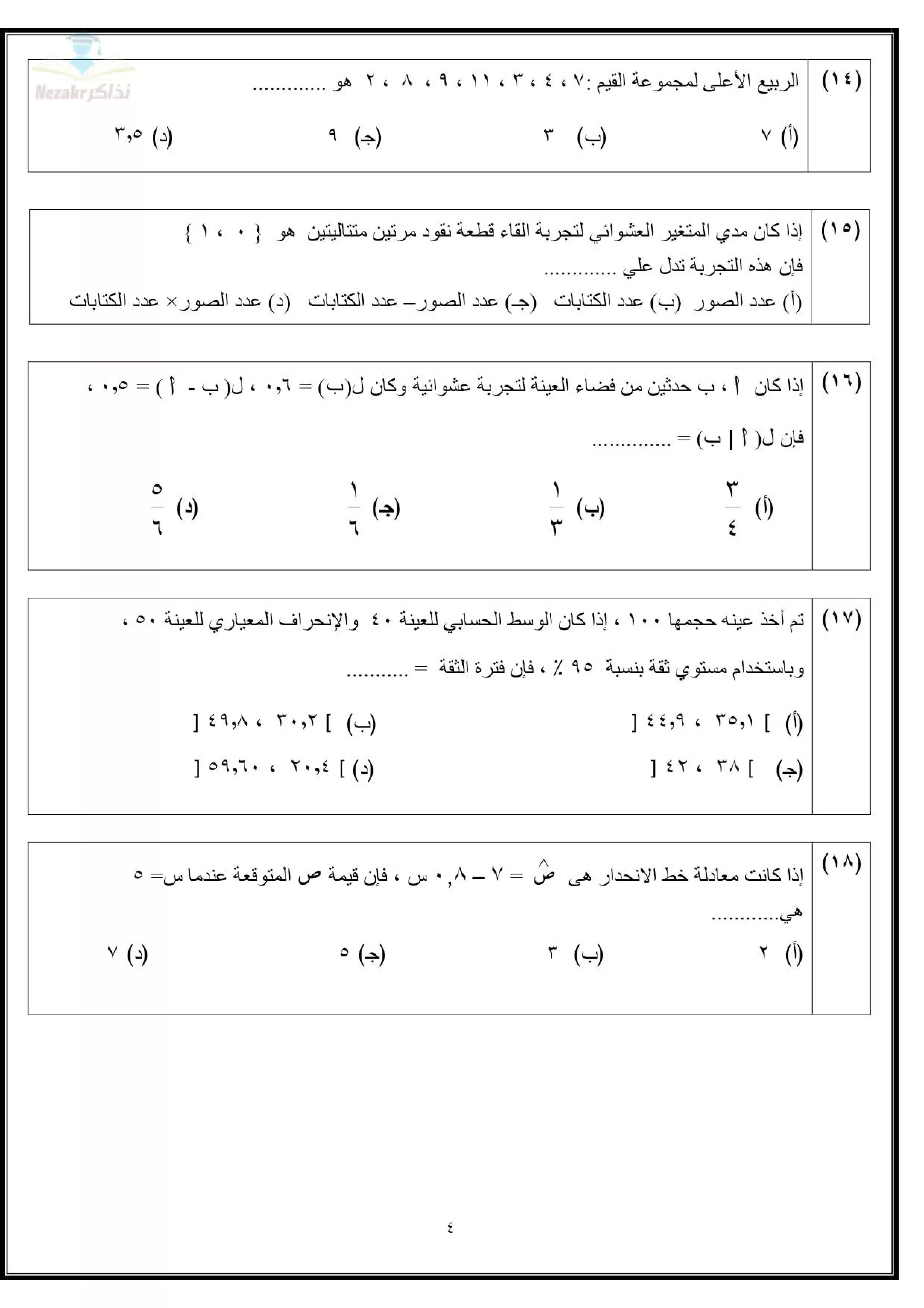 | بيانات الملف: (تجميع نماذج امتحانات الوزارة الاسترشادية في الإحصاء للثانوية العامة ٢٠٢٥ (7 نماذج) - Nezakr) | |
