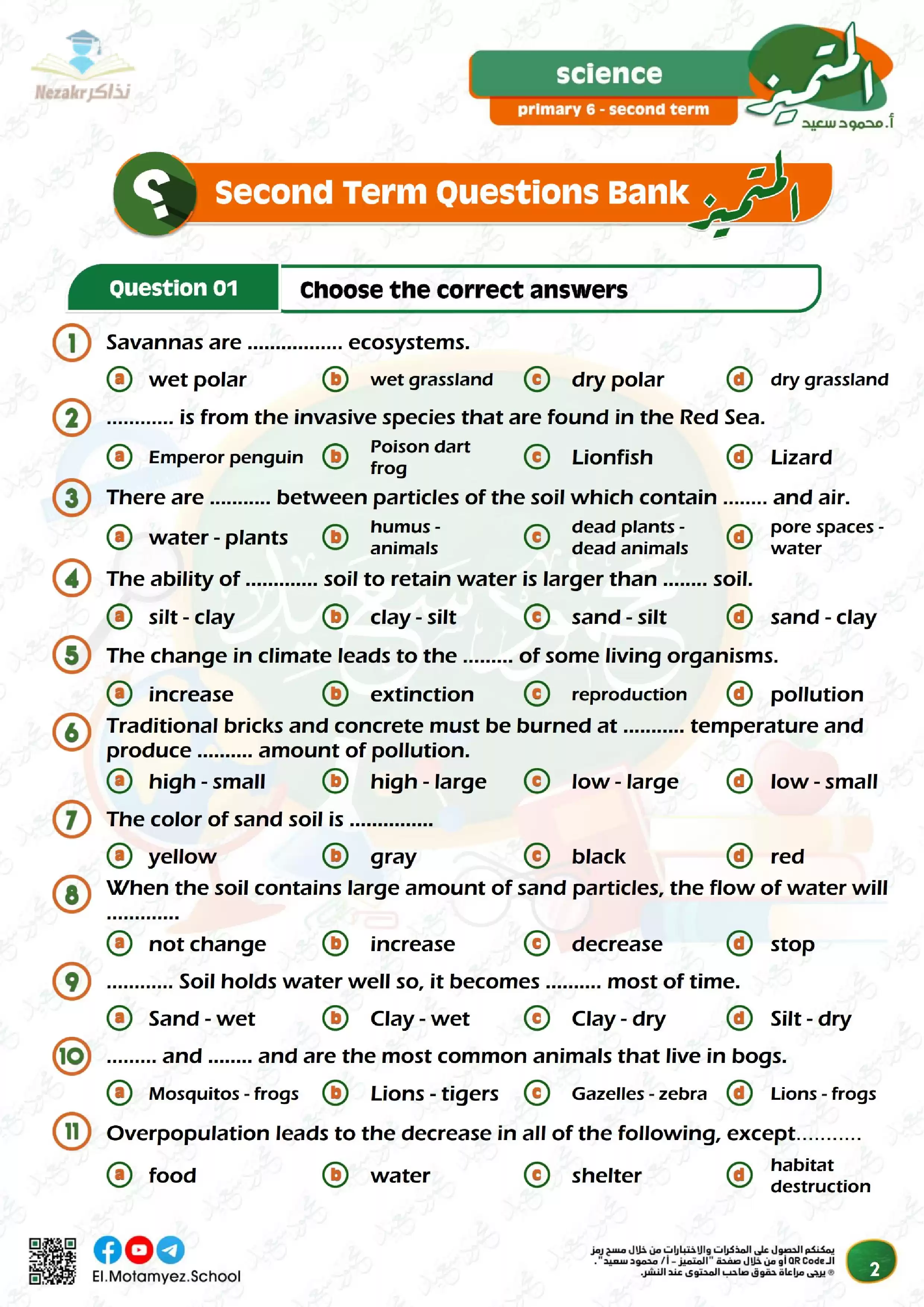 صفحة 2 من 35 صفحة من ملف: مراجعة المتميز النهائية في مادة Science العلوم باللغة الإنجليزية للصف السادس الابتدائي الترم الثاني - Nezakr