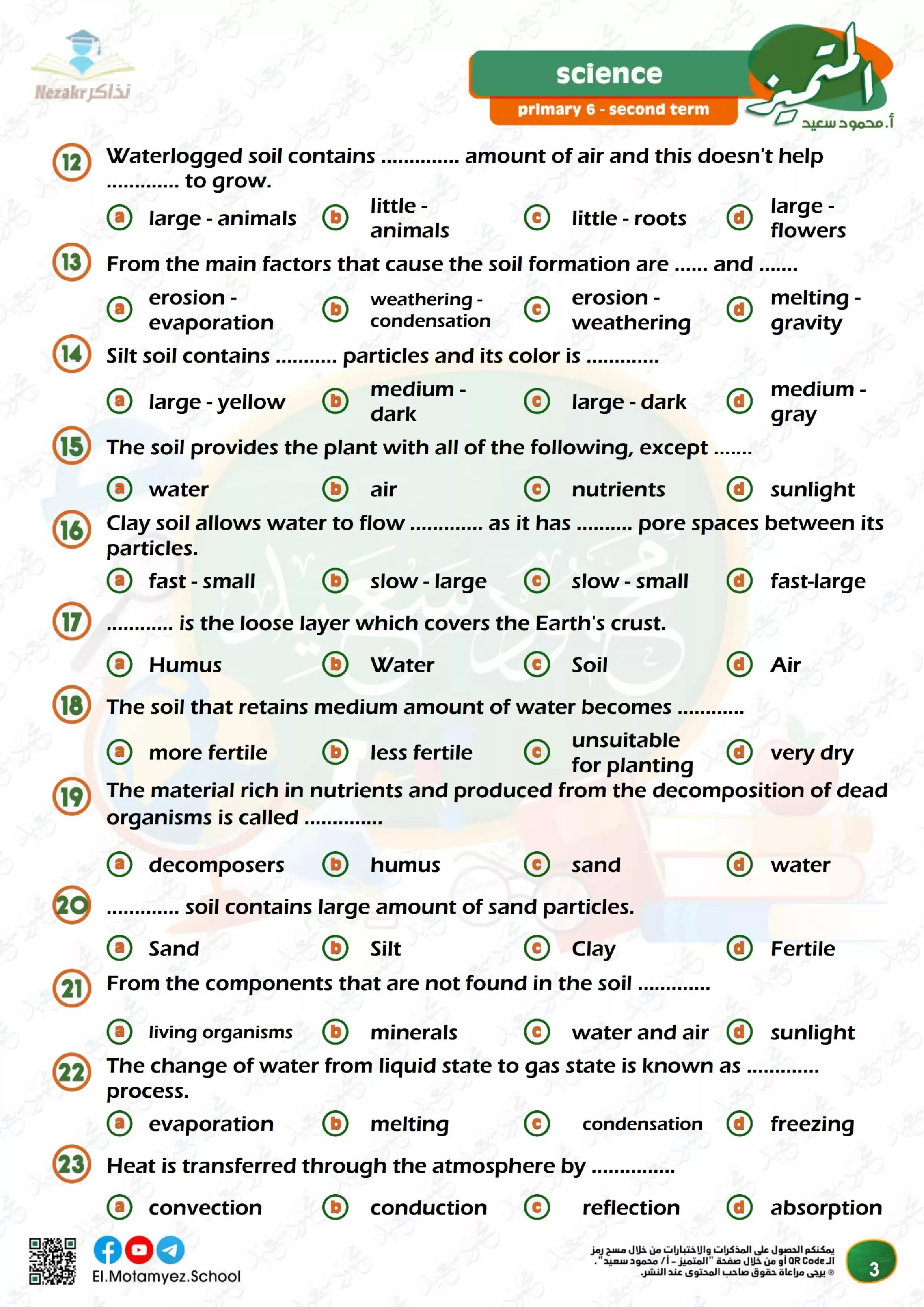 تحميل مراجعة المتميز النهائية في مادة Science الصف السادس الابتدائي ترم ثاني (بنك أسئلة شامل)
