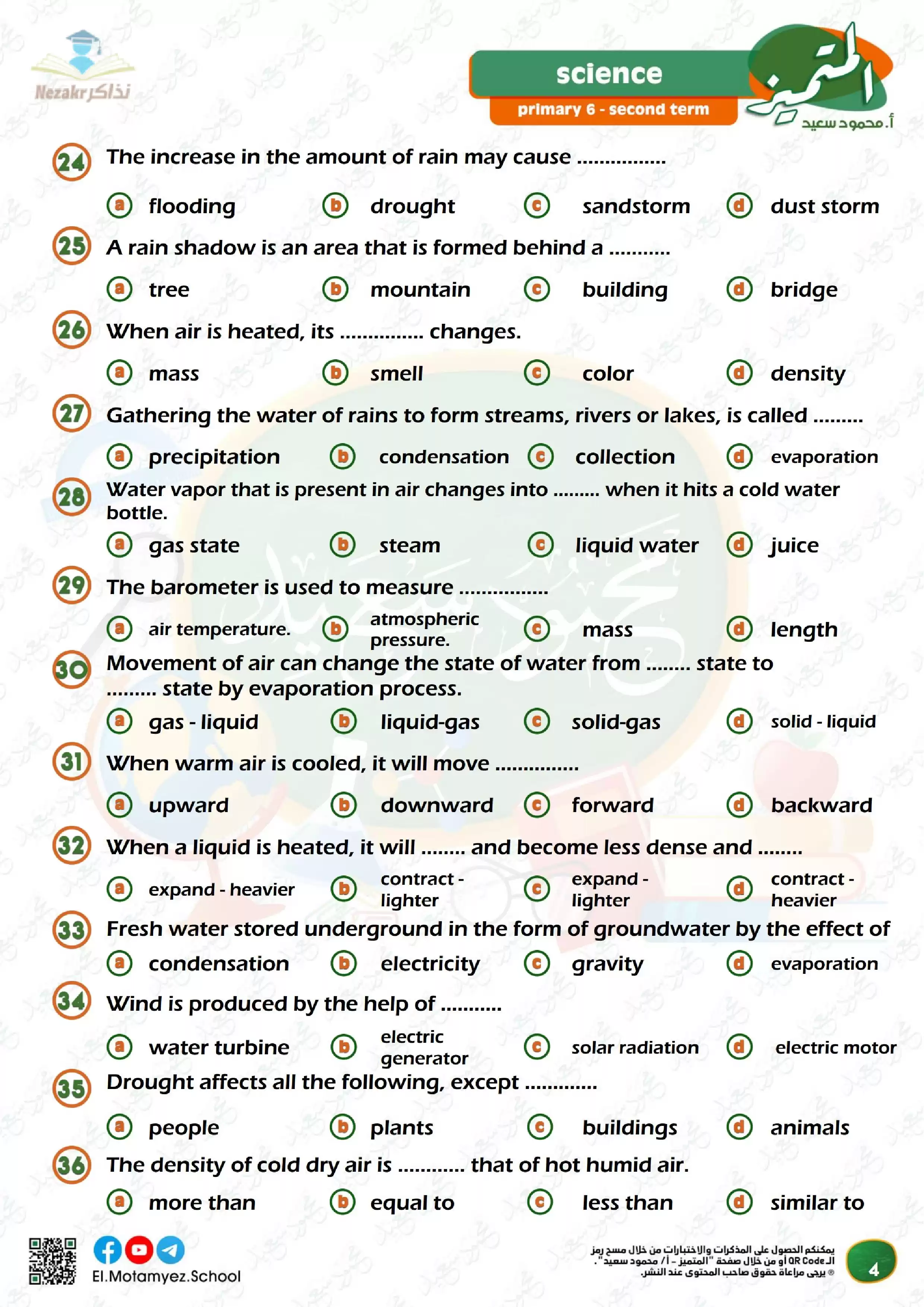 صفحة 4 من 35 صفحة من ملف: مراجعة المتميز النهائية في مادة Science العلوم باللغة الإنجليزية للصف السادس الابتدائي الترم الثاني - Nezakr