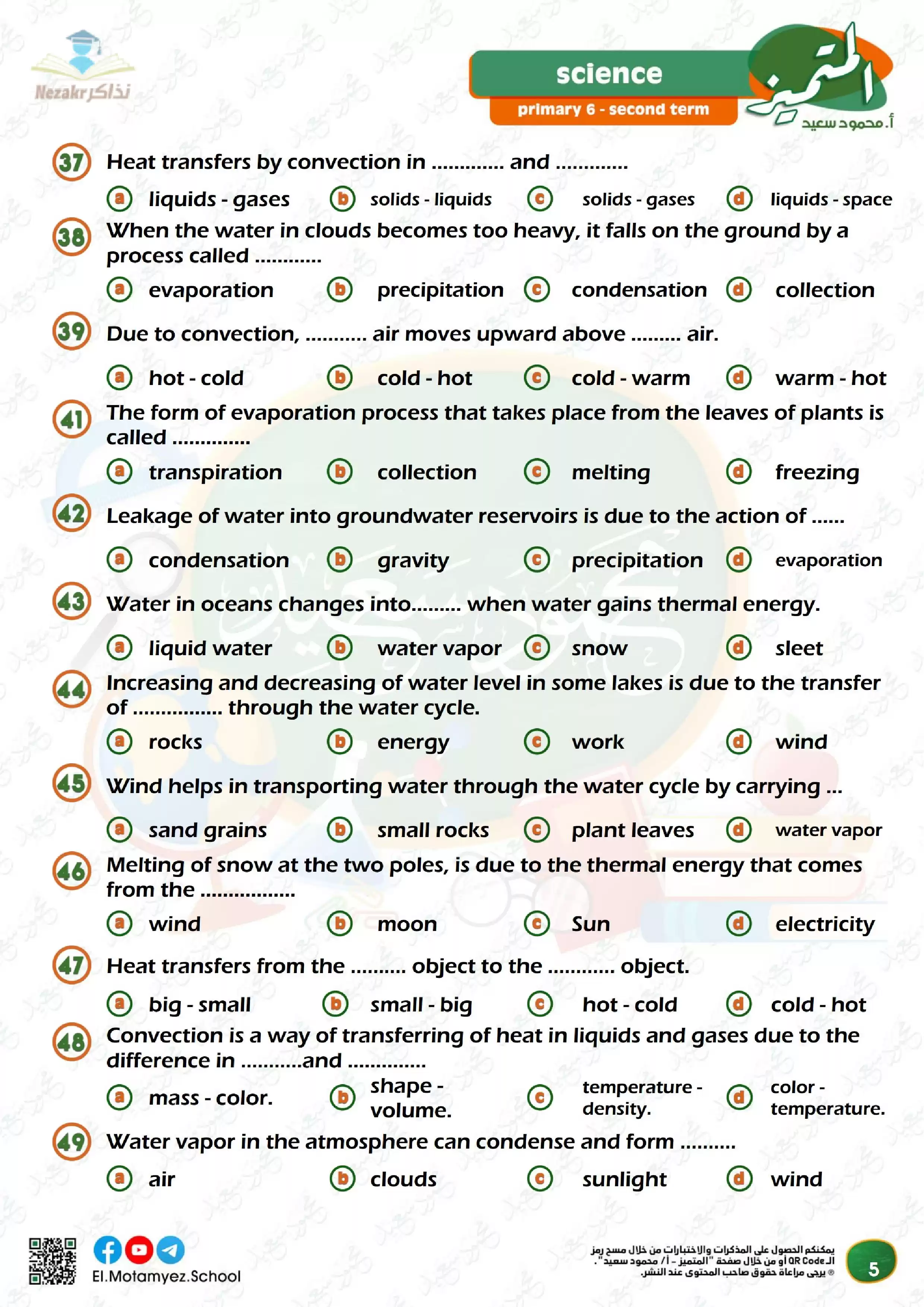 صفحة 5 من 35 صفحة من ملف: مراجعة المتميز النهائية في مادة Science العلوم باللغة الإنجليزية للصف السادس الابتدائي الترم الثاني - Nezakr