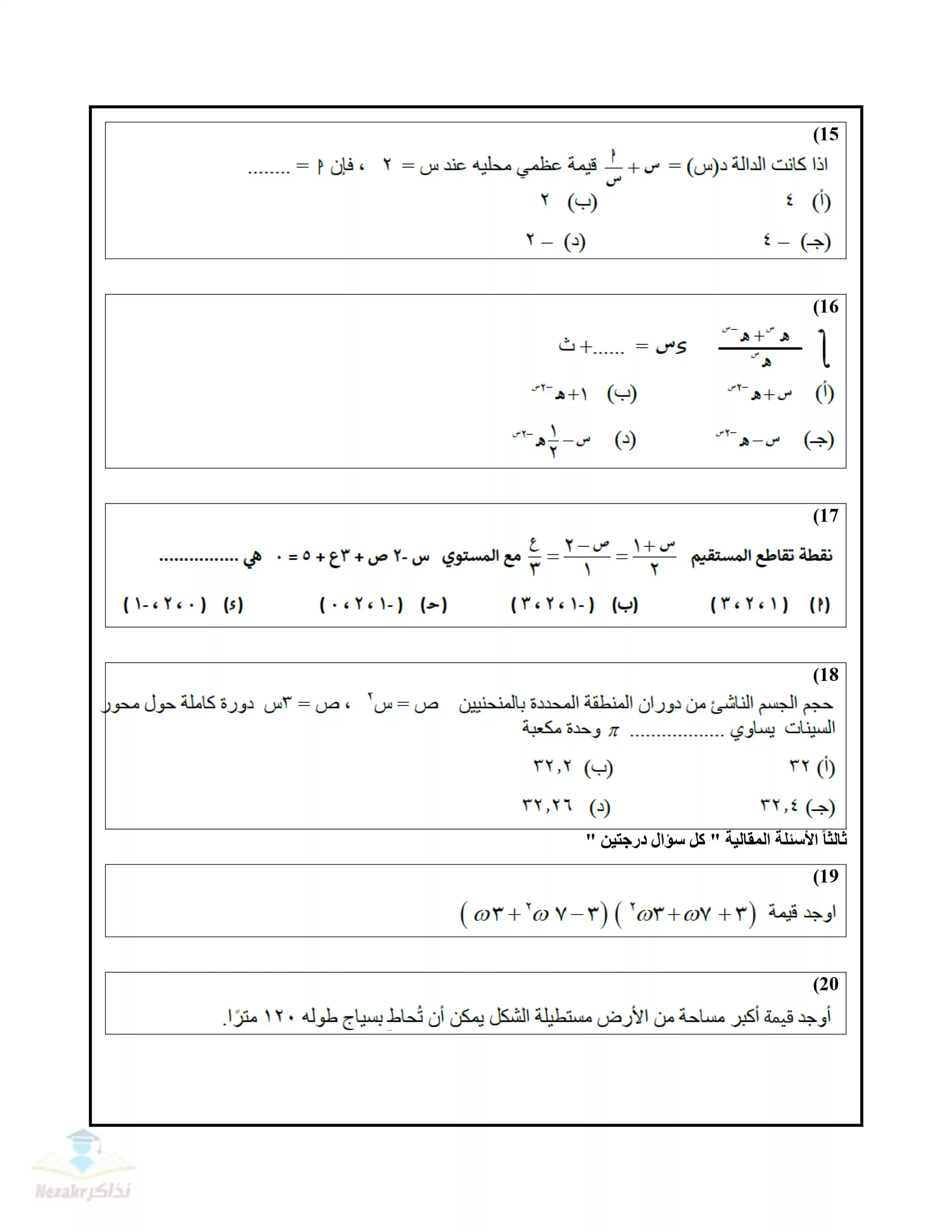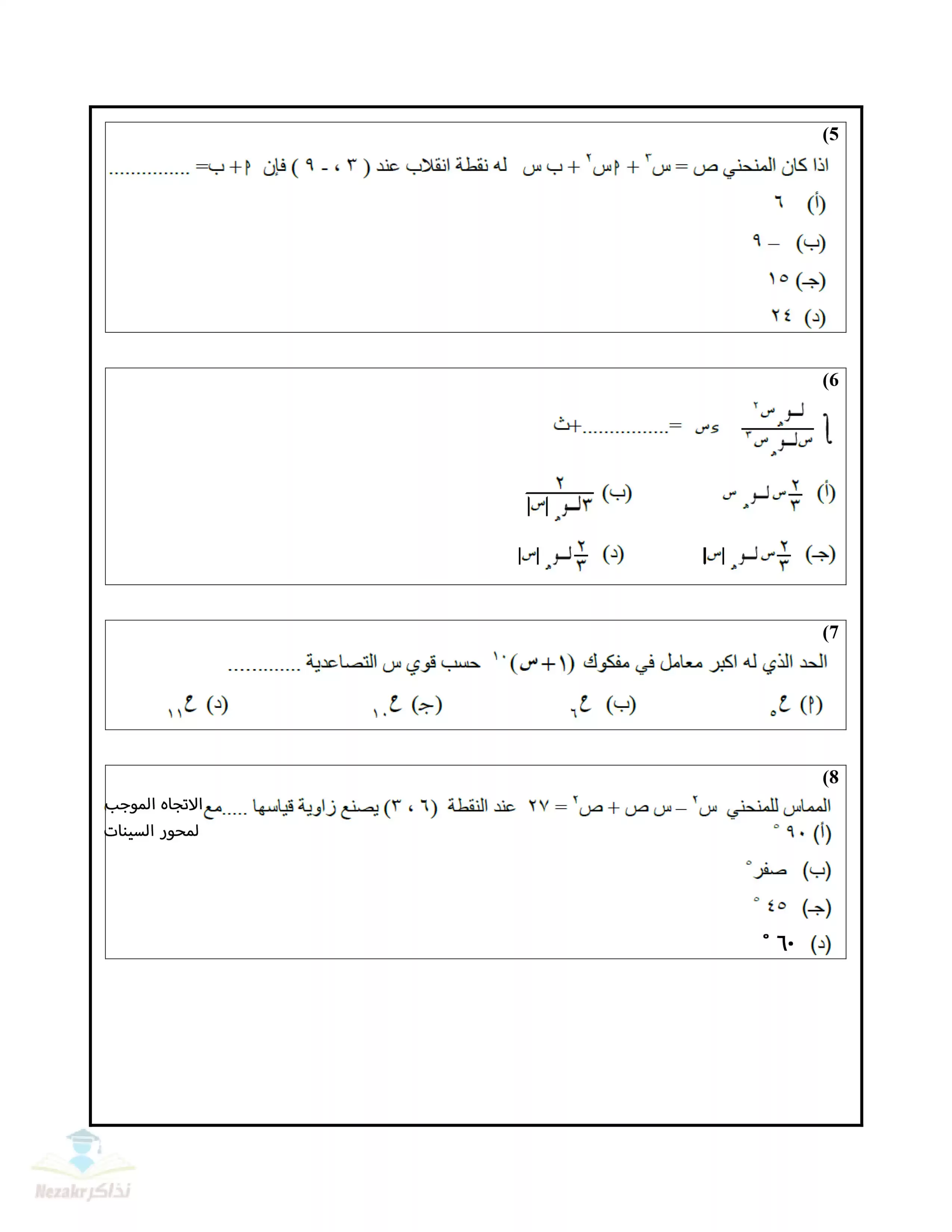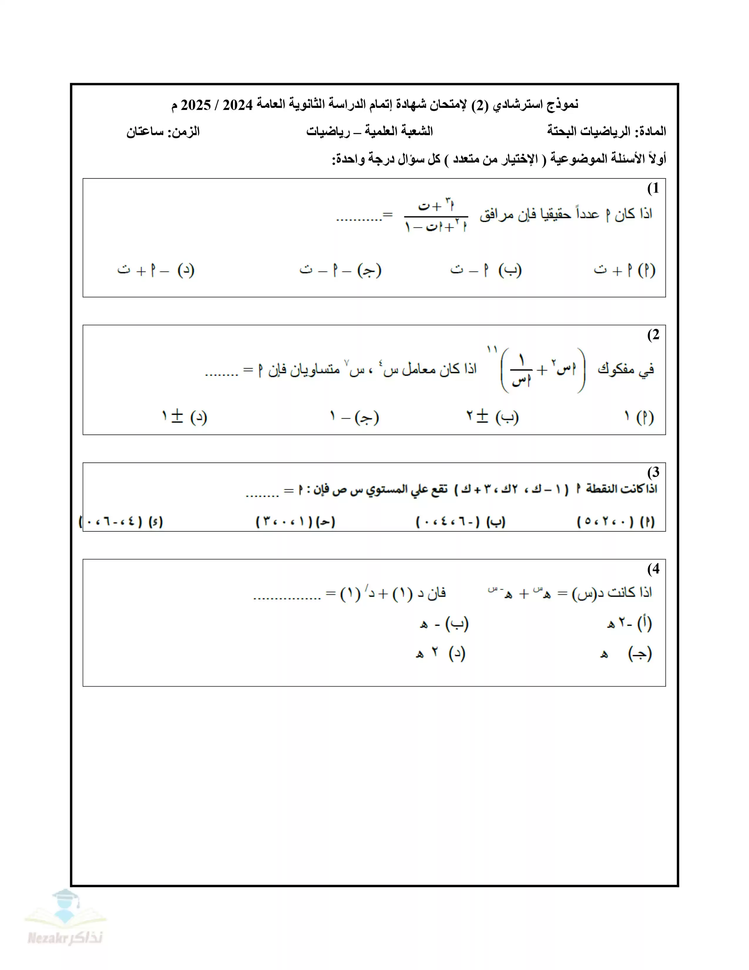 | بيانات الملف: (تجميع نماذج امتحانات الوزارة الاسترشادية في الرياضيات البحتة للثانوية العامة ٢٠٢٥ (12 نموذج) - Nezakr) | |