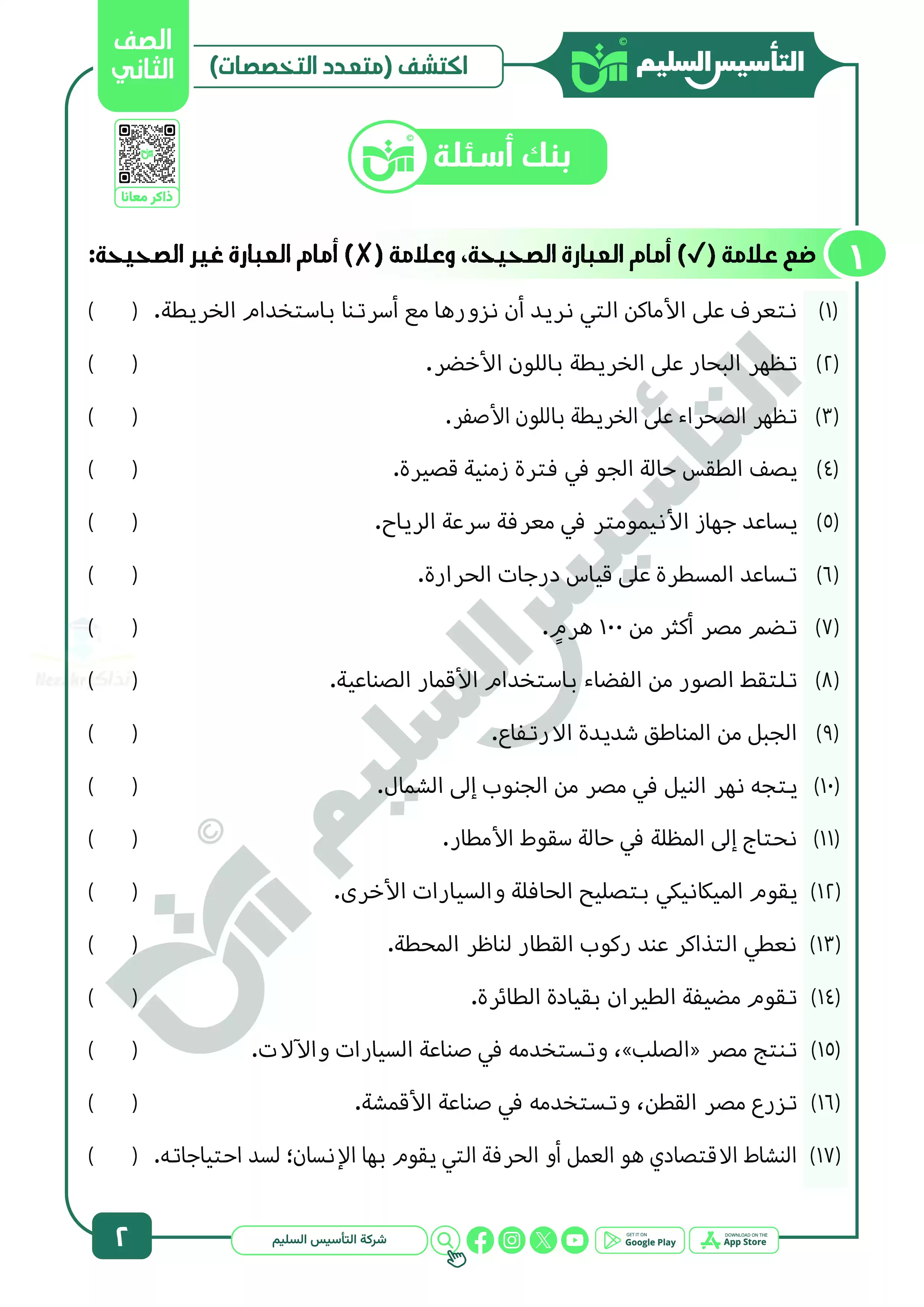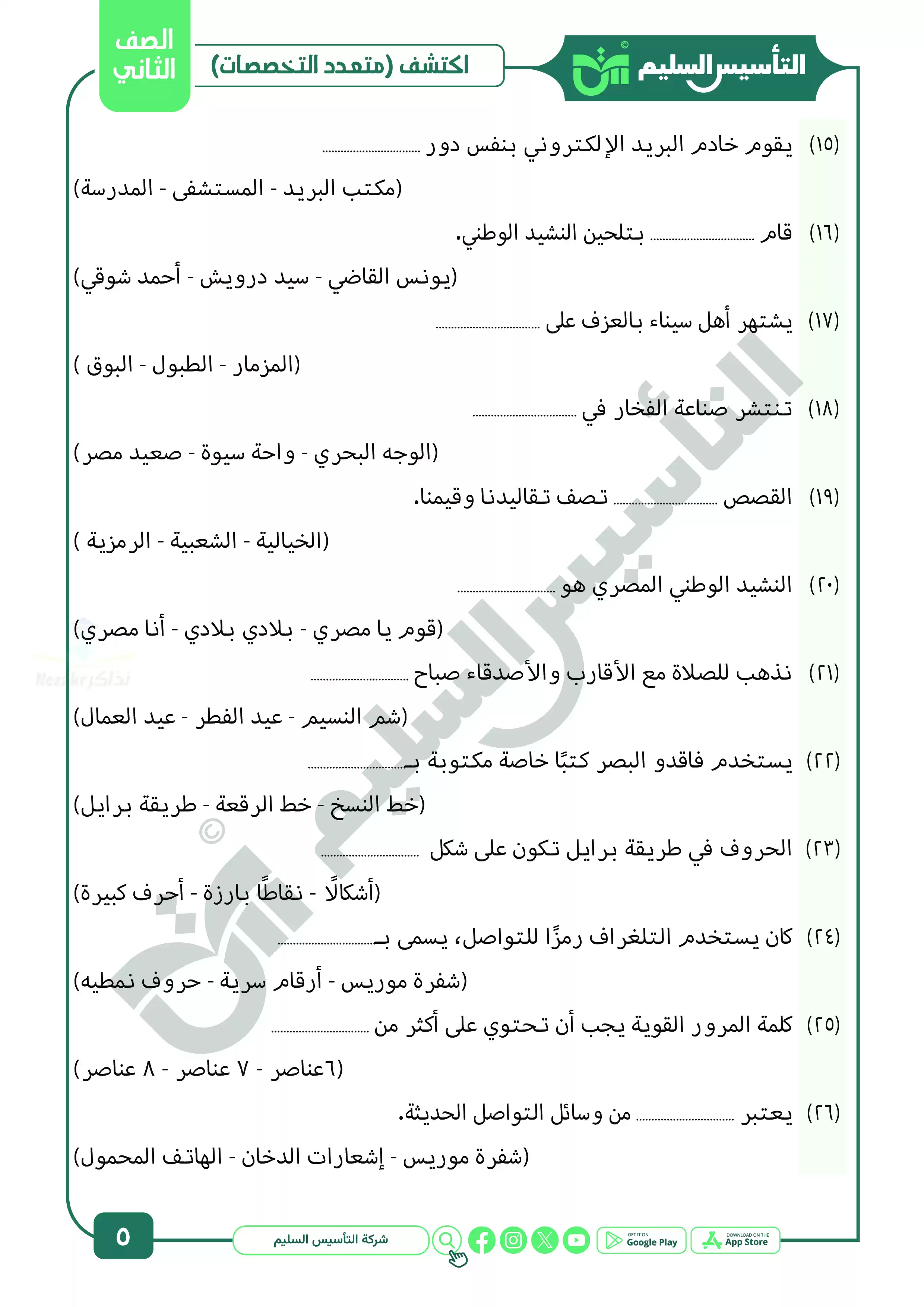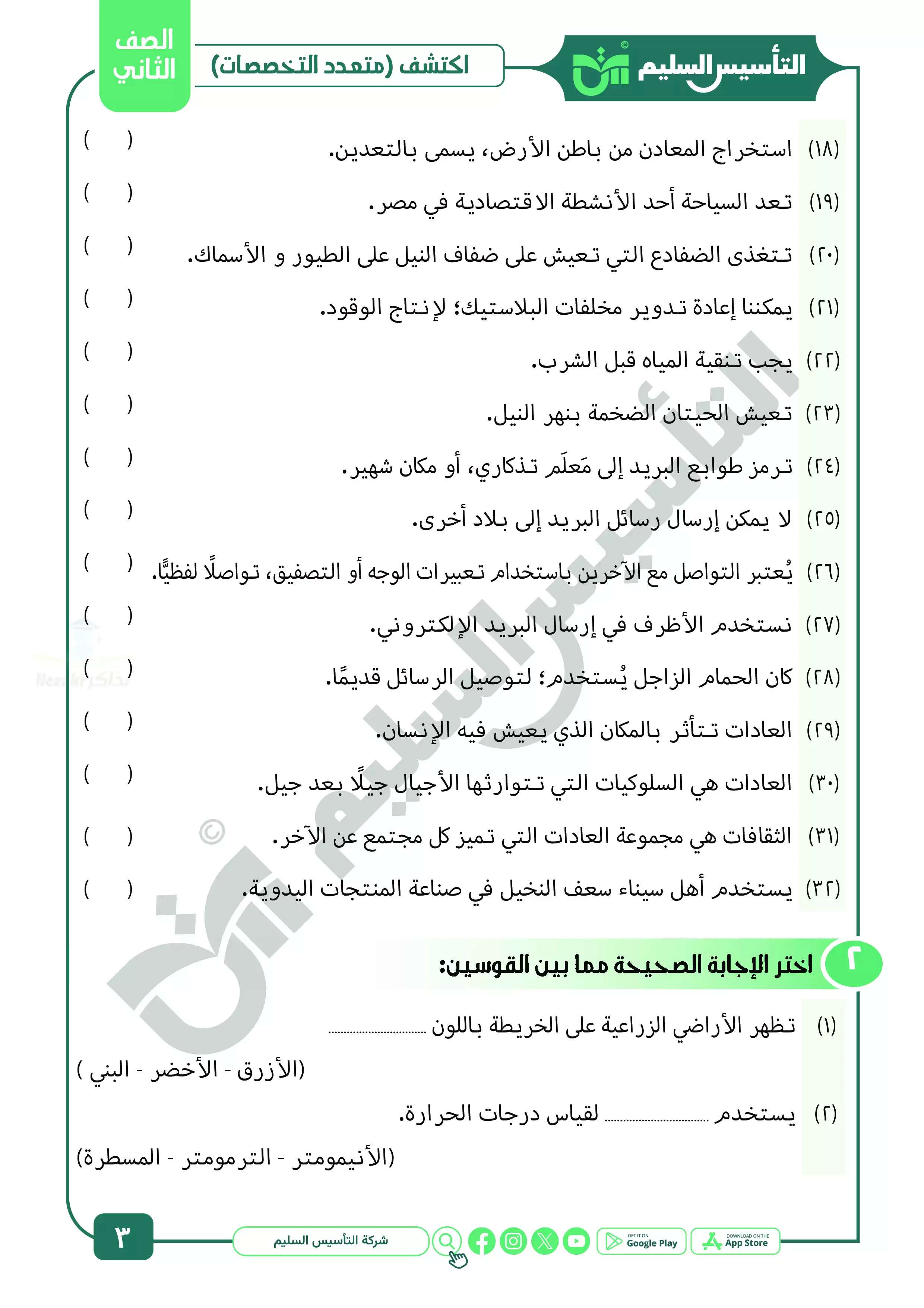 • بنك أسئلة التأسيس السليم على مقرر اكتشف لثانية ابتدائي الترم الثاني
