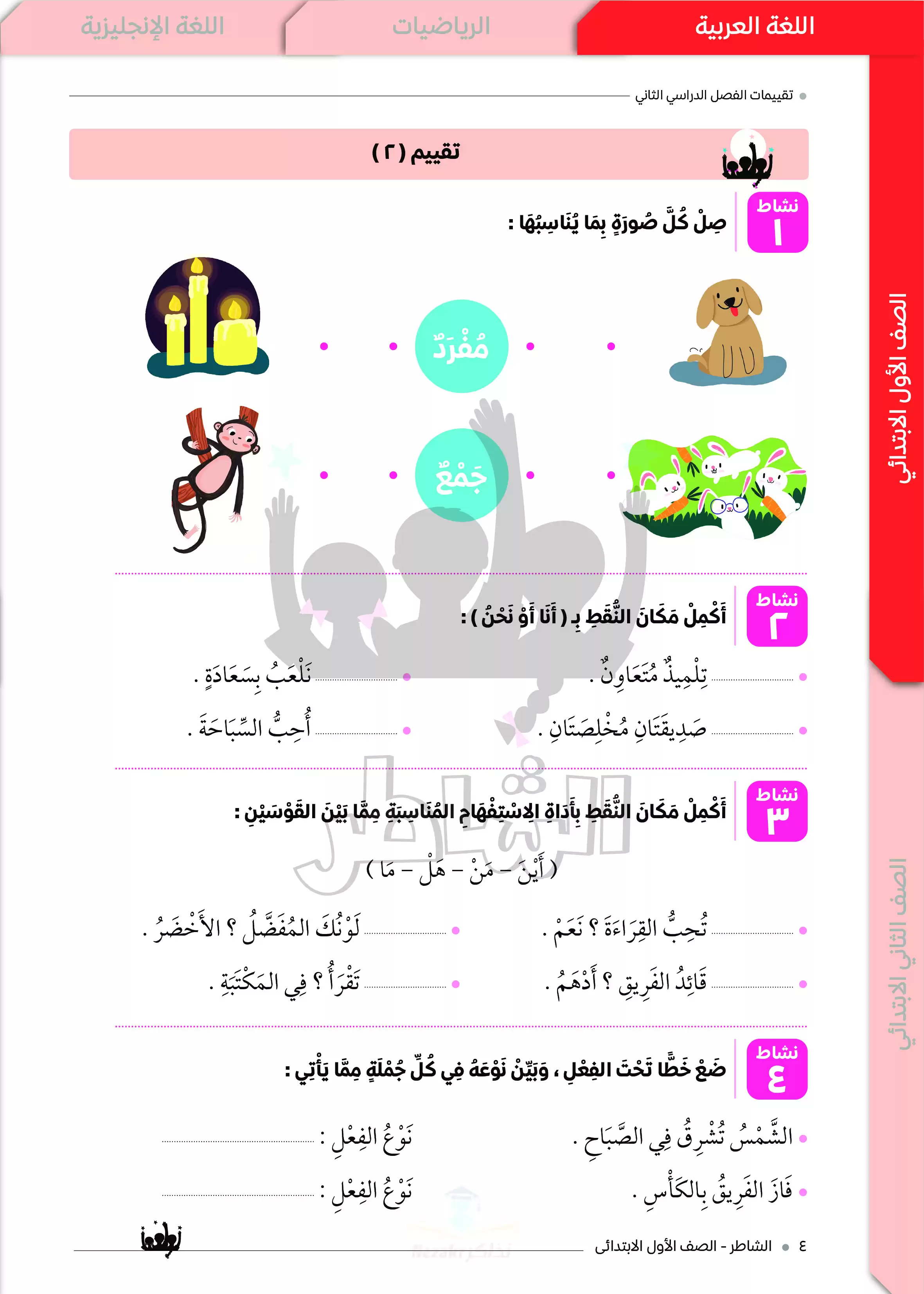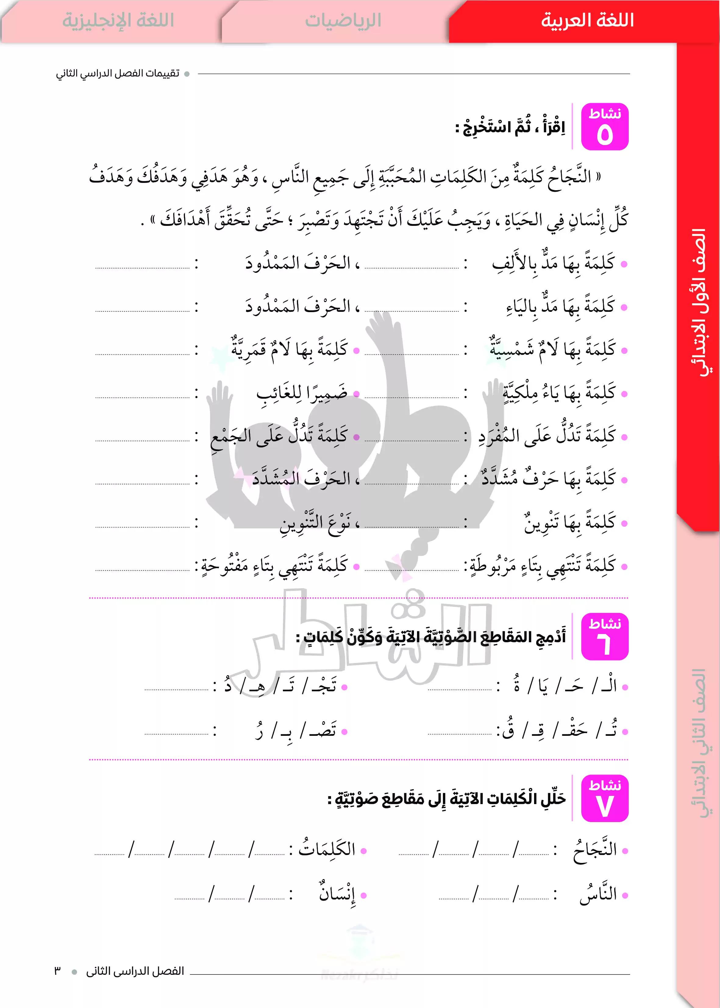 • تقييمات العربي للصف الأول الابتدائي الترم الثاني من كتاب الشاطر