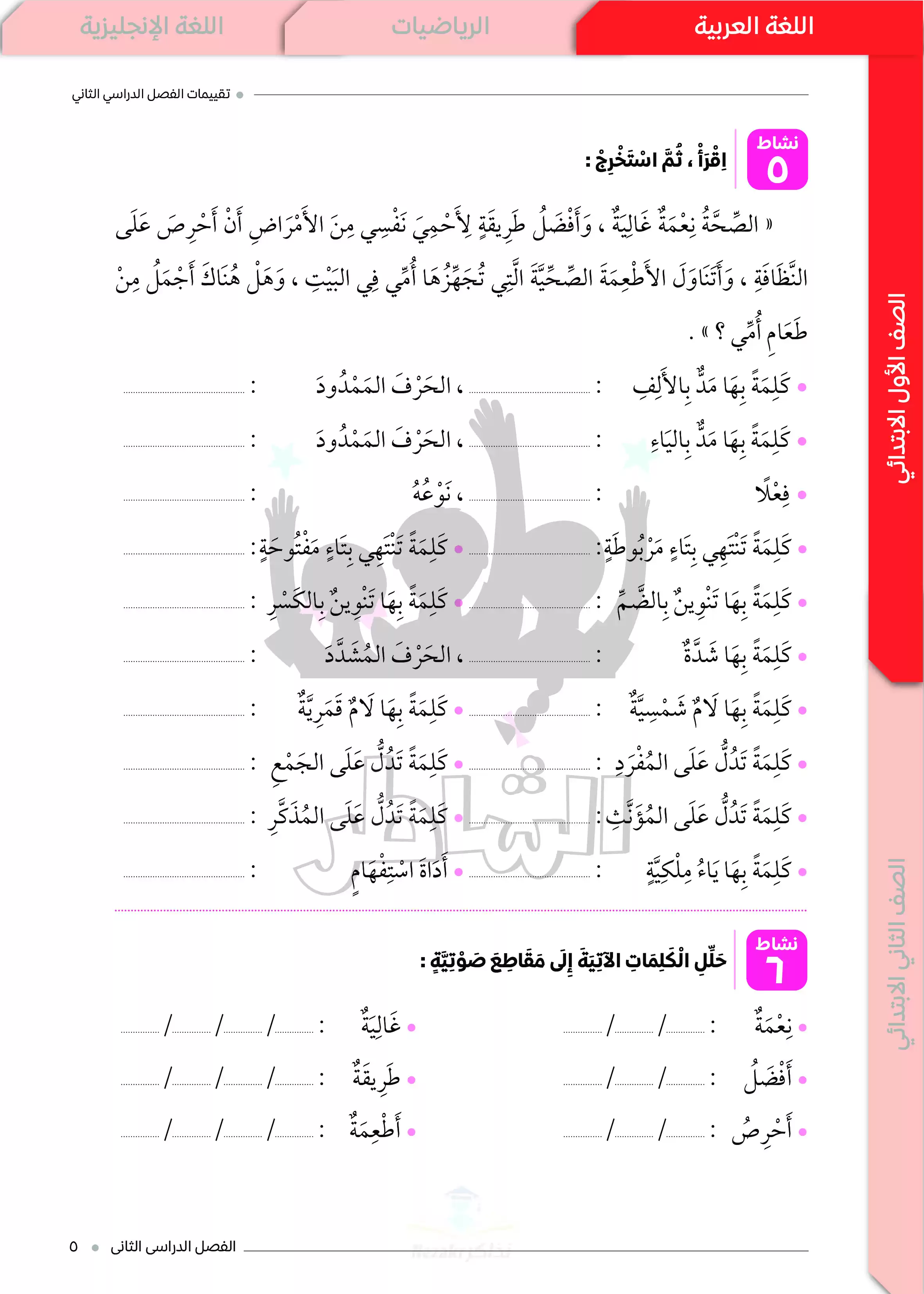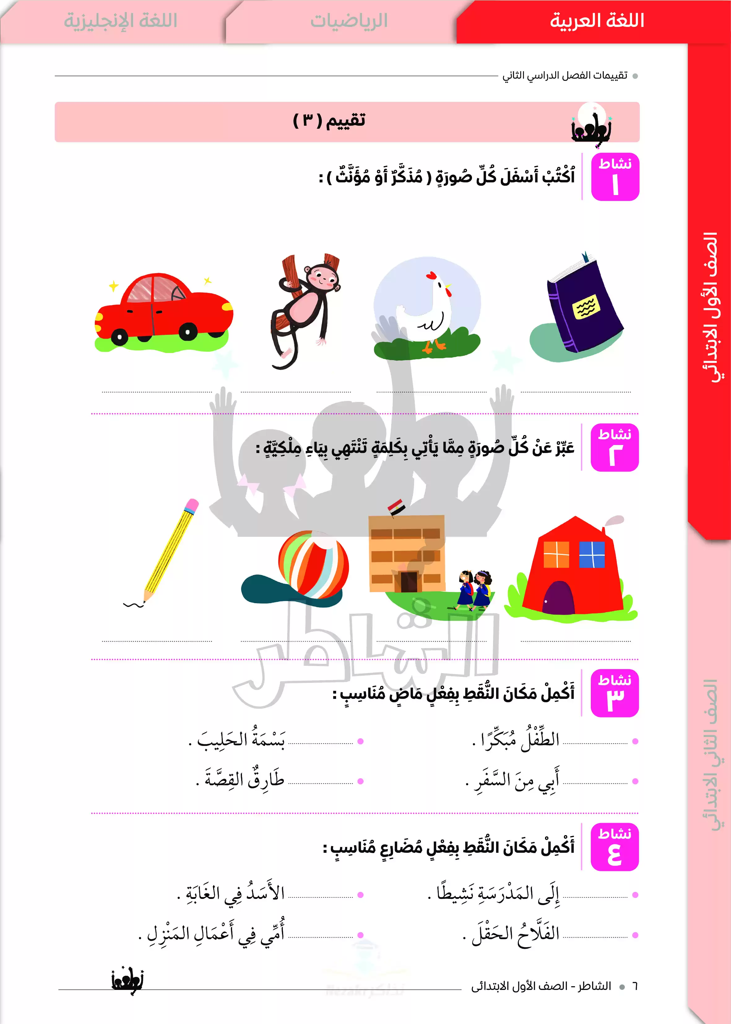 الصف الأول الإبتدائي > اللغة العربية > تقييمات الشاطر في اللغة العربية للصف الأول الابتدائي الترم الثاني 2025 PDF بالاجابات