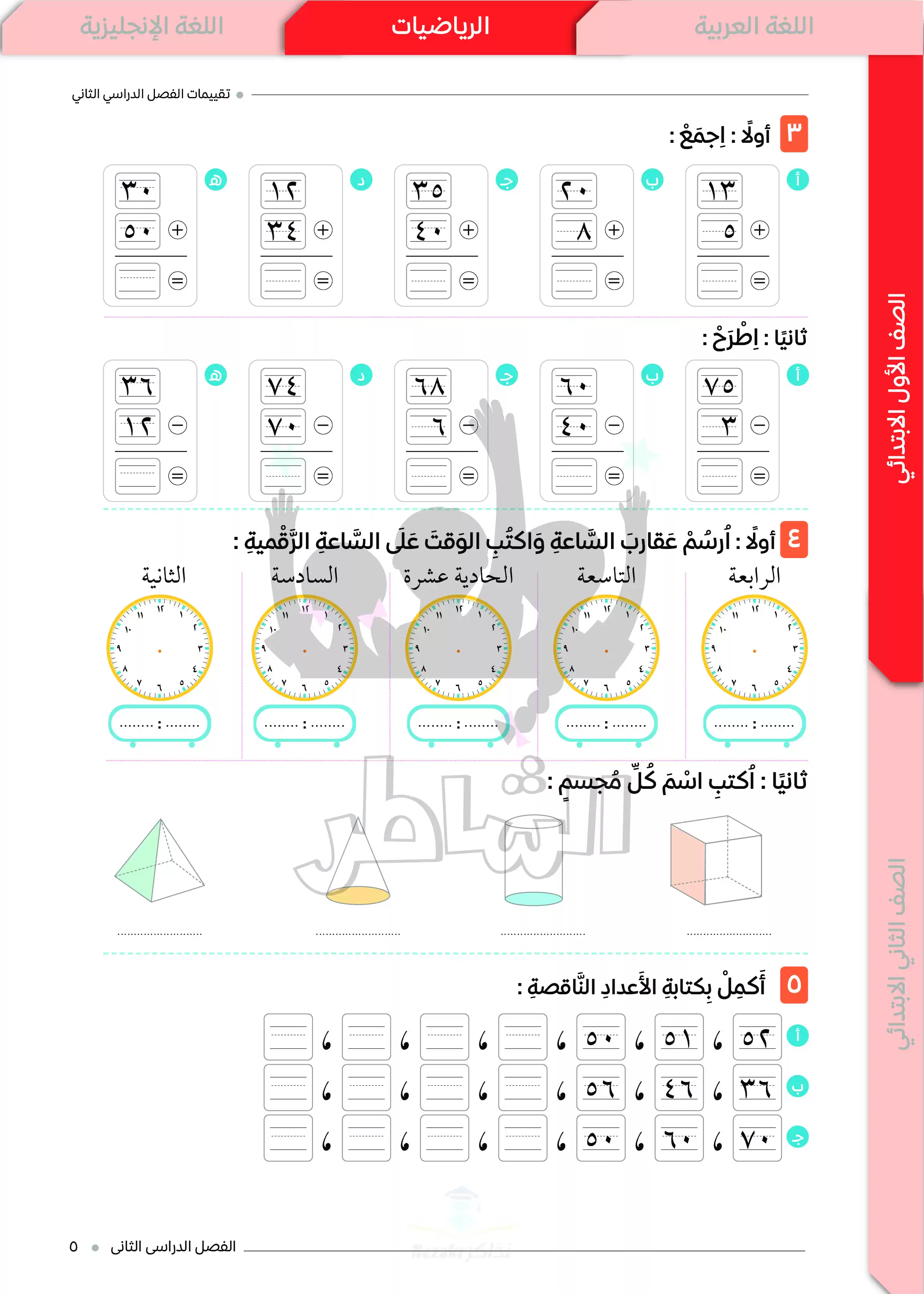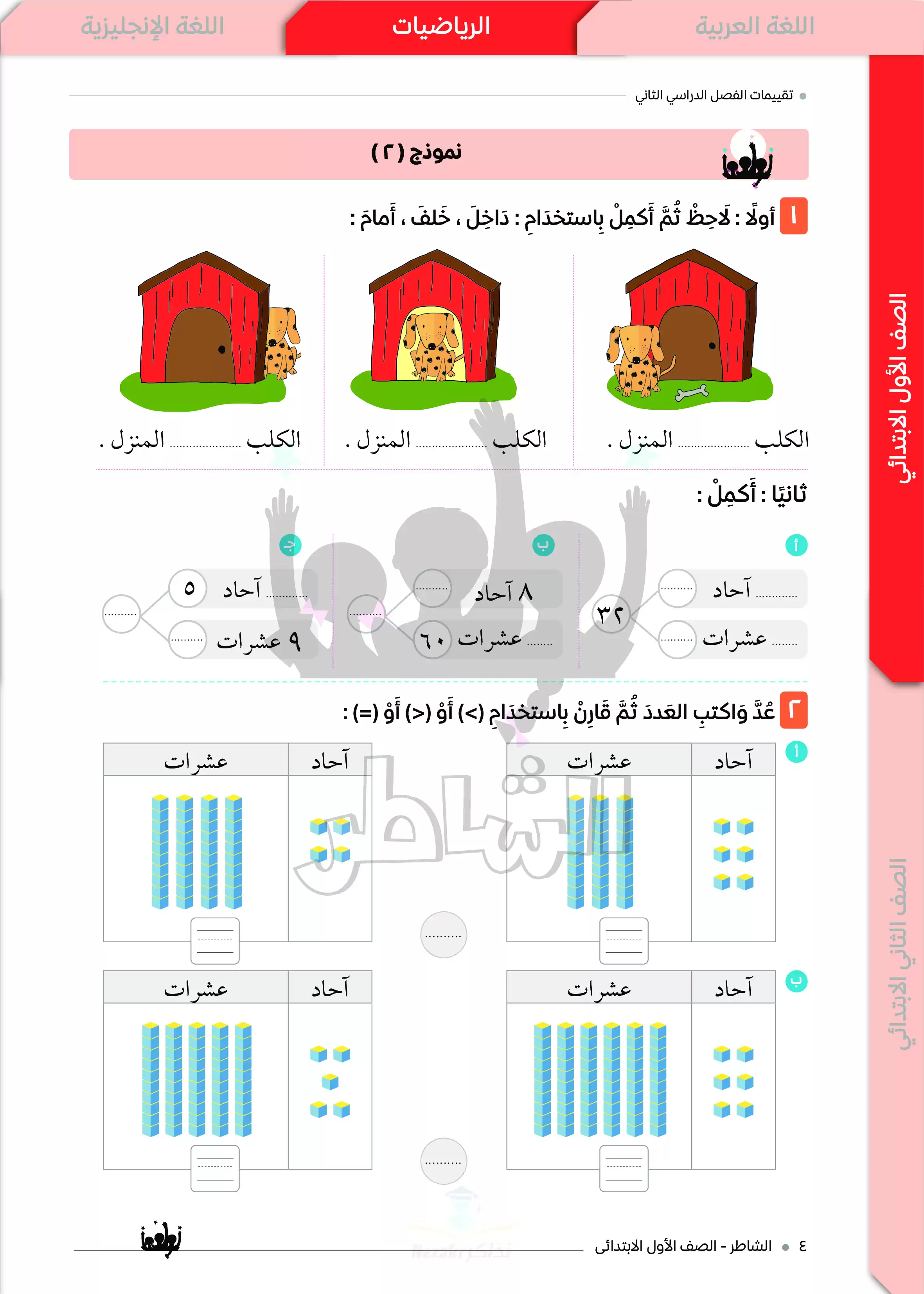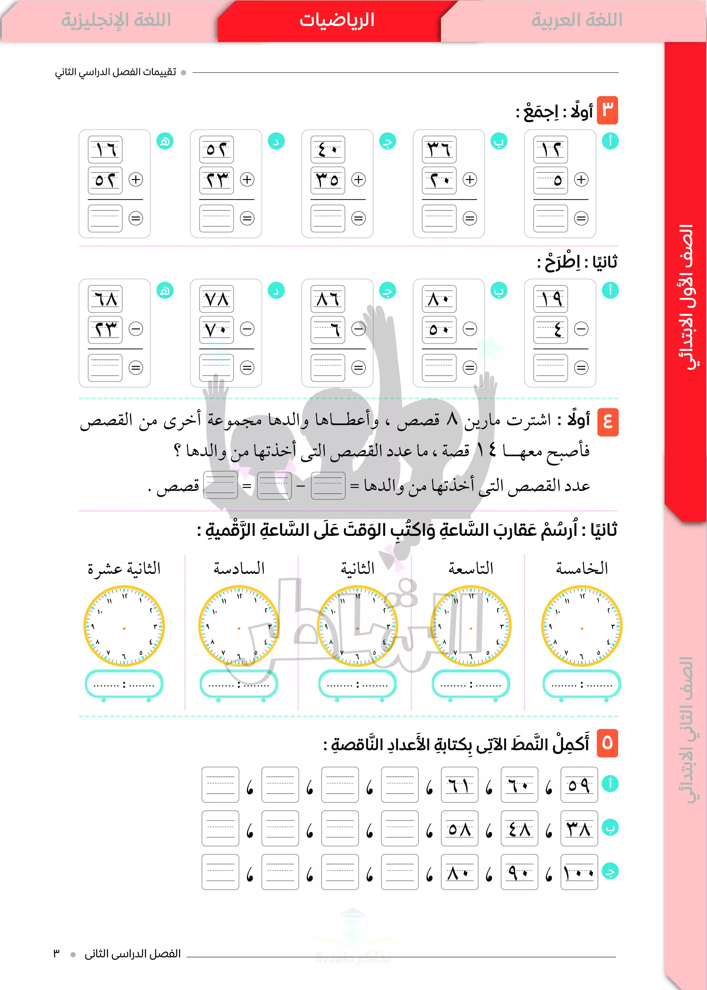 • المراجعة النهائية في الحساب الفصل الدراسي الثاني لأولى ابتدائي من كتاب الشاطر