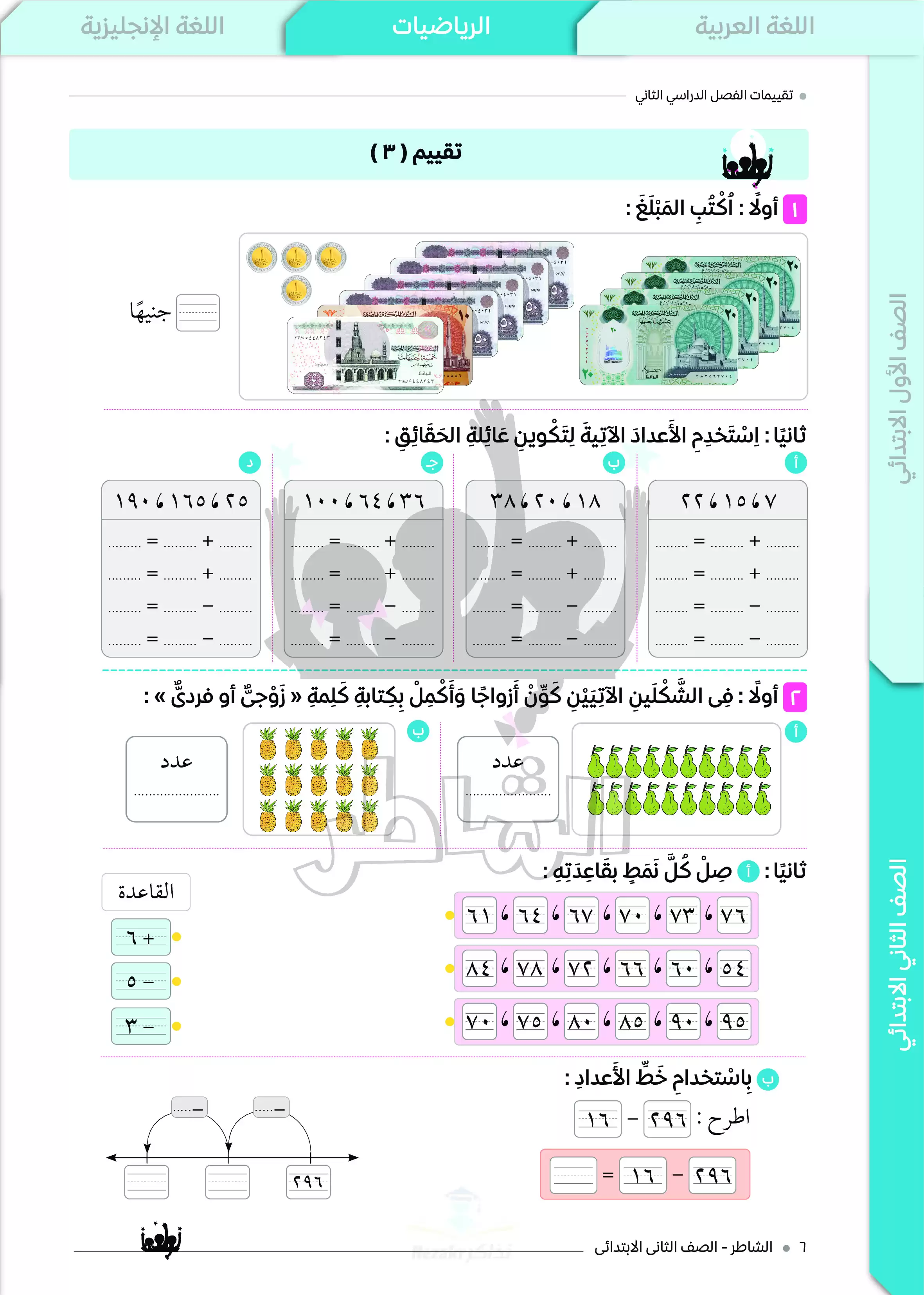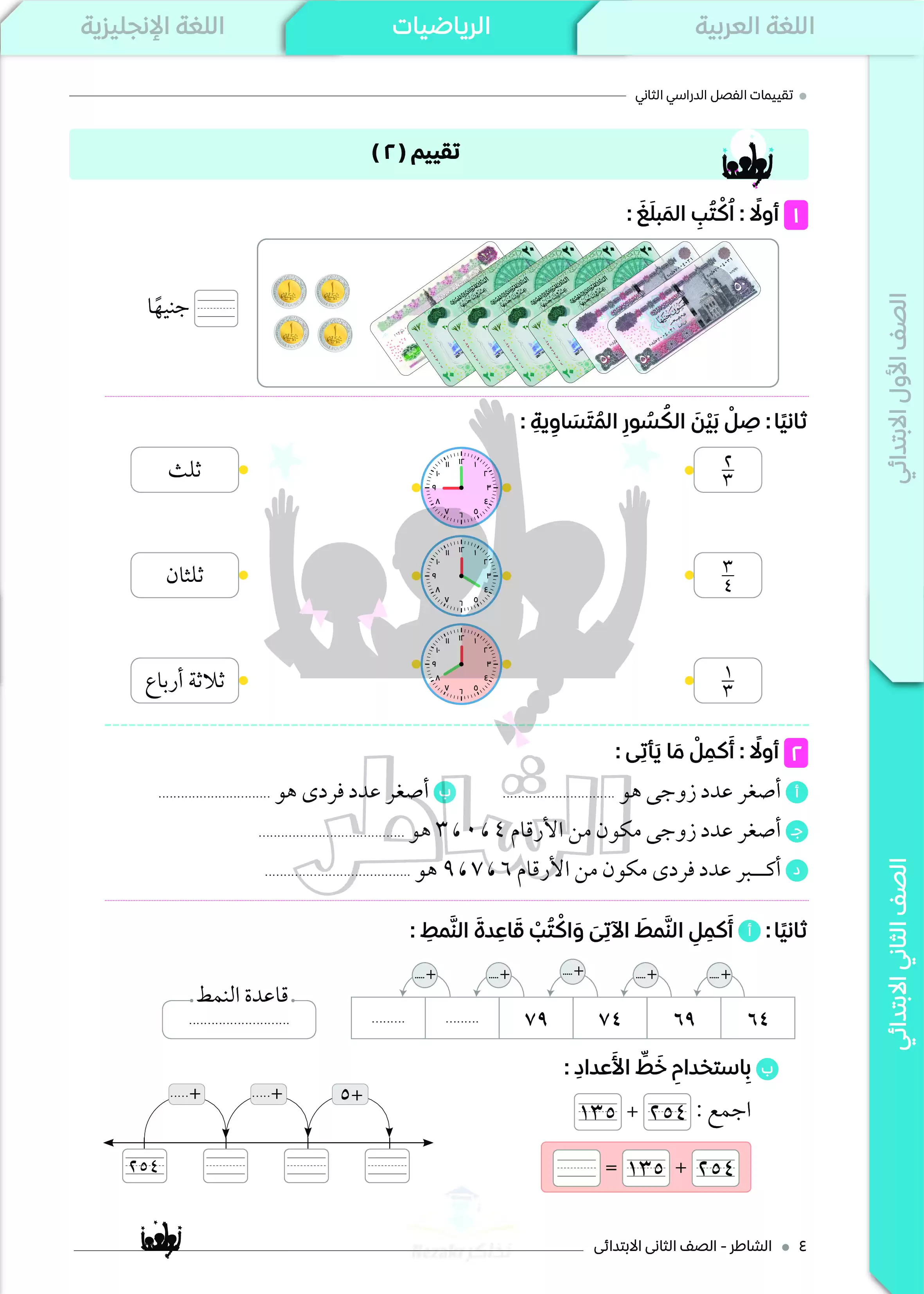 • تقييمات الرياضيات للصف الثاني الابتدائي الترم الثاني من كتاب الشاطر