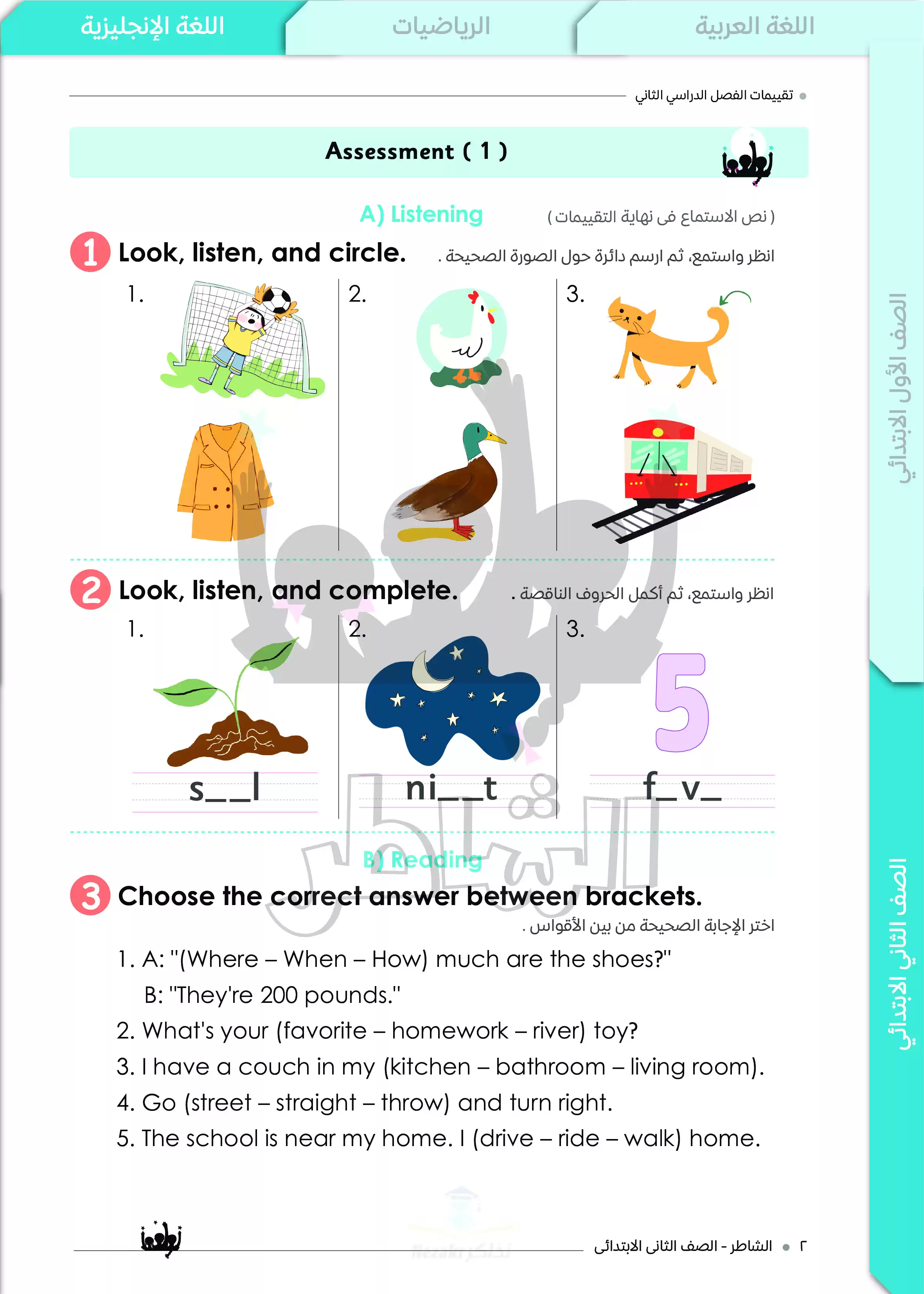 الصف الثاني الإبتدائي > اللغة الإنجليزية > تقييمات الشاطر في اللغة الإنجليزية للصف الثاني الابتدائي الترم الثاني 2025 PDF بالاجابات
