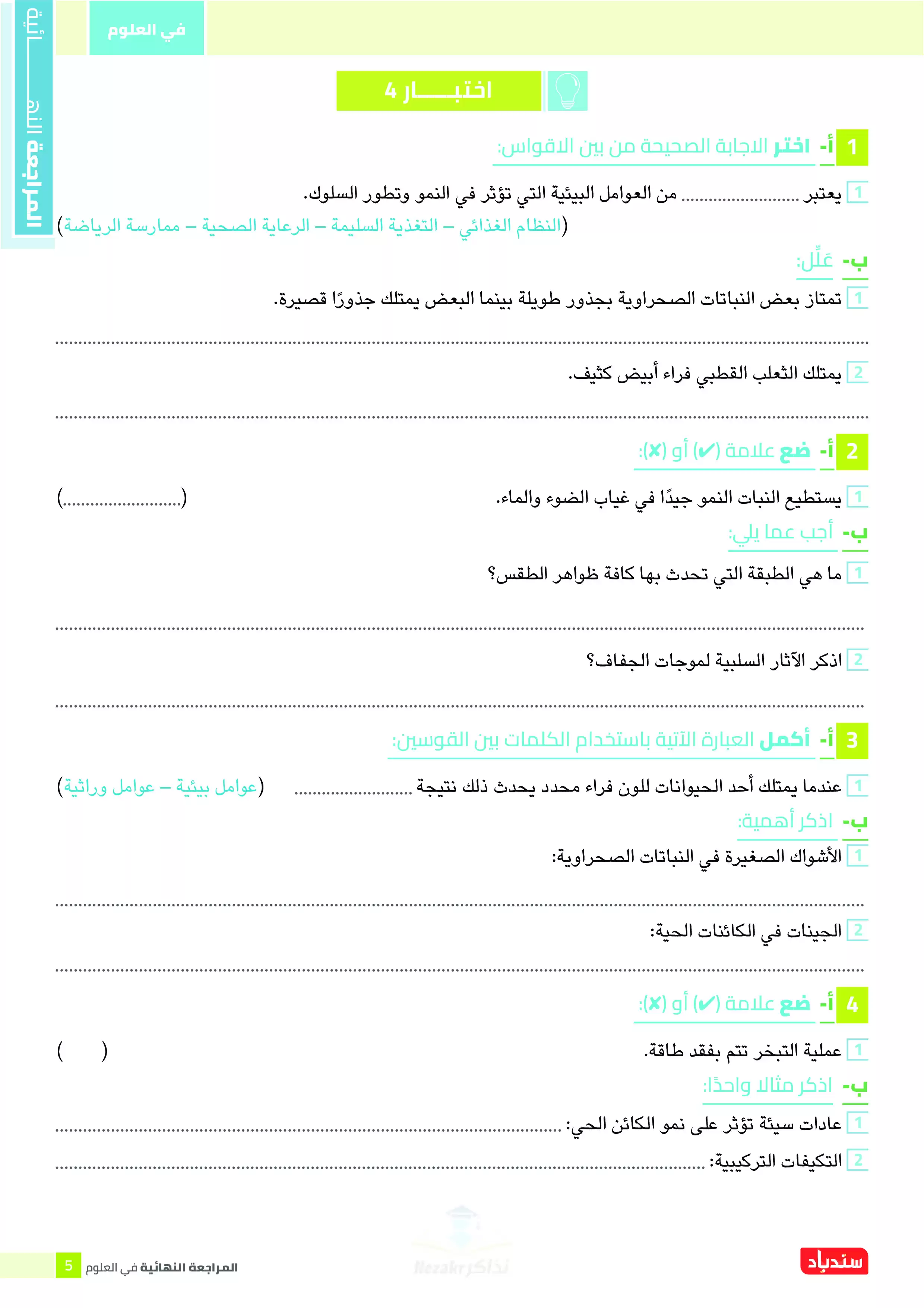تُعد مراجعة السندباد النهائية في العلوم للصف السادس الابتدائي الترم الثاني من أفضل الوسائل التحضيرية للامتحانات، حيث تقدم 6 اختبارات استرشادية شاملة تغطي جميع أجزاء منهج العلوم.