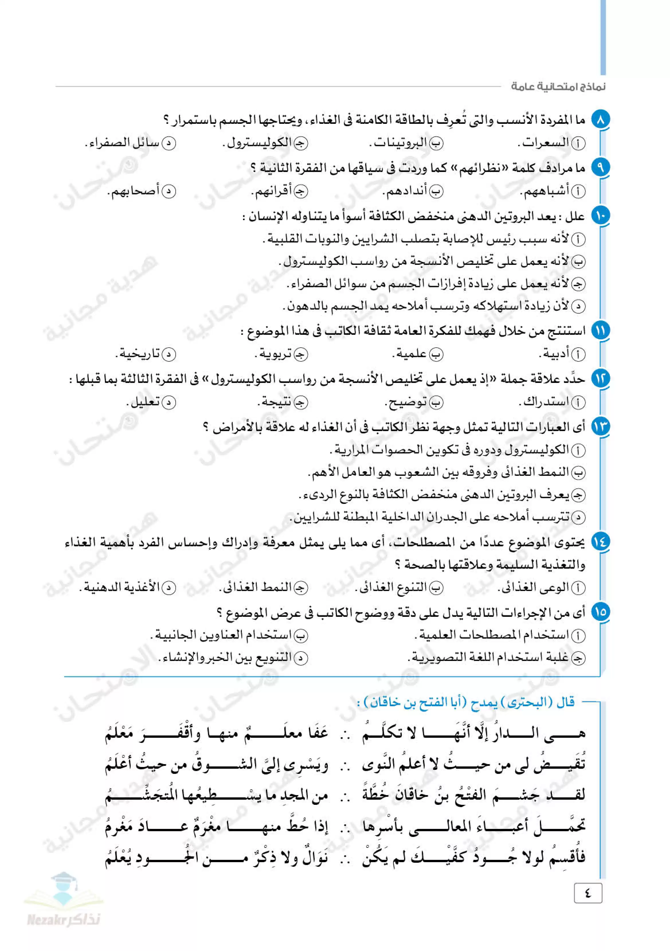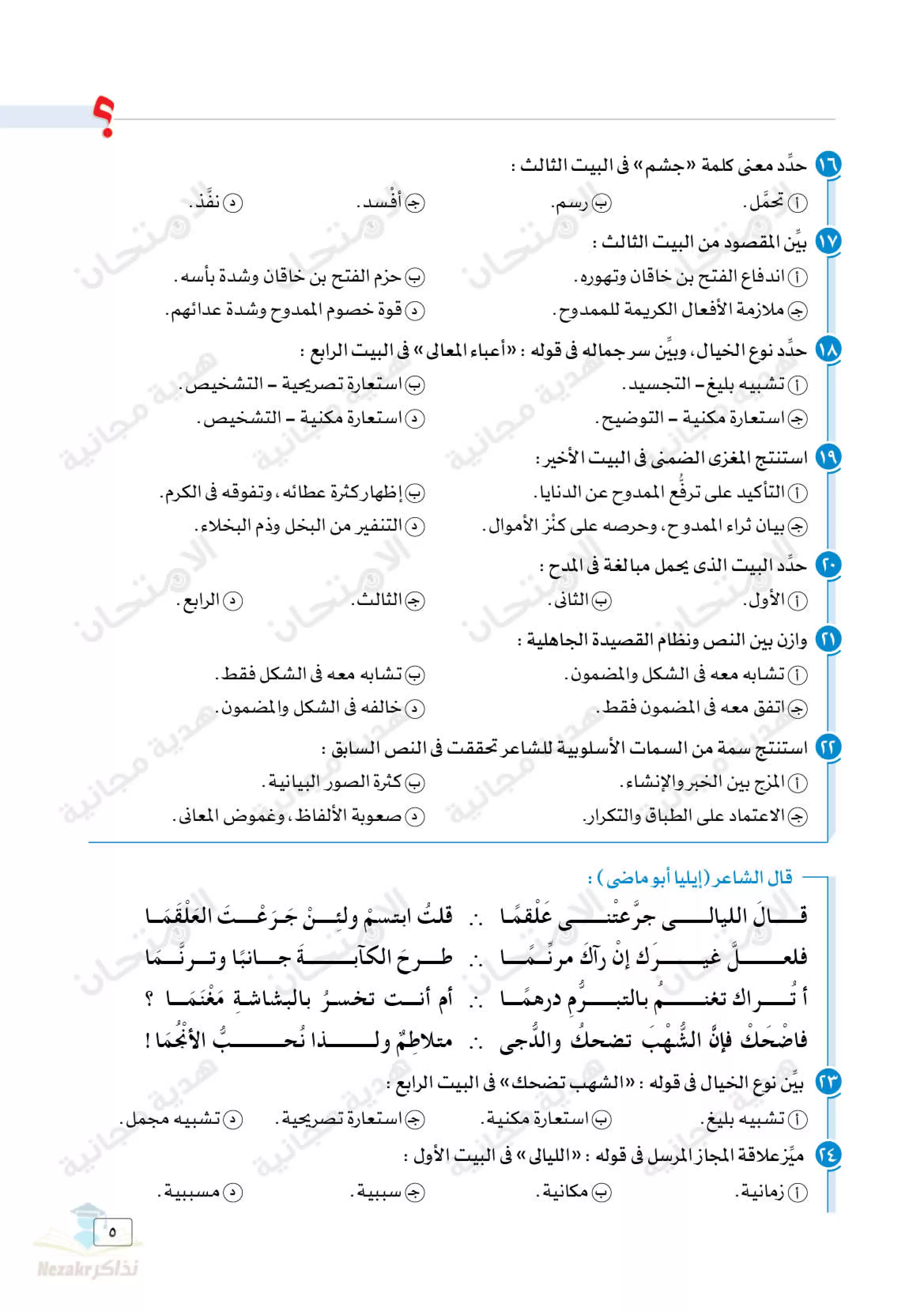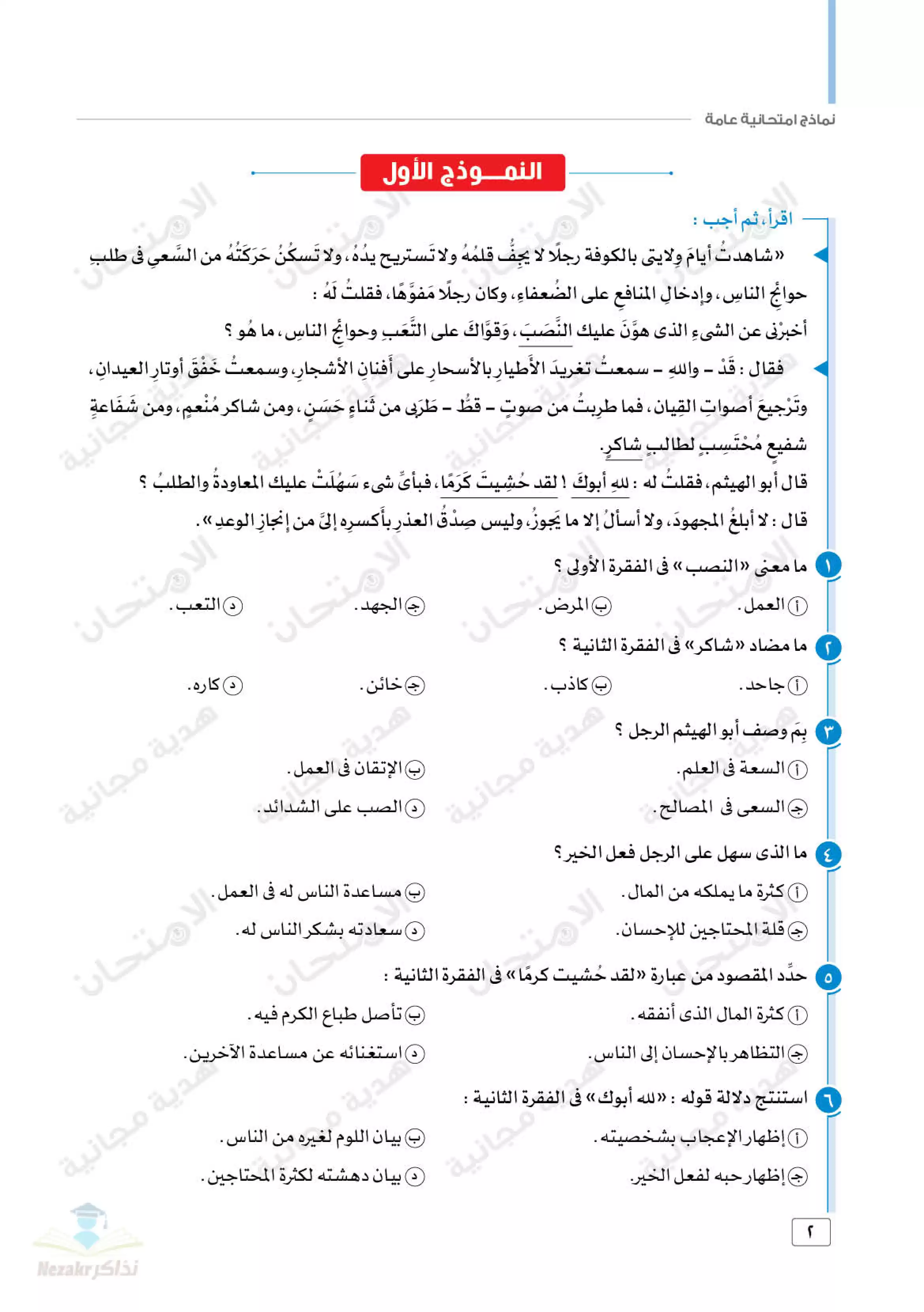 | بيانات الملف: (اختبارات كتاب الامتحان الاسترشادية في اللغة العربية للصف الأول الثانوي الترم الثاني - Nezakr) | |
