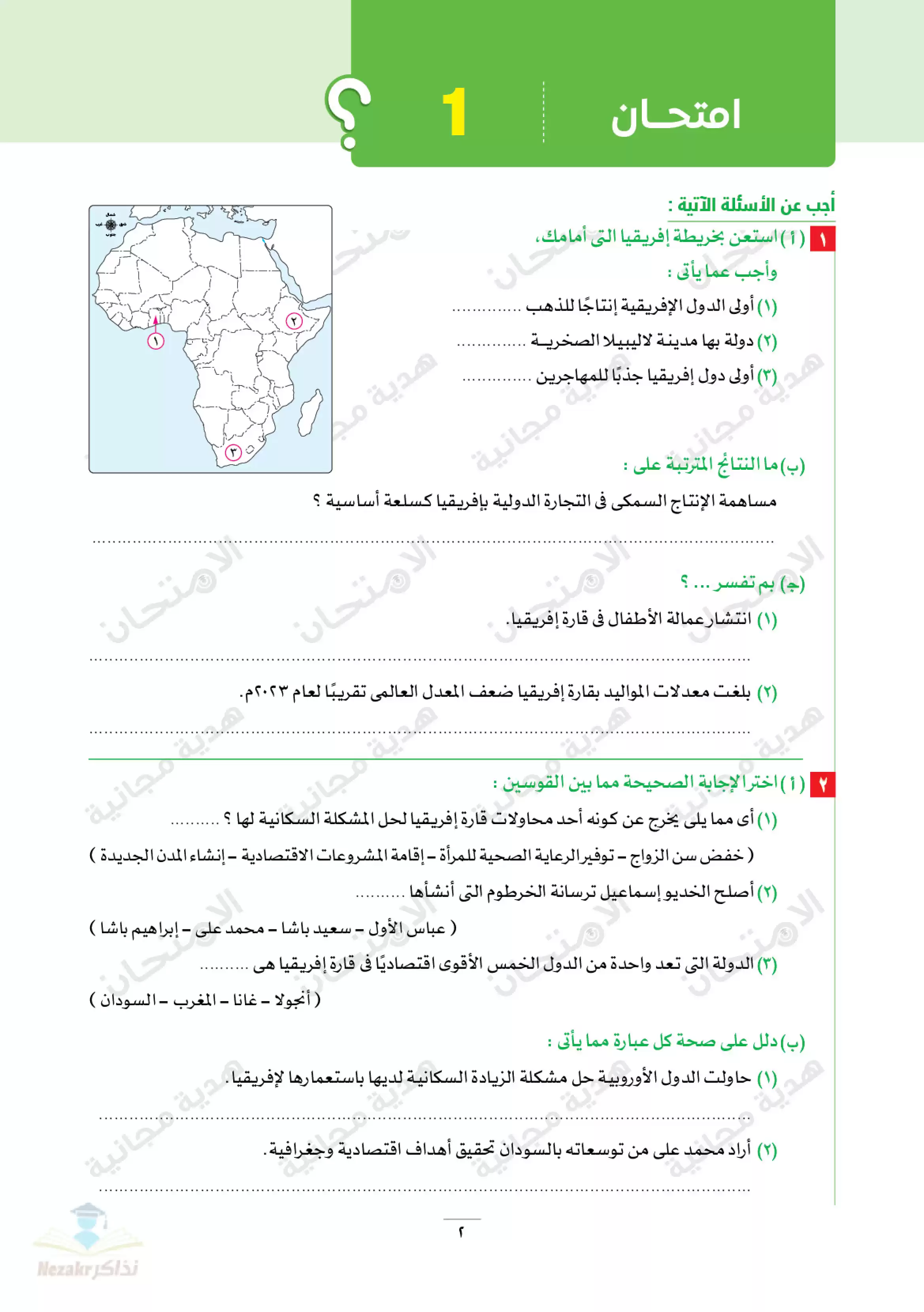 صفحة 2 من 29 صفحة من ملف: اختبارات كتاب الامتحان الاسترشادية في الدراسات الاجتماعية للصف الأول الإعدادي الترم الثاني - Nezakr