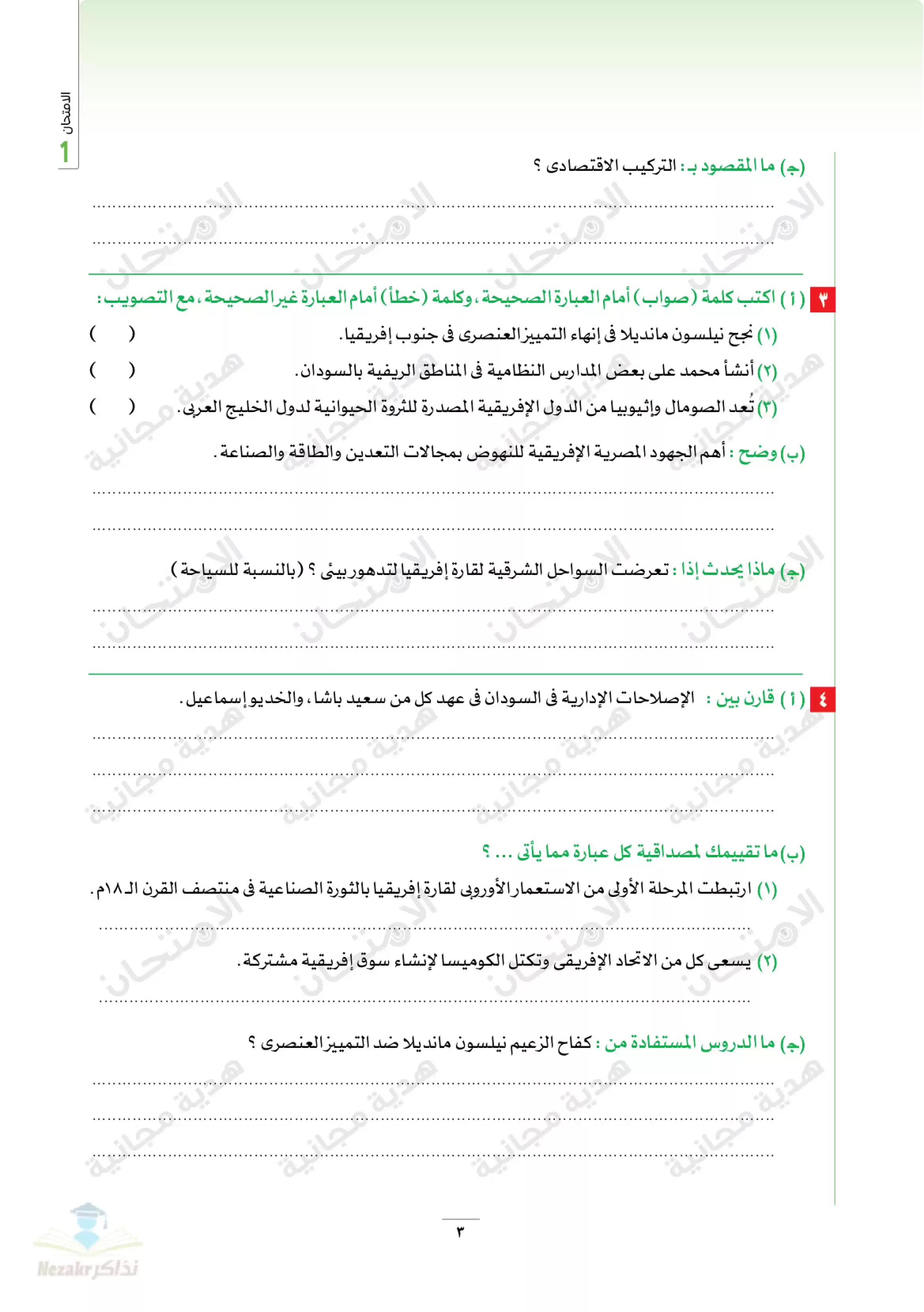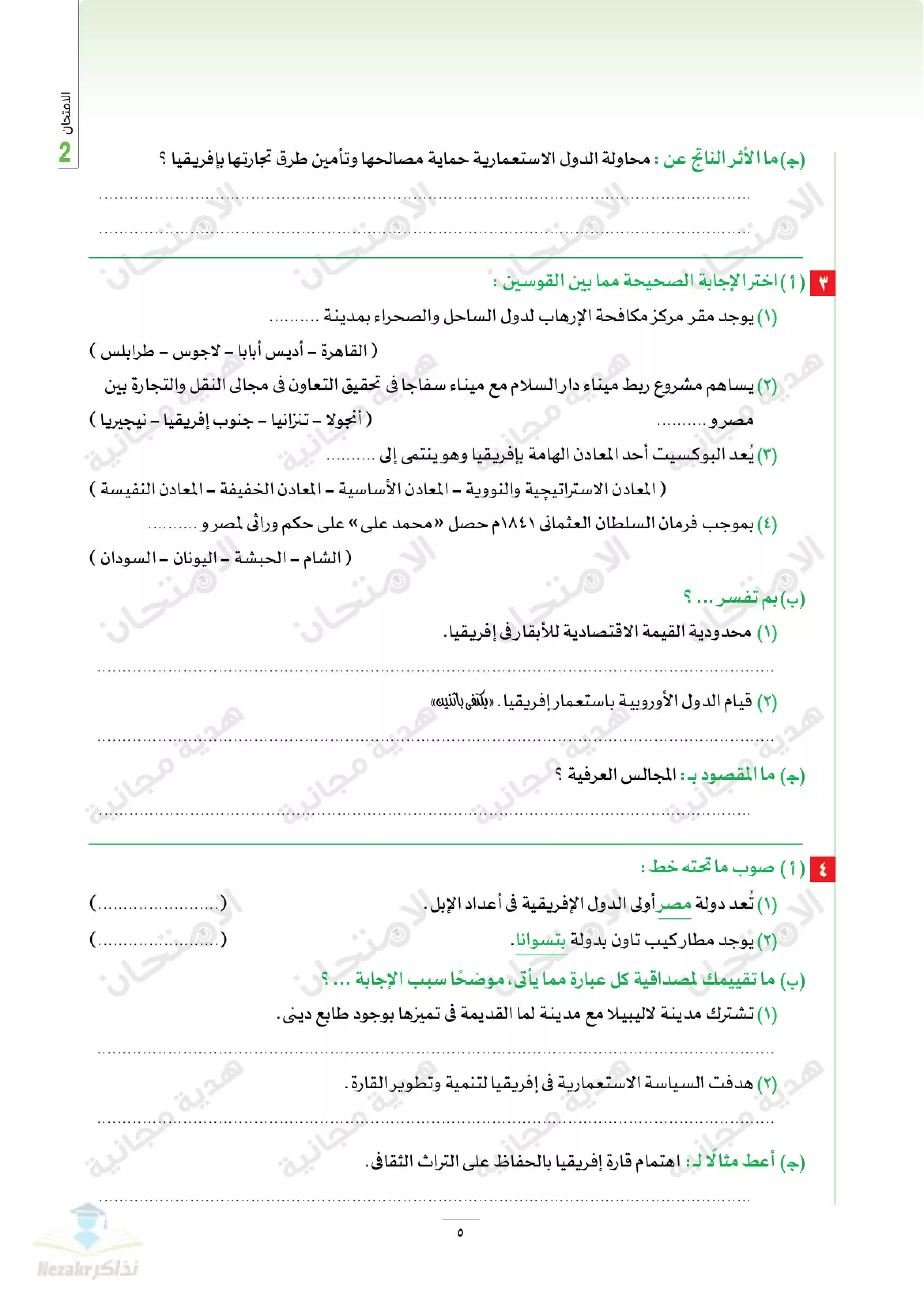 سكرين شوت من الملف: اختبارات كتاب الامتحان الاسترشادية في الدراسات الاجتماعية للصف الأول الإعدادي الترم الثاني - Nezakr