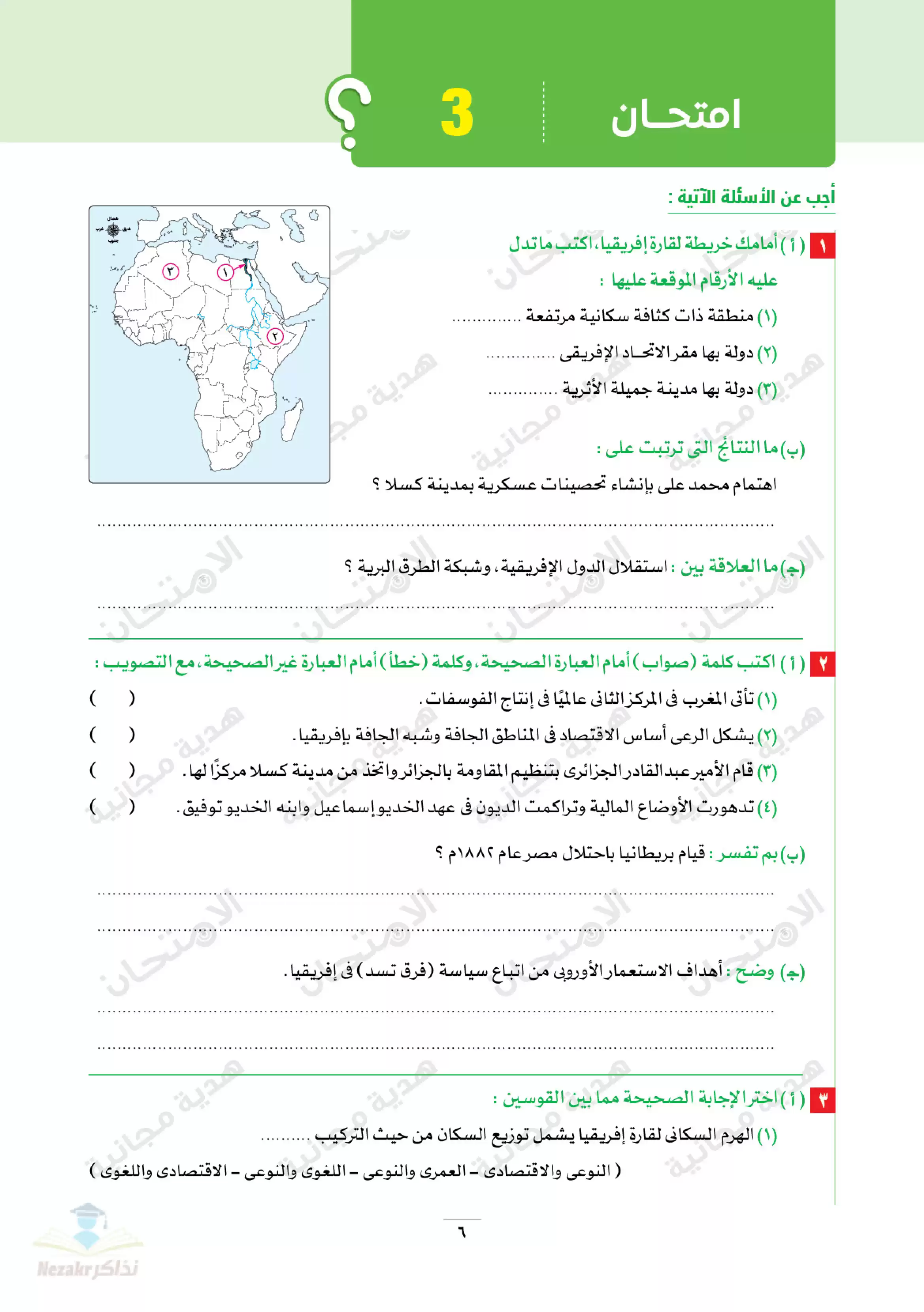 صفحة 6 من 29 صفحة من ملف: اختبارات كتاب الامتحان الاسترشادية في الدراسات الاجتماعية للصف الأول الإعدادي الترم الثاني - Nezakr
