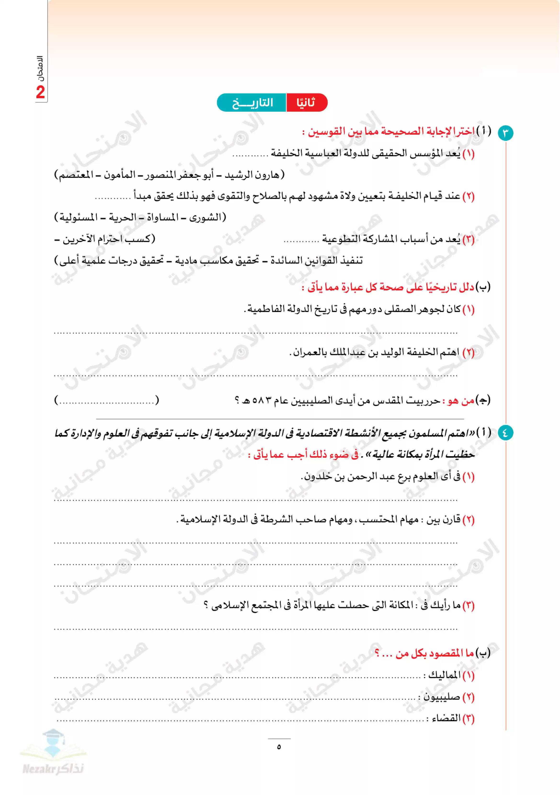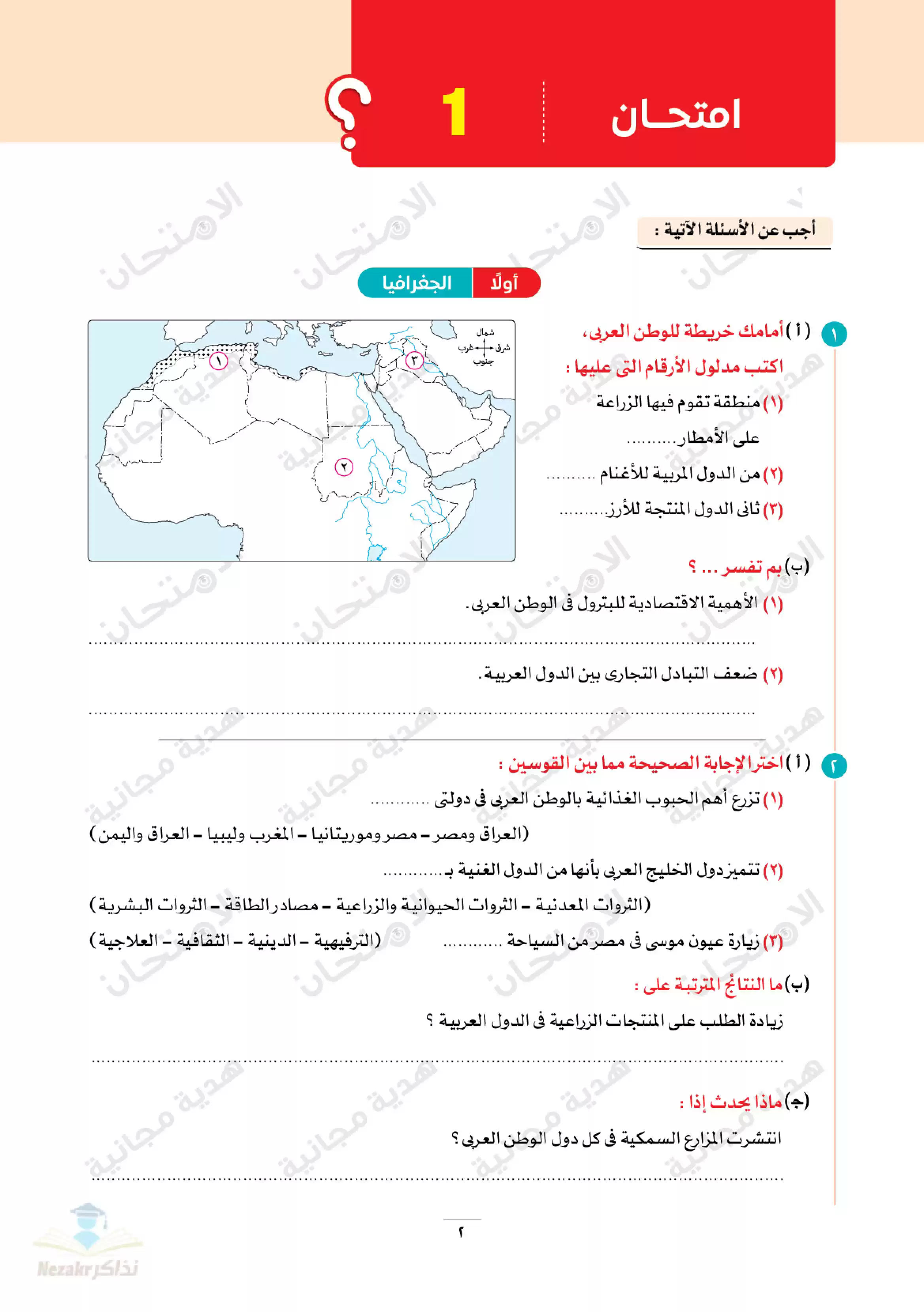 بيانات الملف: (اختبارات كتاب الامتحان الاسترشادية في الدراسات الاجتماعية للصف الثاني الإعدادي الترم الثاني - Nezakr)