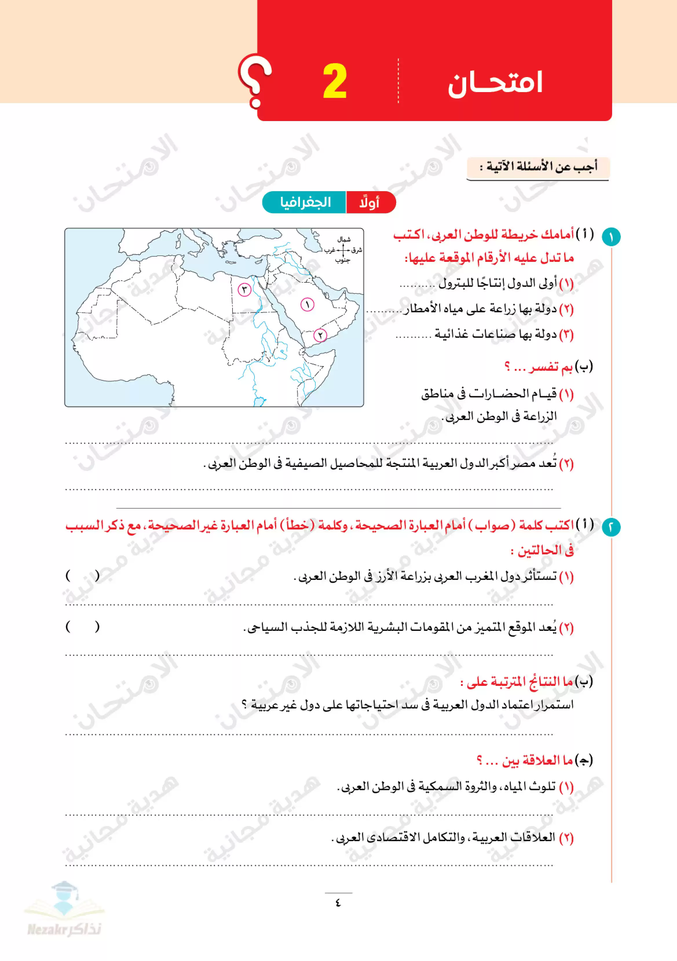صفحة 4 من 29 صفحة من ملف: اختبارات كتاب الامتحان الاسترشادية في الدراسات الاجتماعية للصف الثاني الإعدادي الترم الثاني - Nezakr