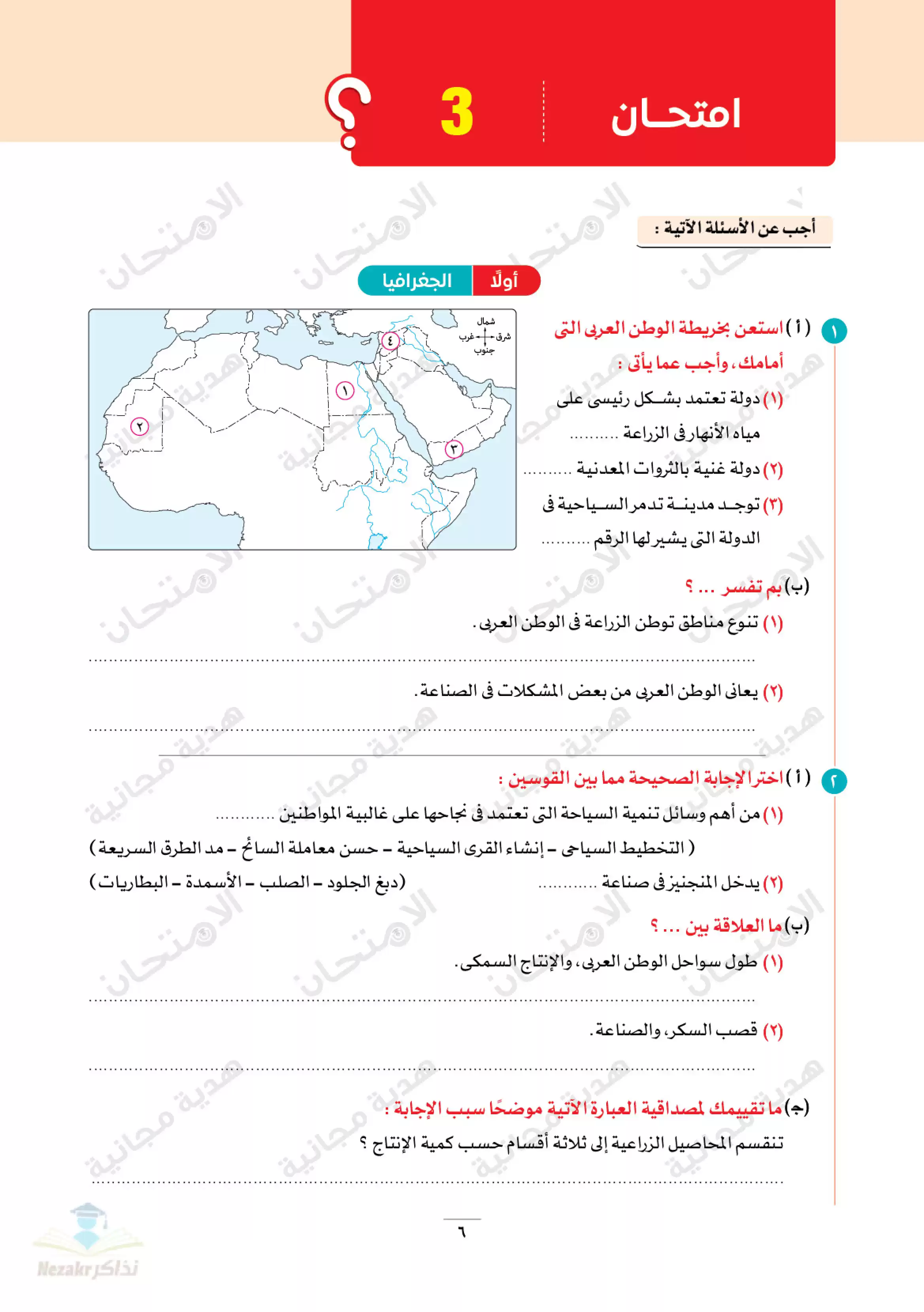 صفحة 6 من 29 صفحة من ملف: اختبارات كتاب الامتحان الاسترشادية في الدراسات الاجتماعية للصف الثاني الإعدادي الترم الثاني - Nezakr