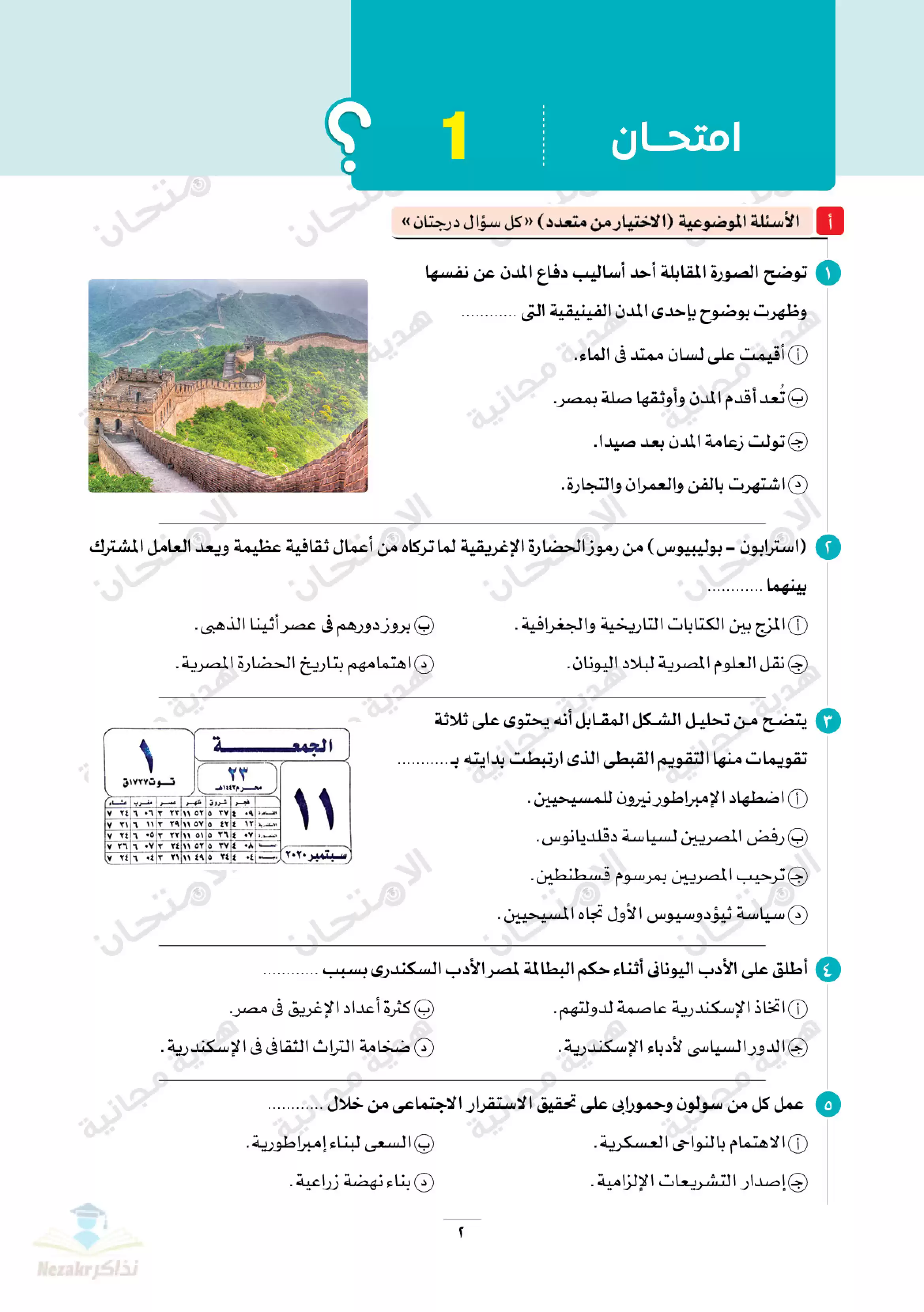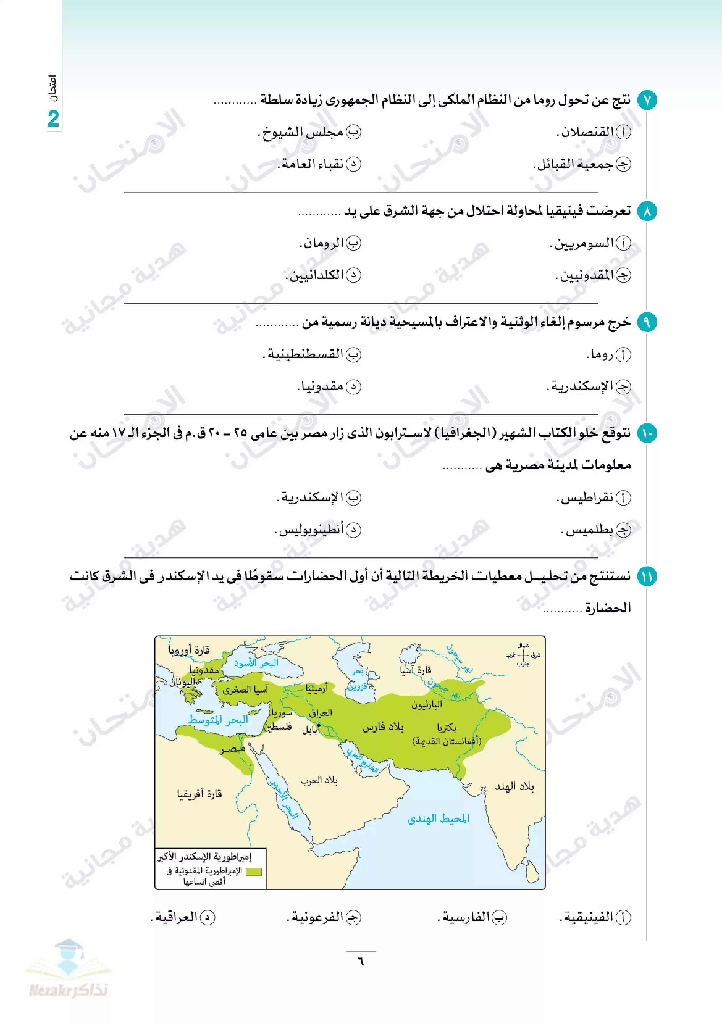 صفحة 2 من 33 صفحة من ملف: اختبارات كتاب الامتحان الاسترشادية في التاريخ للصف الأول الثانوي الترم الثاني - Nezakr