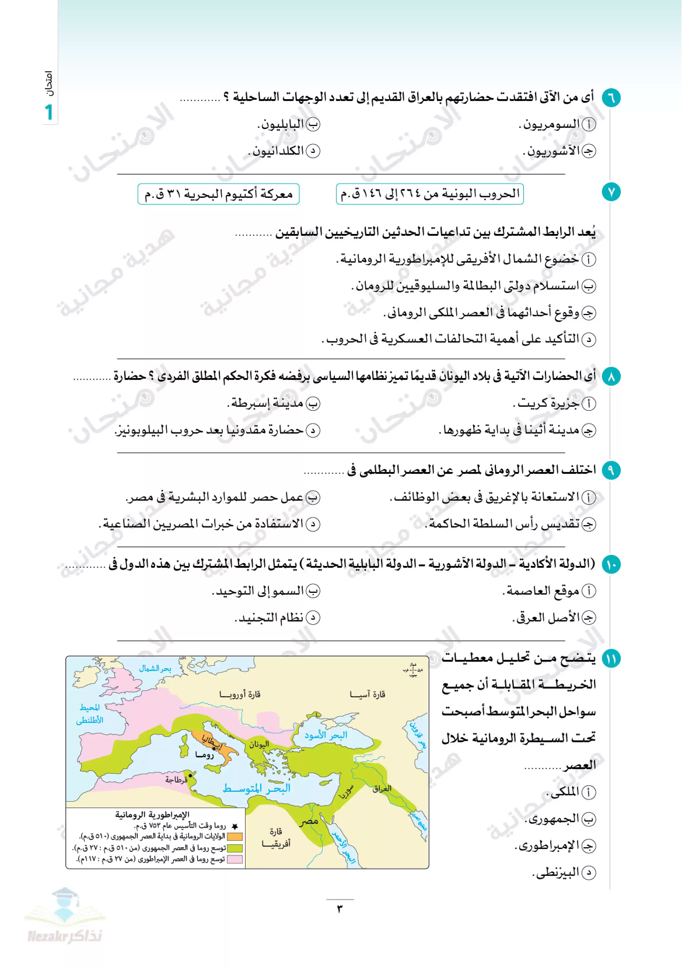 صفحة 3 من 33 صفحة من ملف: اختبارات كتاب الامتحان الاسترشادية في التاريخ للصف الأول الثانوي الترم الثاني - Nezakr