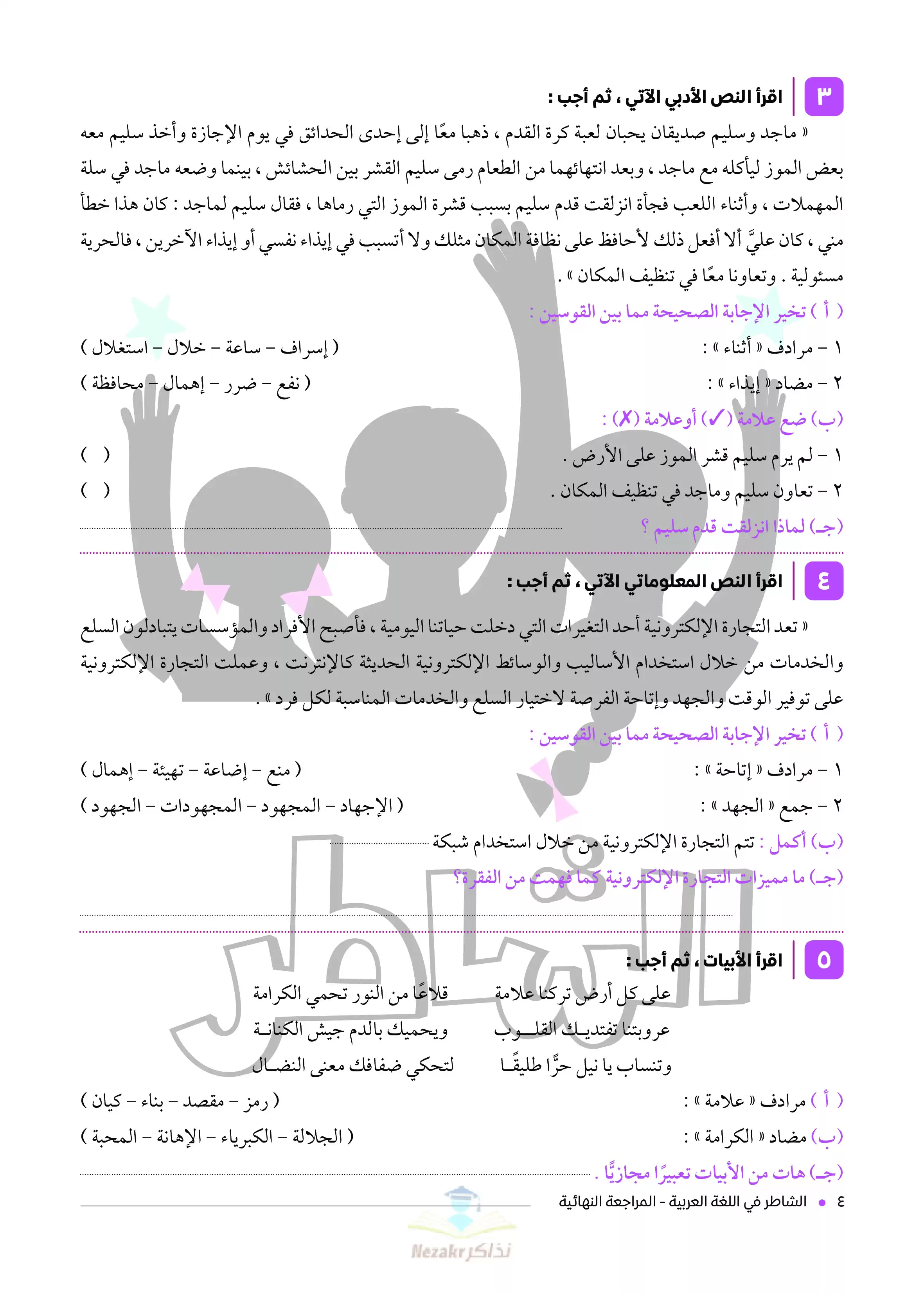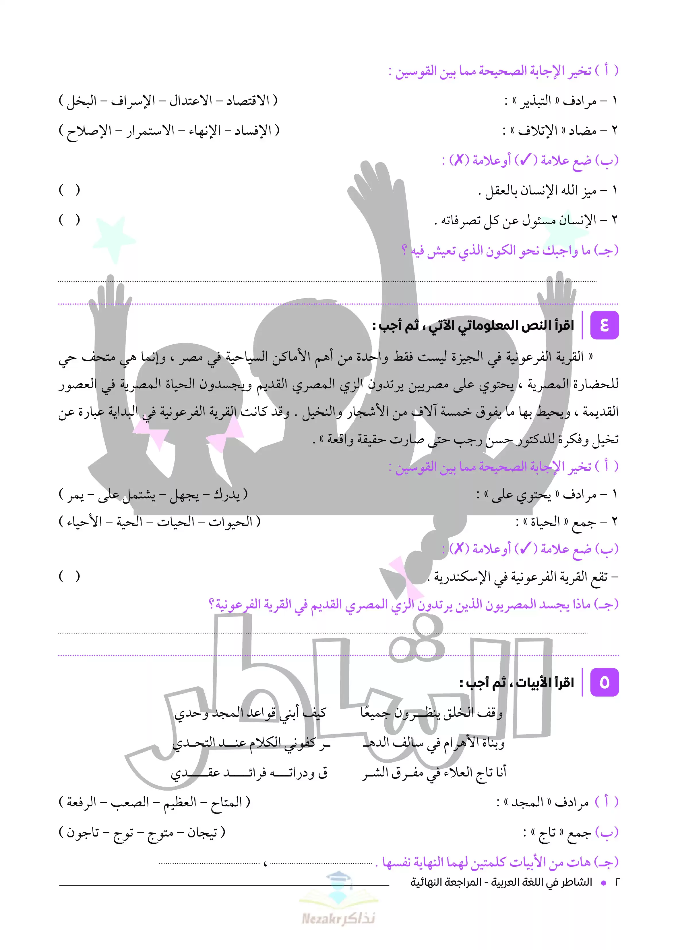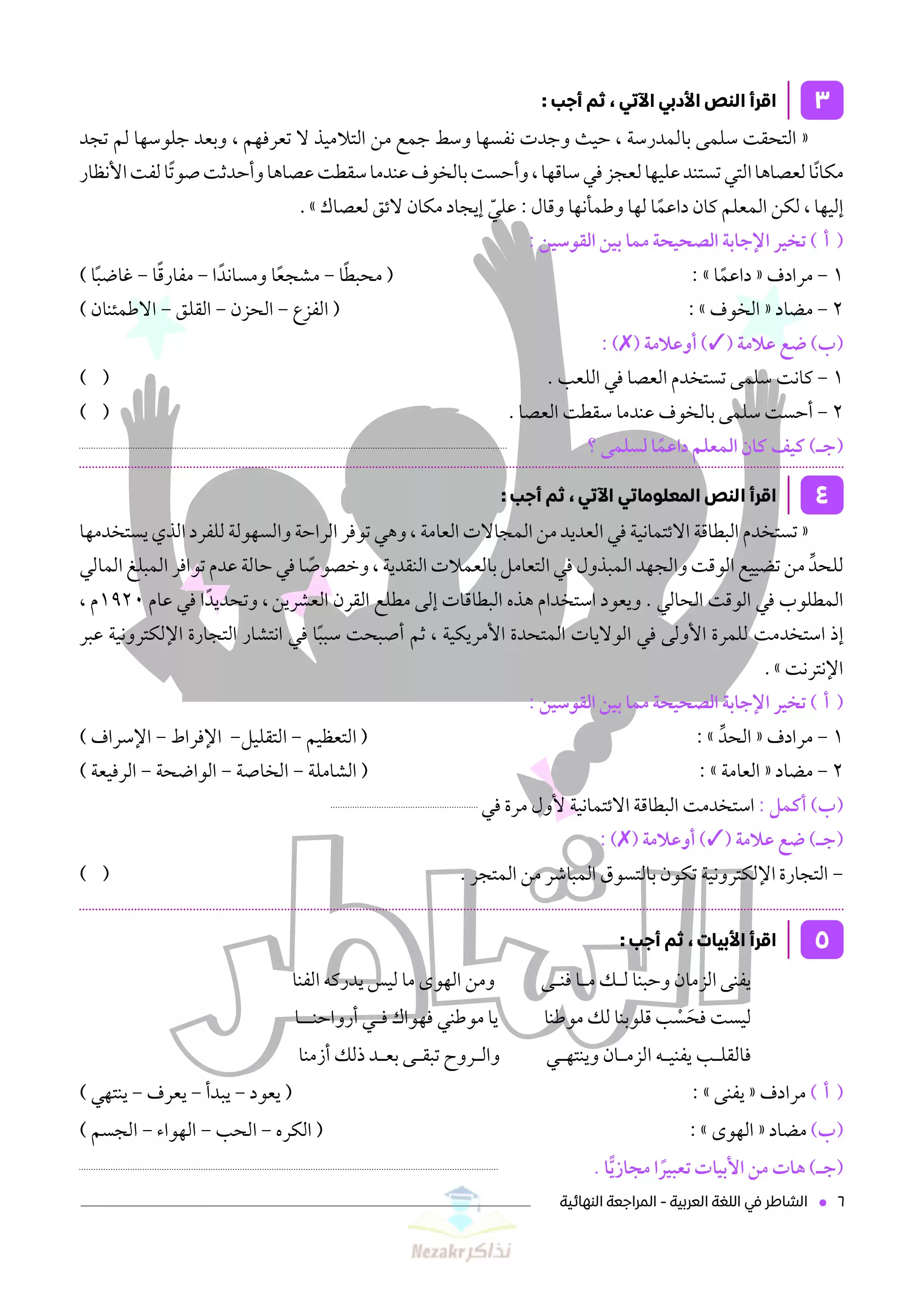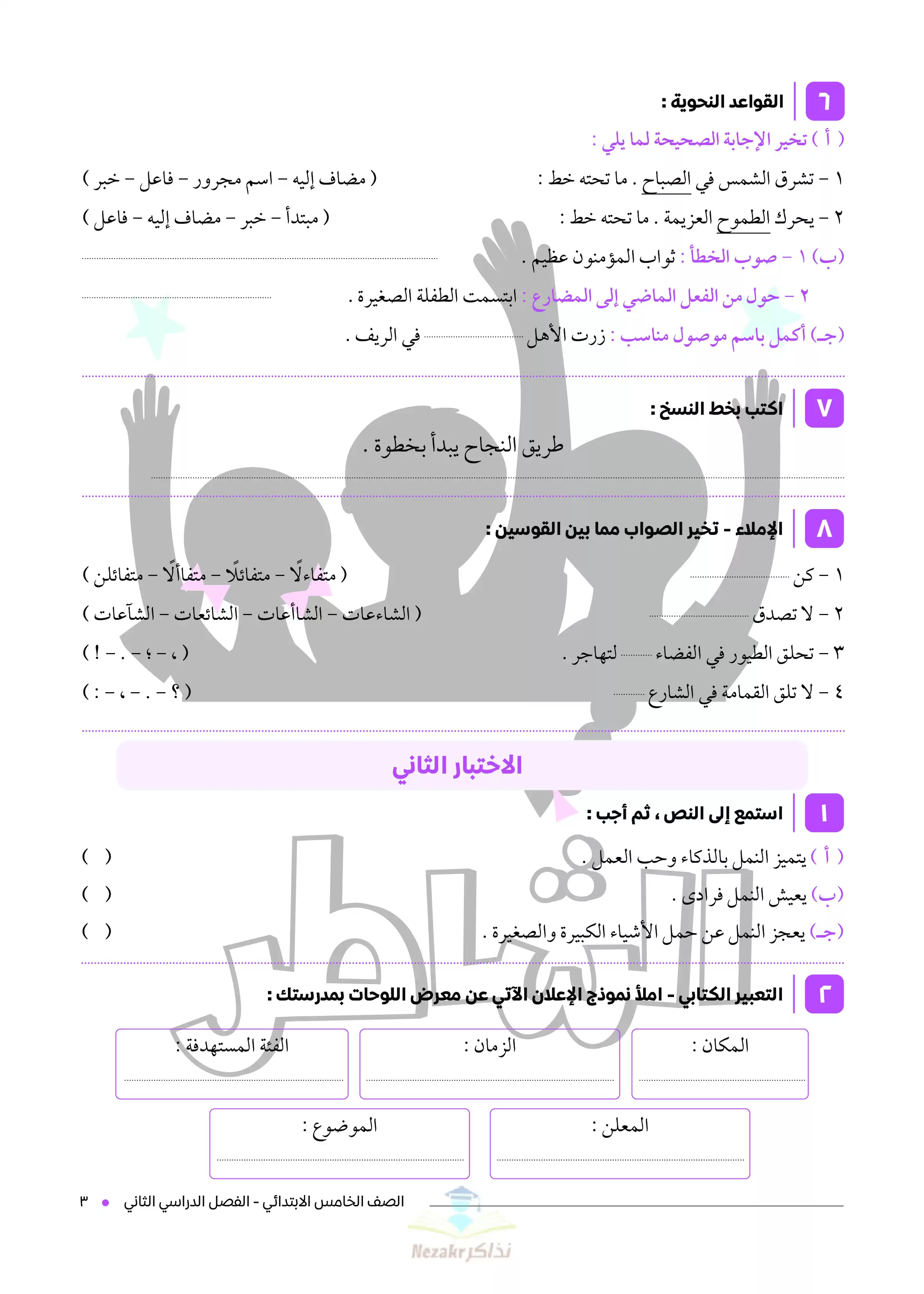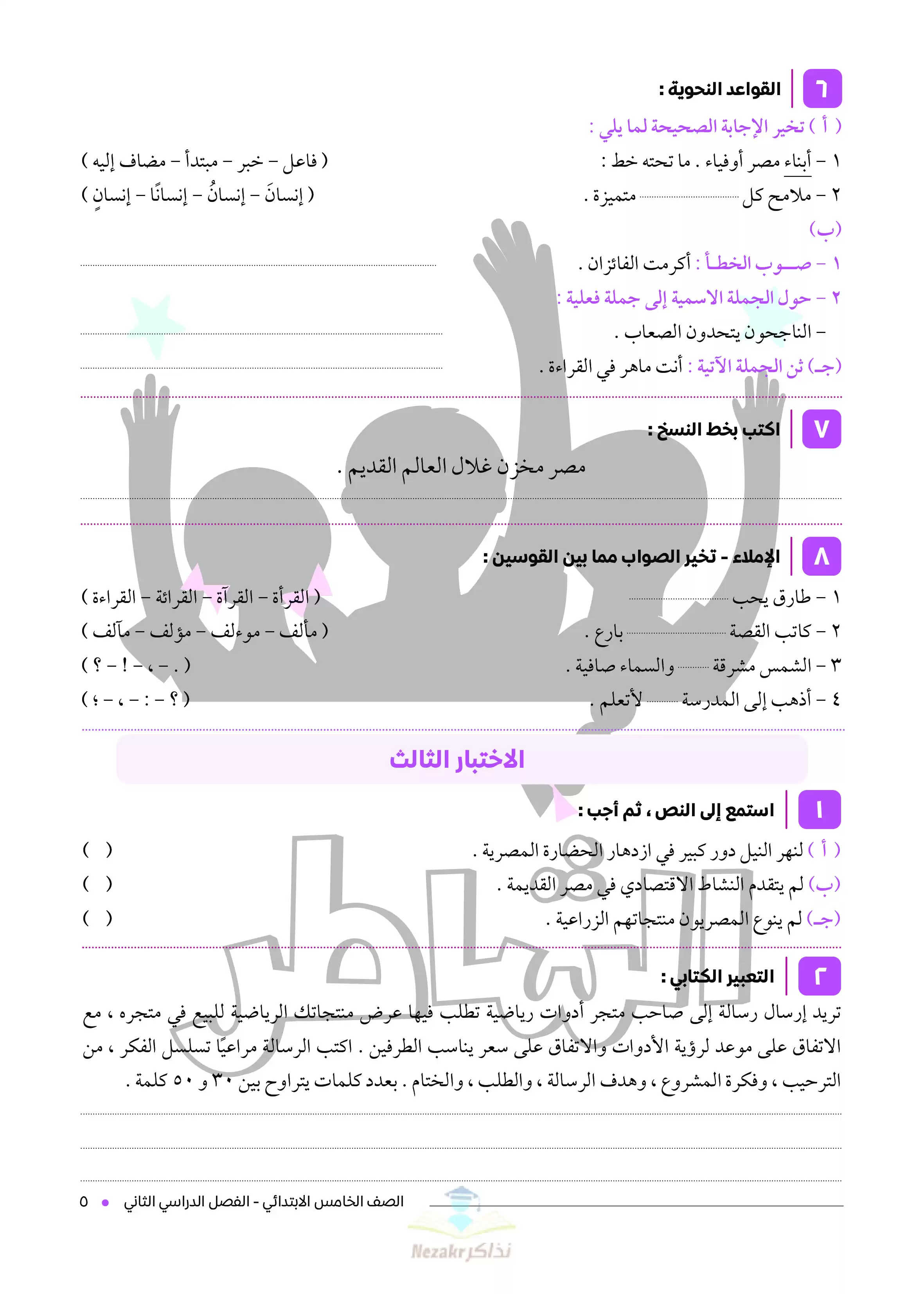 | بيانات الملف: (نماذج اختبارات الشاطر في مادة اللغة العربية للصف الخامس الابتدائي - Nezakr) | |
