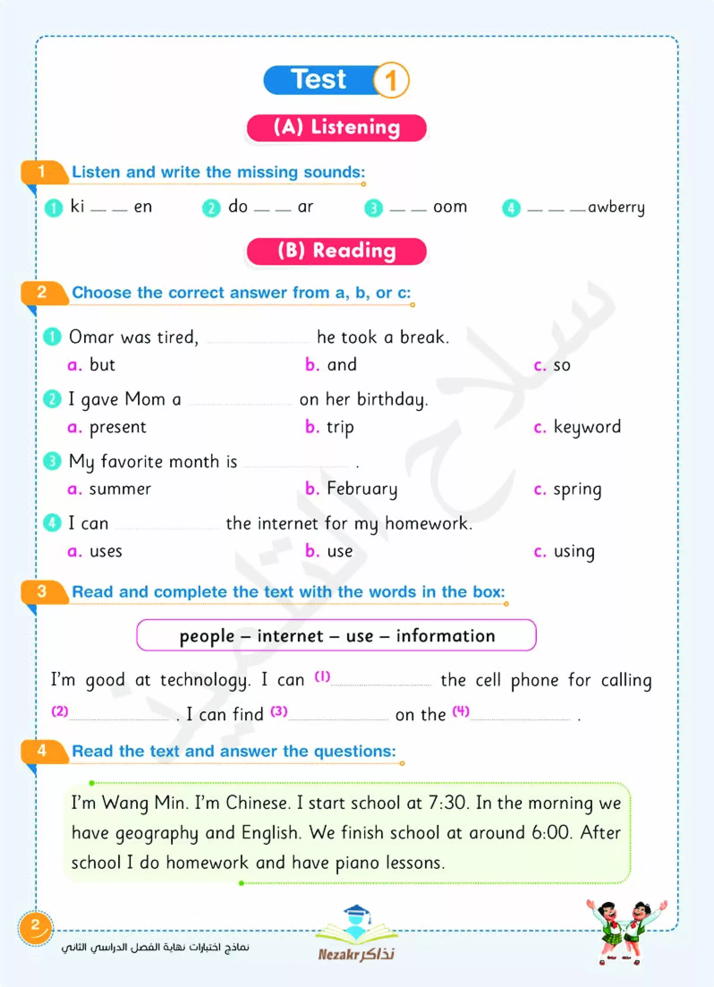 سكرين شوت من الملف: نماذج اختبارات سلاح التلميذ في الانجليزي Connect 3 للصف الثالث الابتدائي الفصل الدراسي الثاني - Nezakr