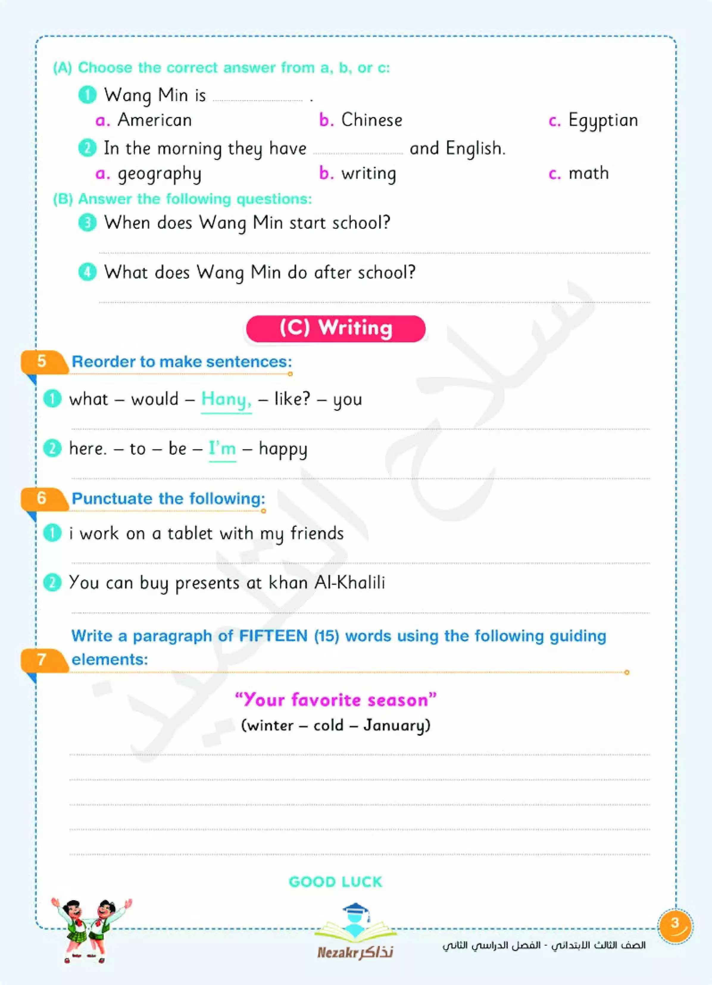 صفحة 3 من 22 صفحة من ملف: نماذج اختبارات سلاح التلميذ في الانجليزي Connect 3 للصف الثالث الابتدائي الفصل الدراسي الثاني - Nezakr