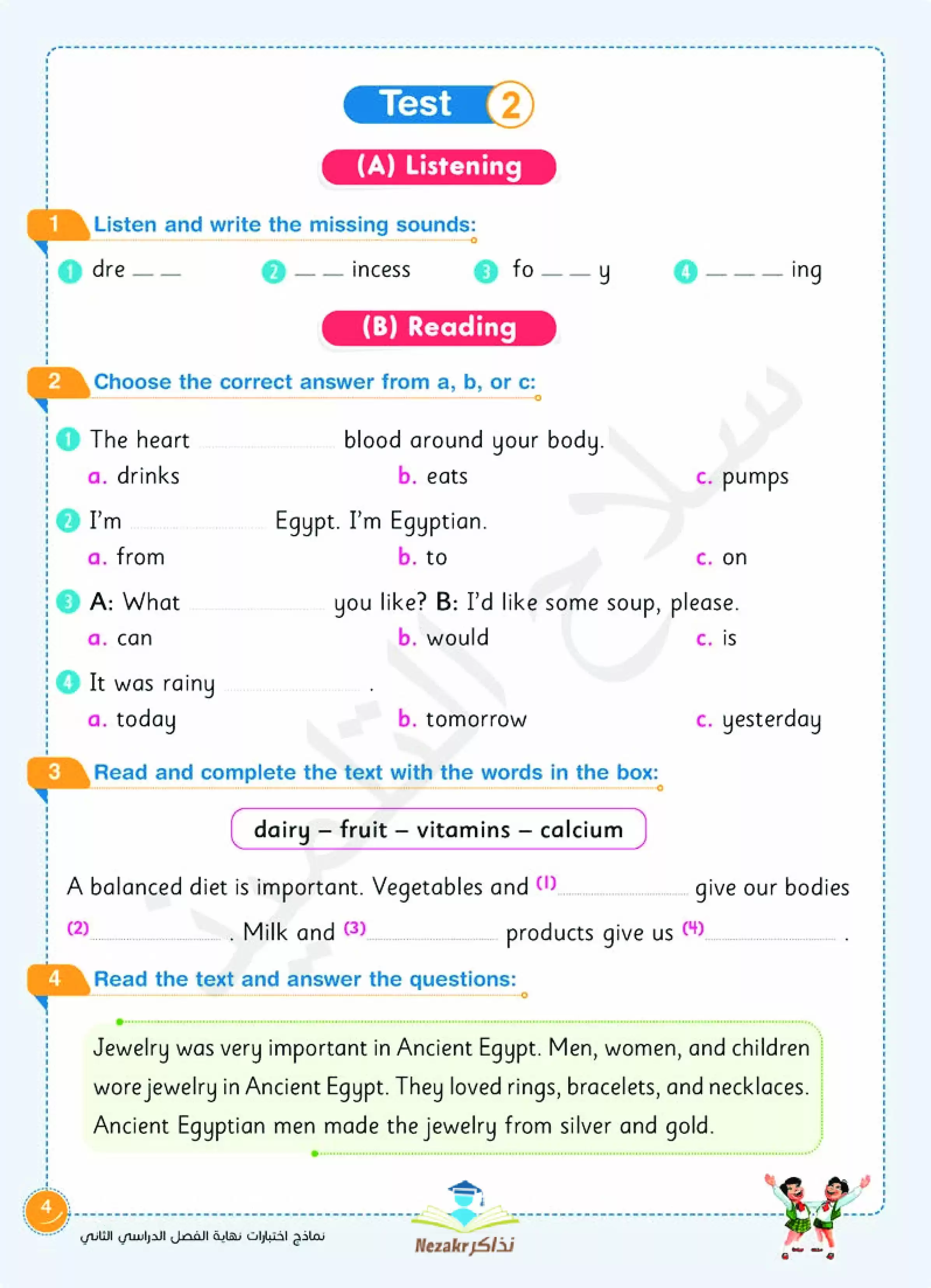 صفحة 4 من 22 صفحة من ملف: نماذج اختبارات سلاح التلميذ في الانجليزي Connect 3 للصف الثالث الابتدائي الفصل الدراسي الثاني - Nezakr