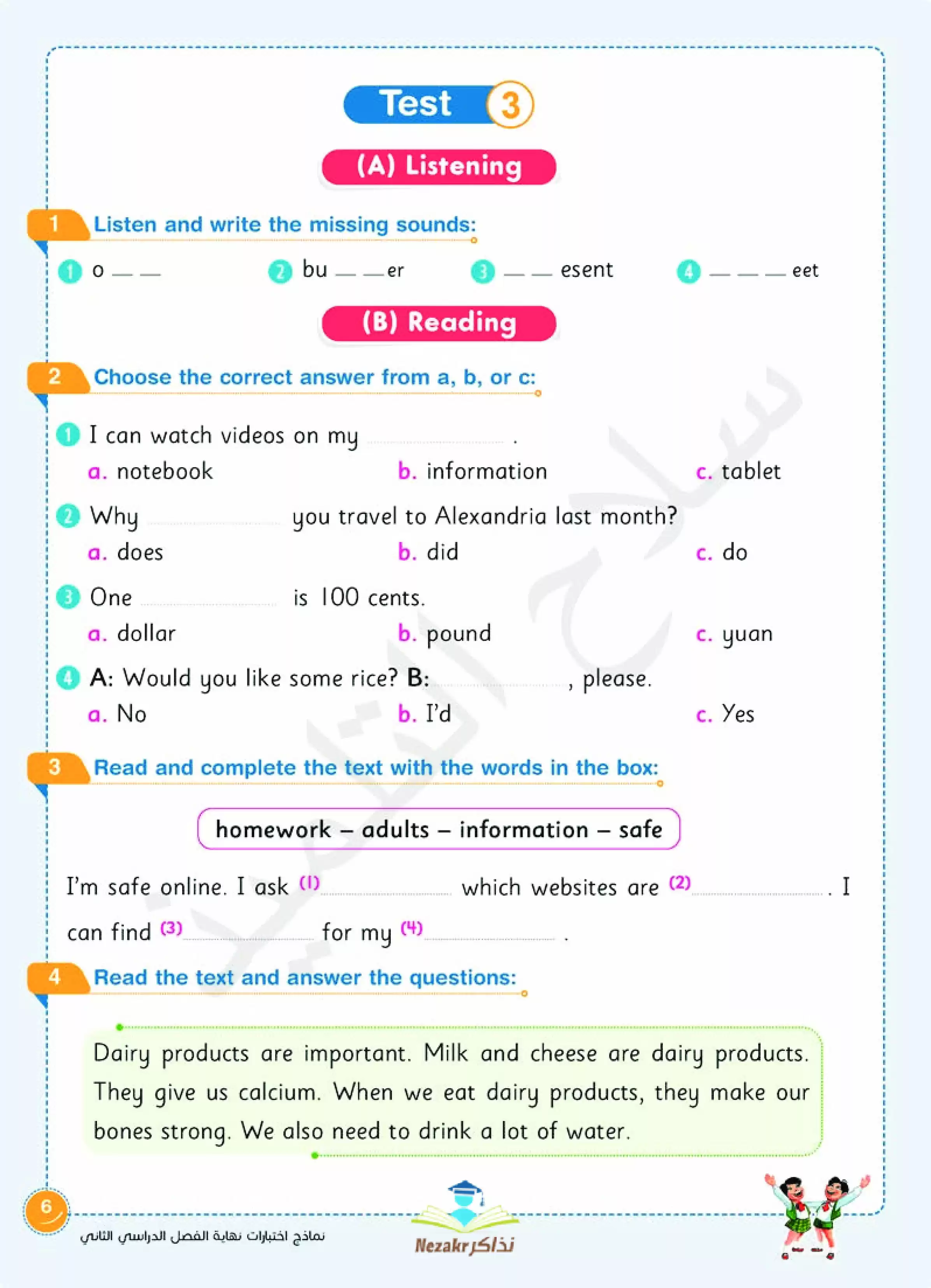 صفحة 6 من 22 صفحة من ملف: نماذج اختبارات سلاح التلميذ في الانجليزي Connect 3 للصف الثالث الابتدائي الفصل الدراسي الثاني - Nezakr