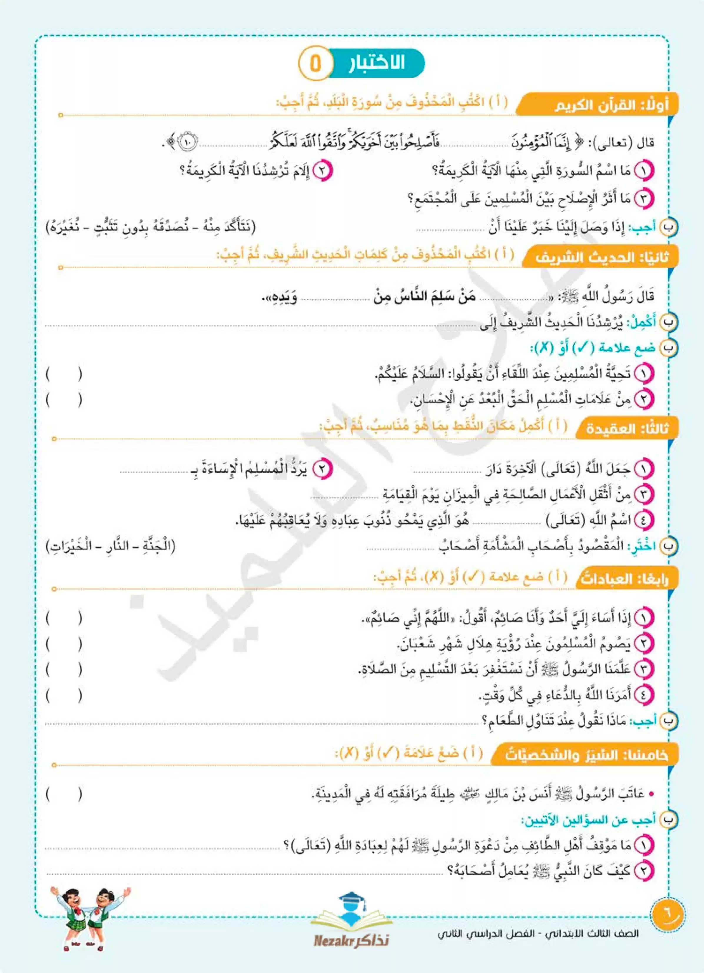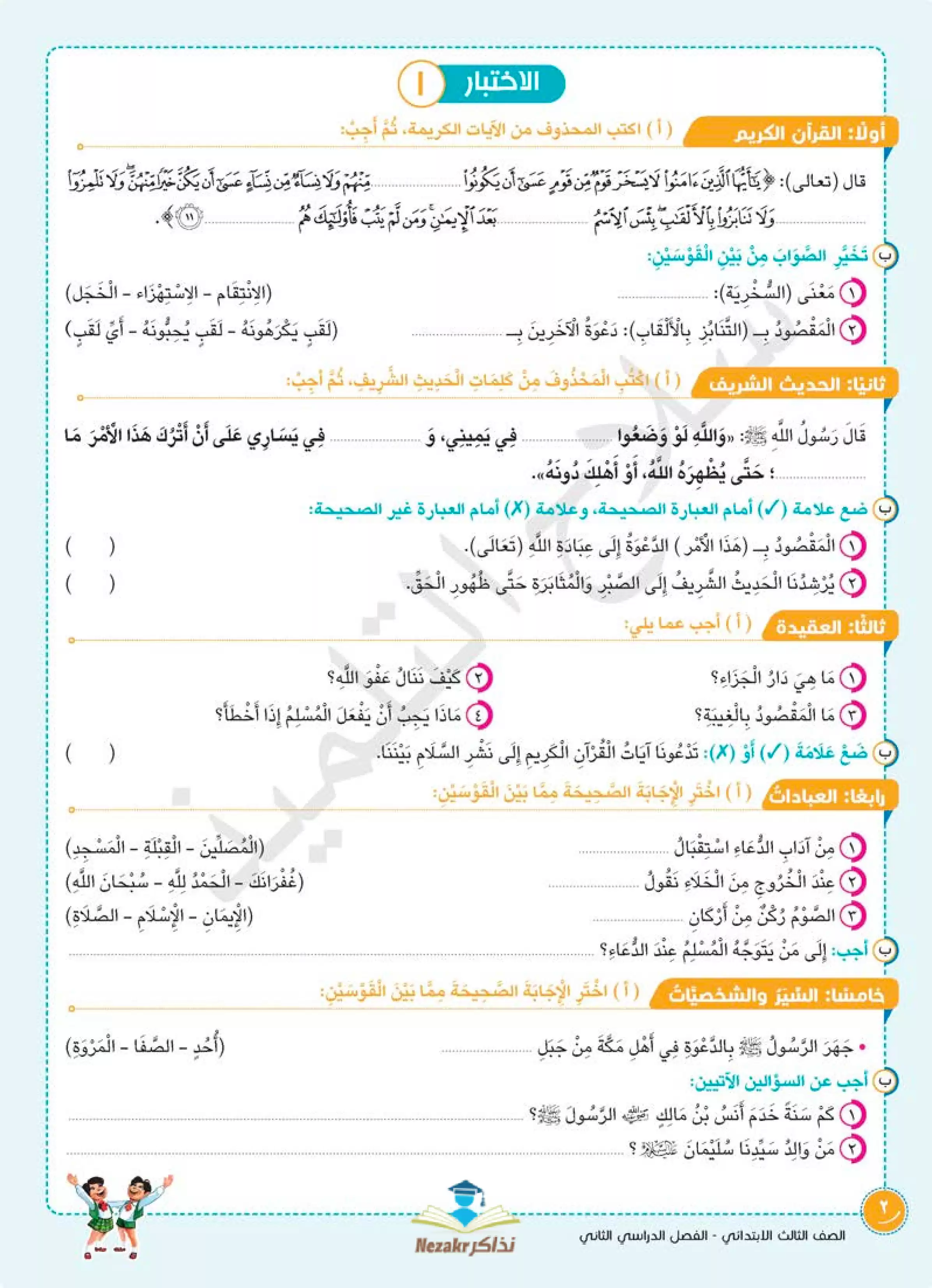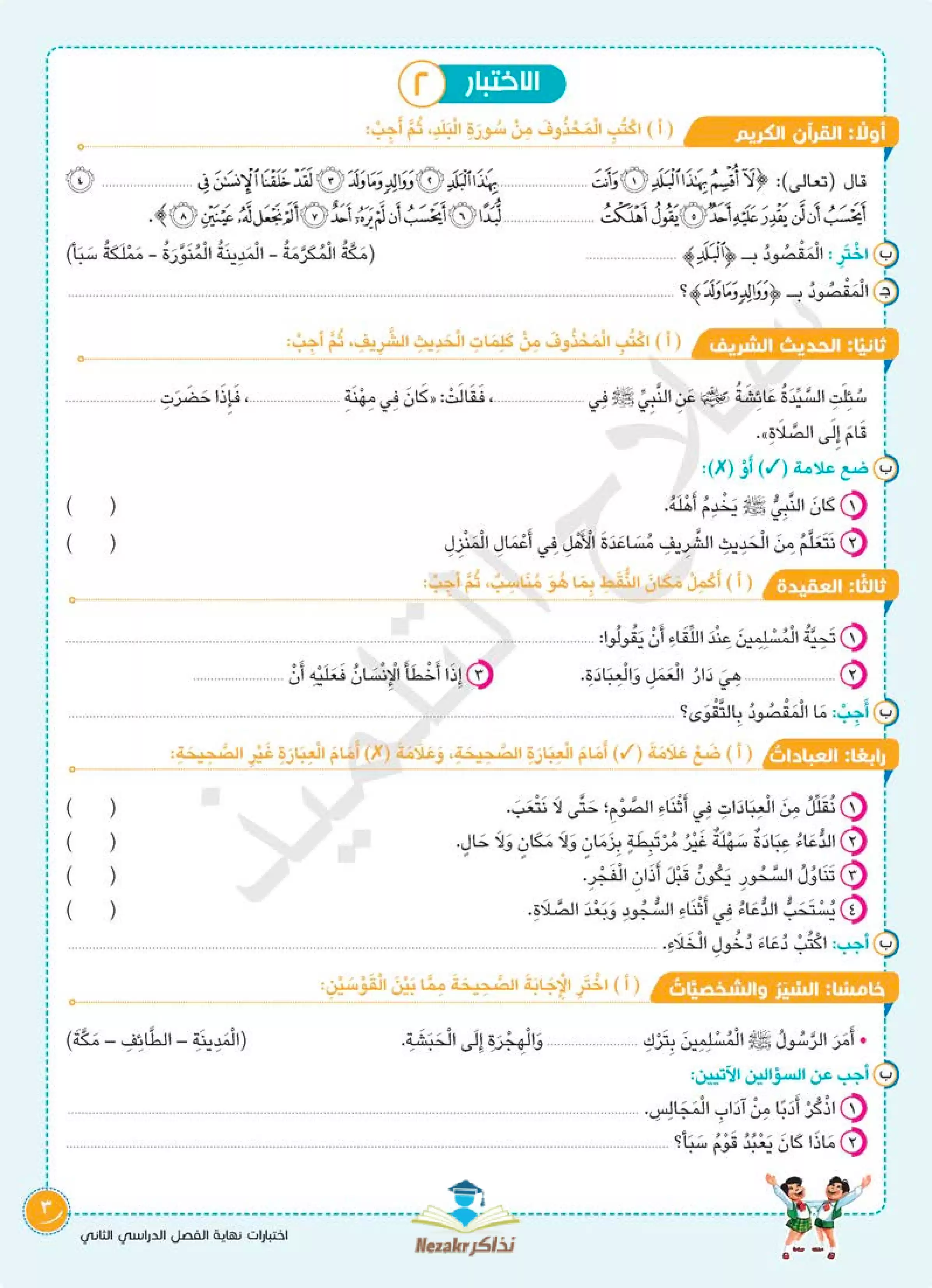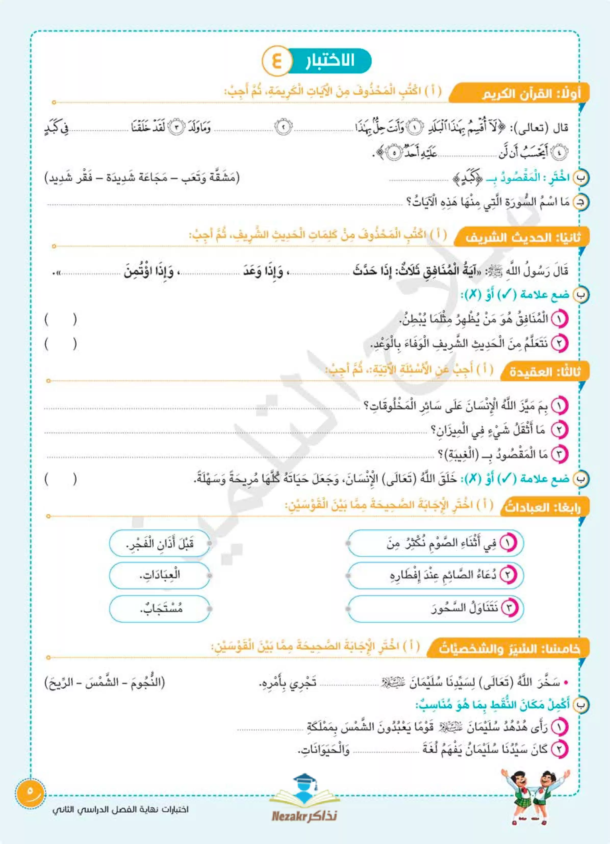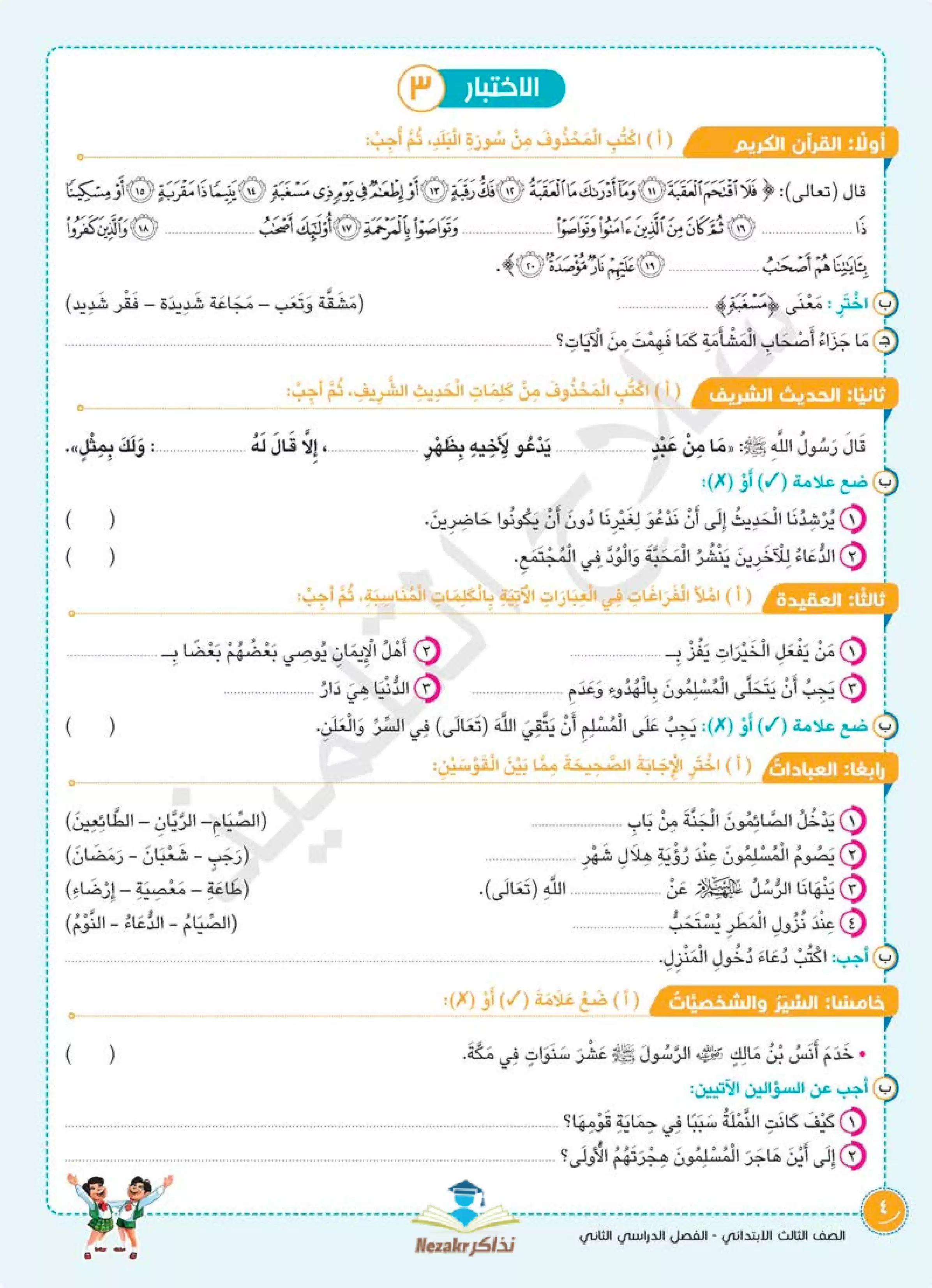 مراجعة سلاح التلميذ في التربية الدينية الإسلامية للصف الثالث الابتدائي الترم الثاني، تقدم تدريبًا عمليًا مميزًا من خلال 5 نماذج اختبار استرشادية شاملة.